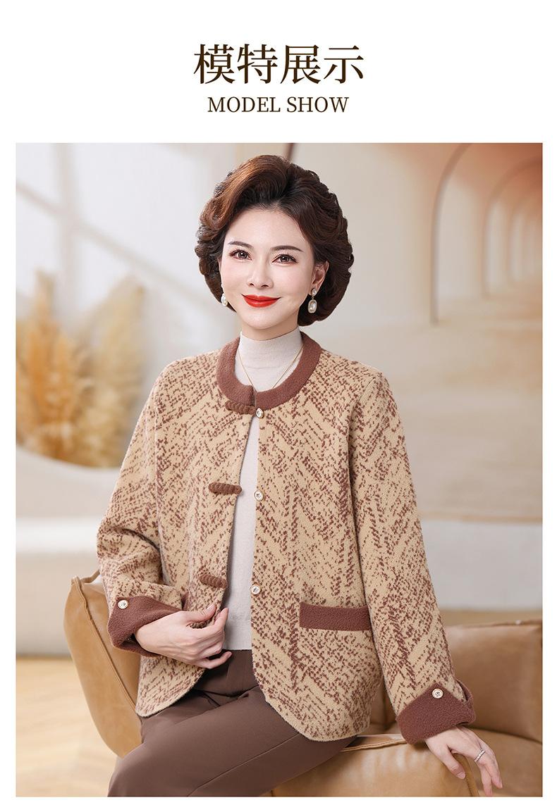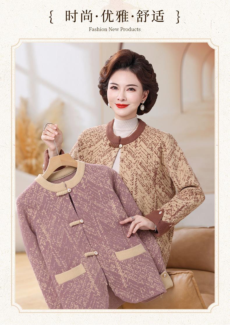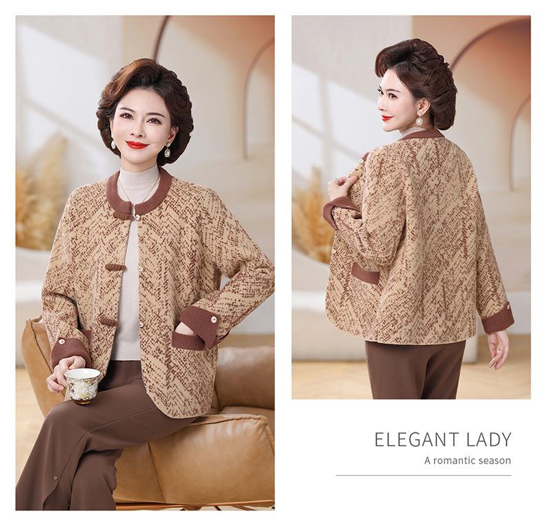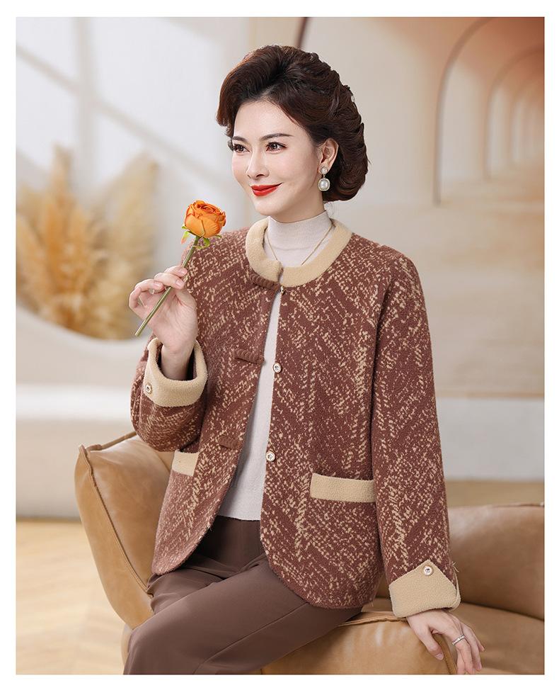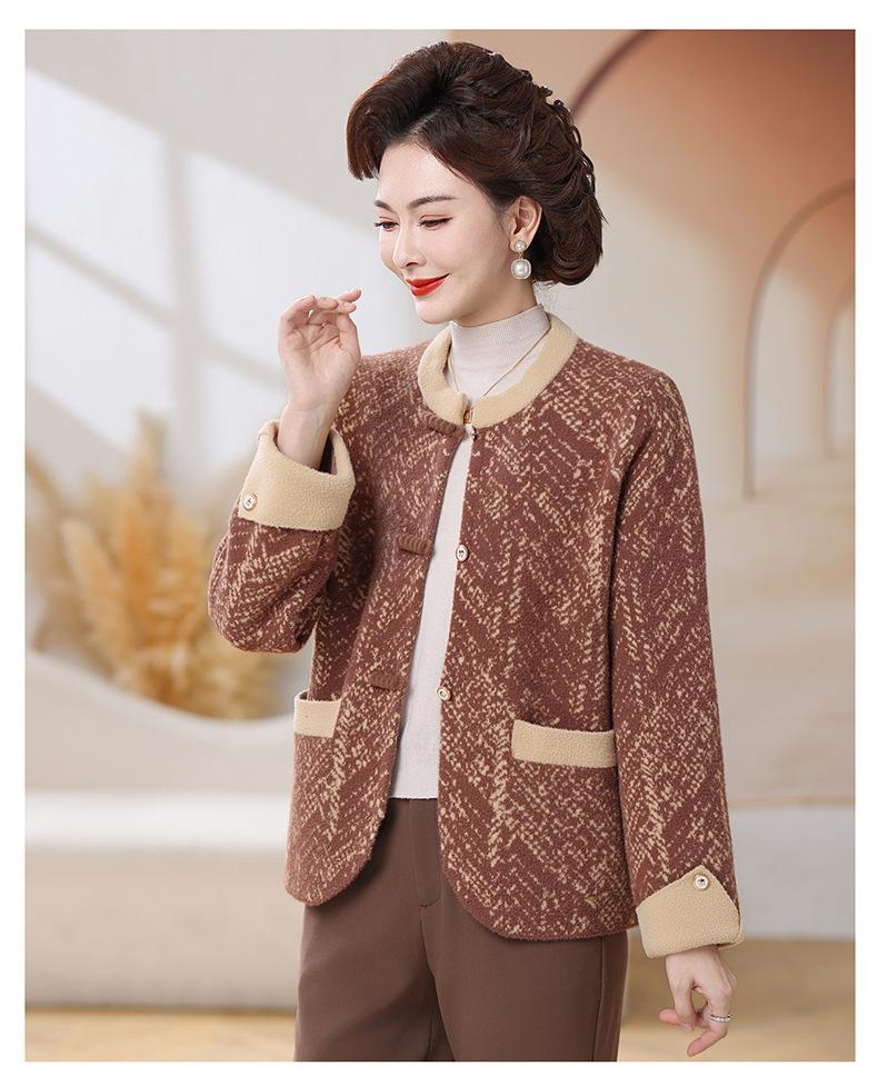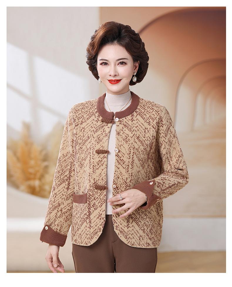 Cárdigan de Punto Estilo Nacional Otoño e Invierno para Mamá, Moderno 2025 Nuevo Cárdigan de Lana de Otoño para Mediana Edad, Abrigo Versátil