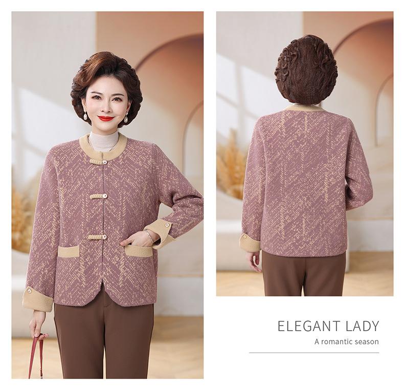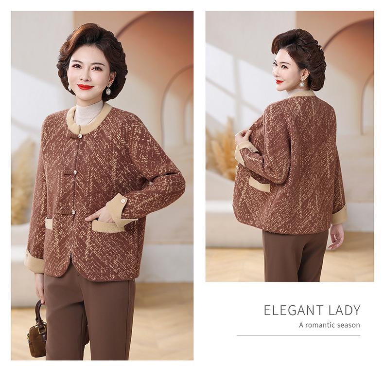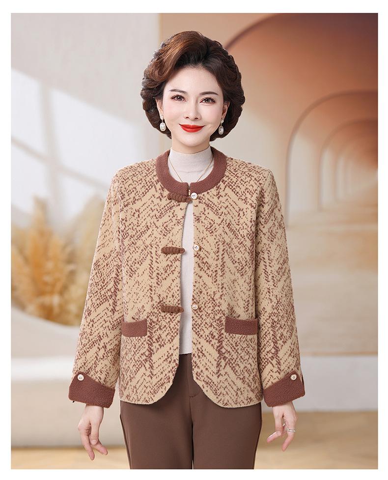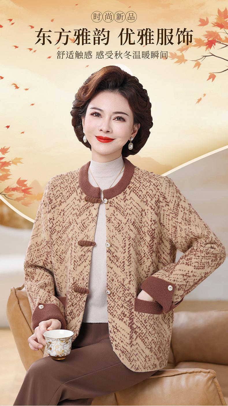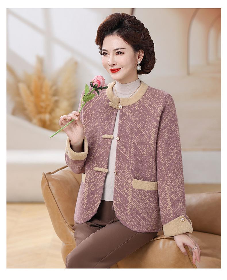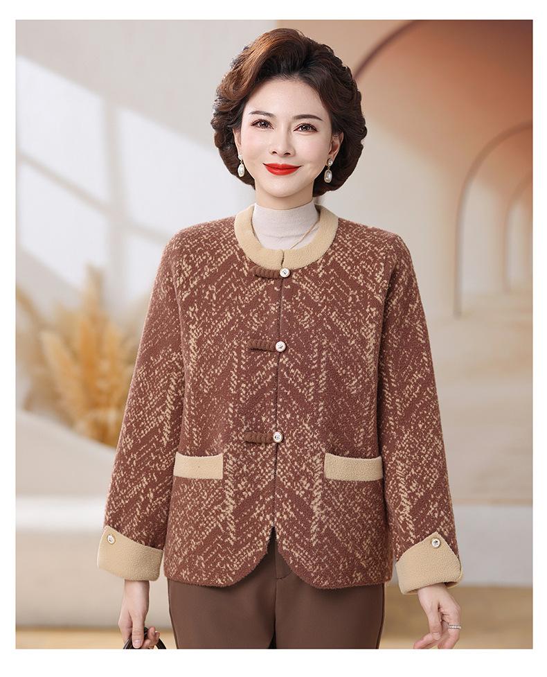 Cárdigan de Punto Estilo Nacional Otoño e Invierno para Mamá, Moderno 2025 Nuevo Cárdigan de Lana de Otoño para Mediana Edad, Abrigo Versátil