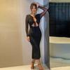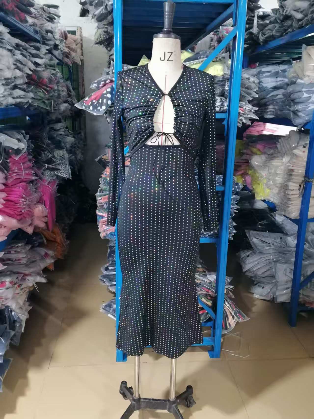 Nuevo vestido ajustado de lentejuelas coloridas estilo europeo y americano Primavera y verano sexy ahuecado con vendaje revelador de cintura vestido de noche para mujer