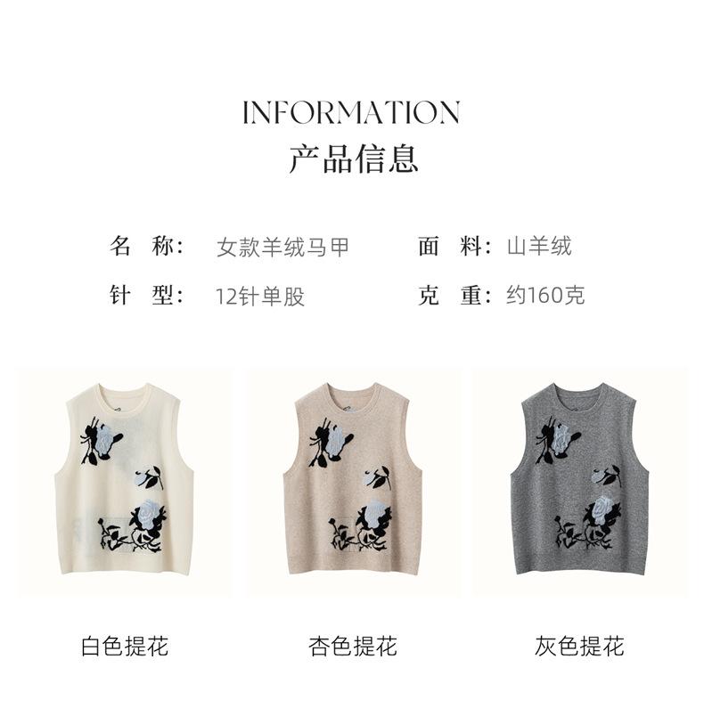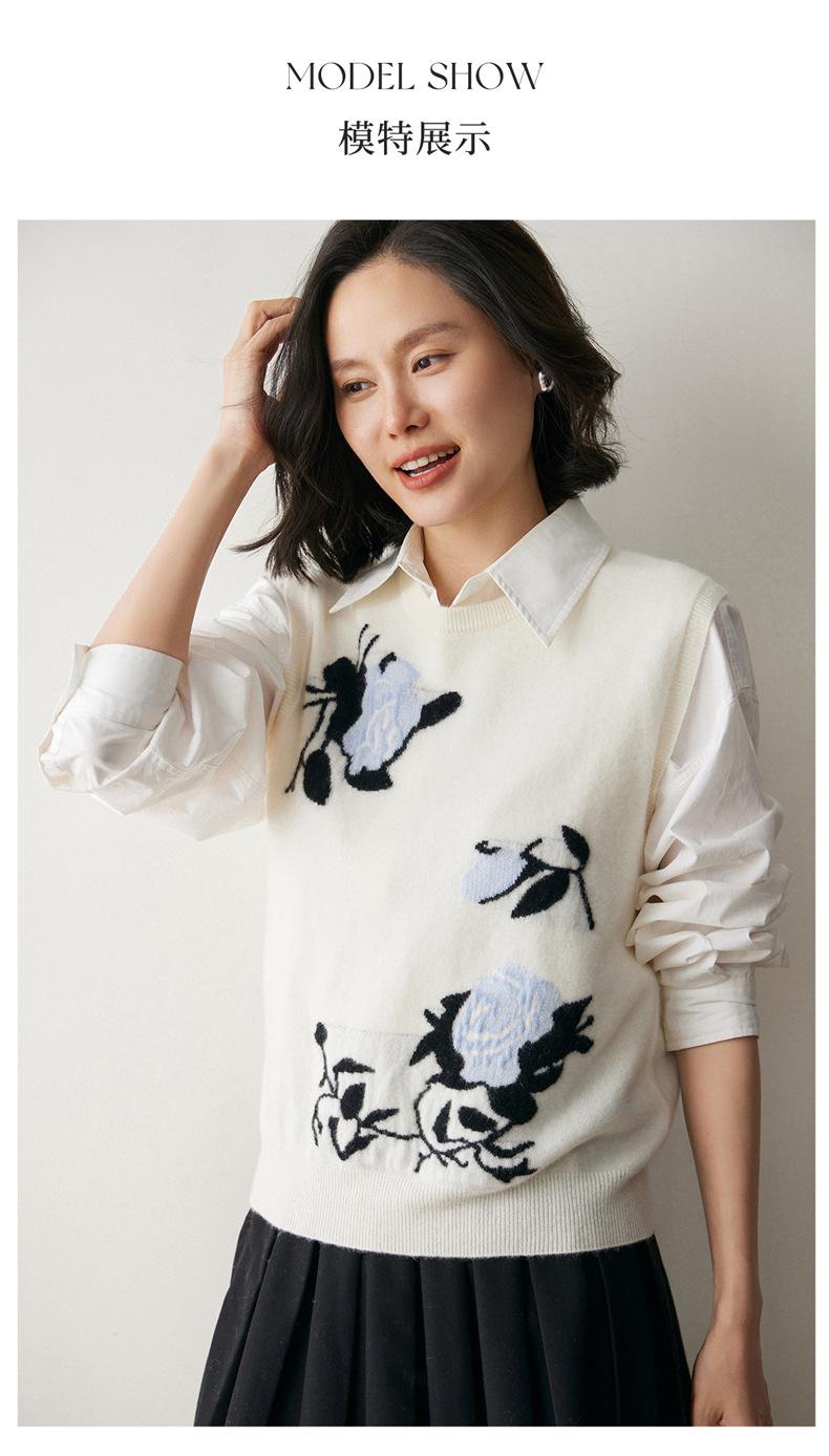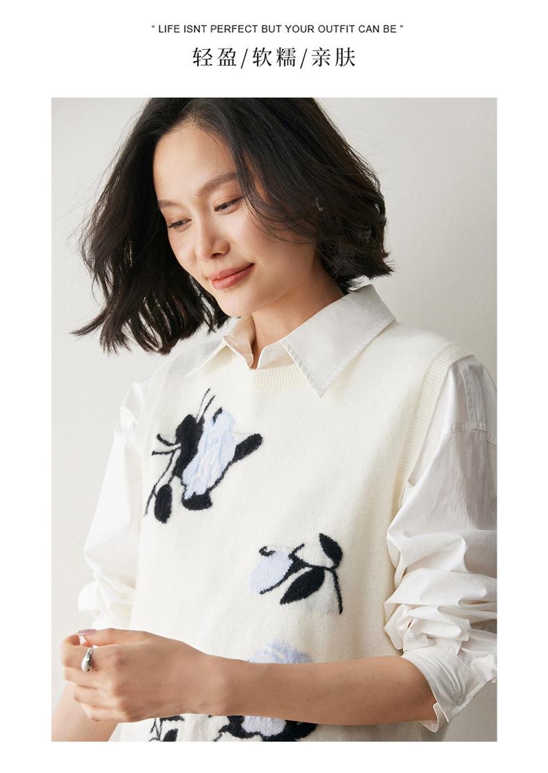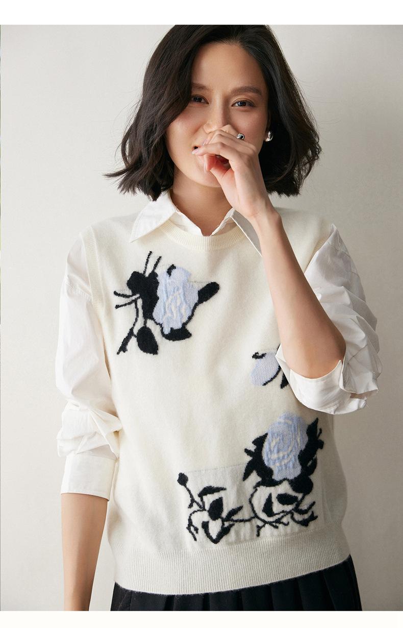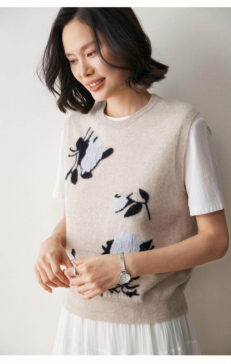Chaleco de punto de cuello redondo jacquard celadón de camelia para mujer, nuevo, de cachemira, temperamento, adelgazante, versátil, sin mangas