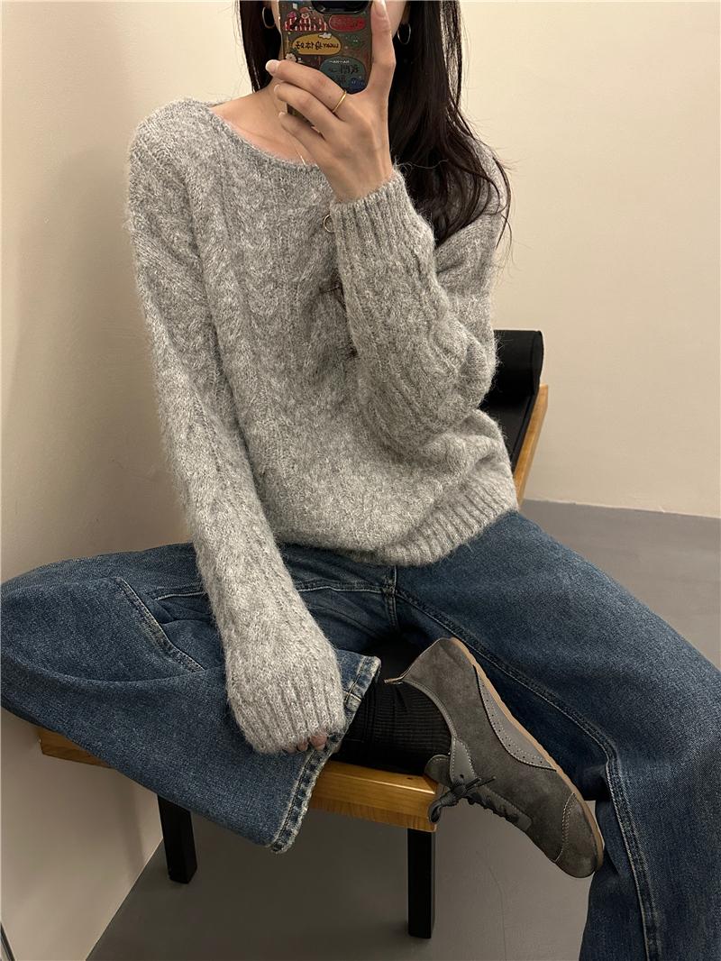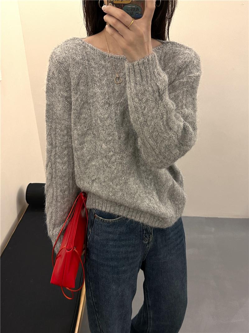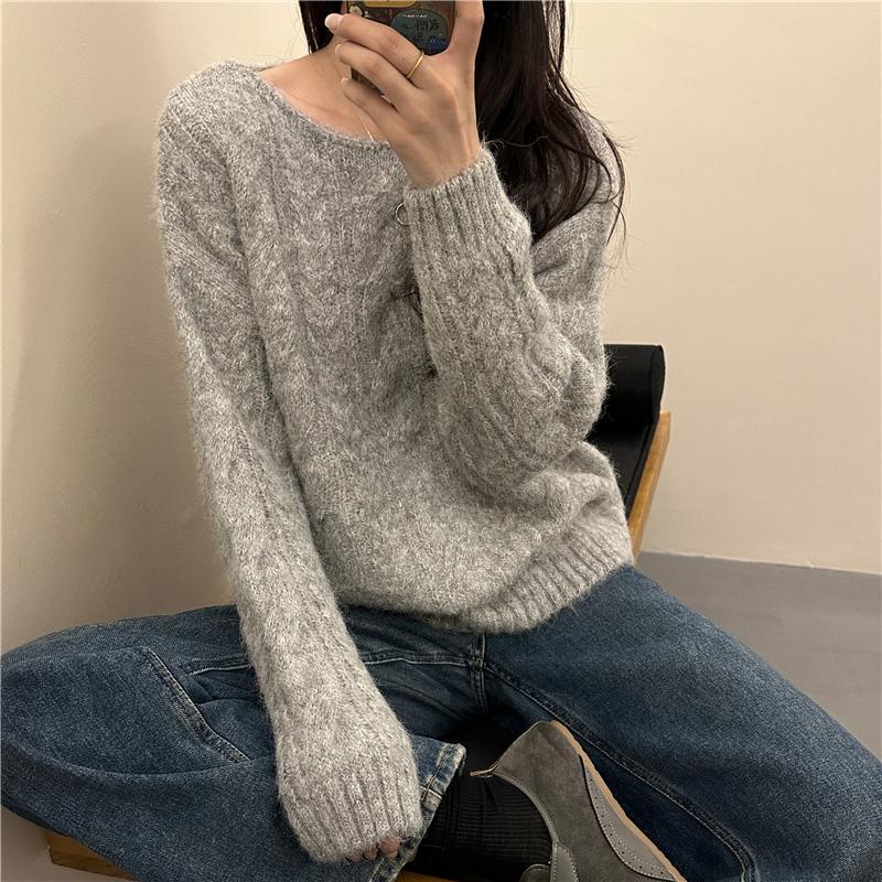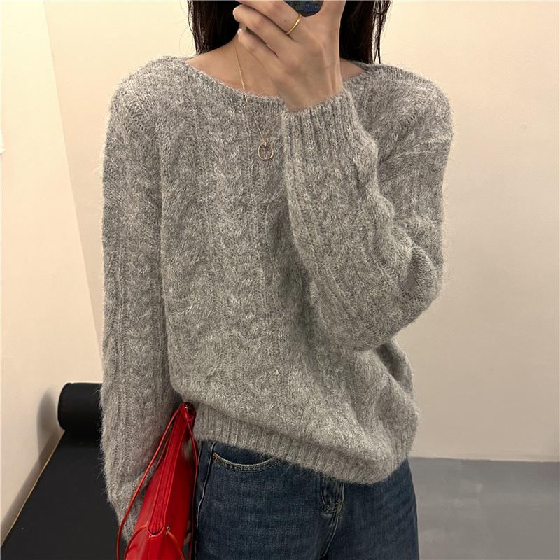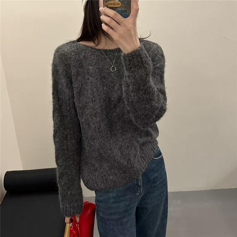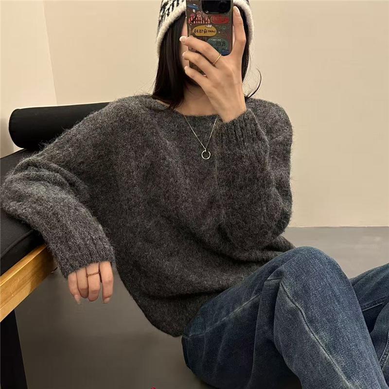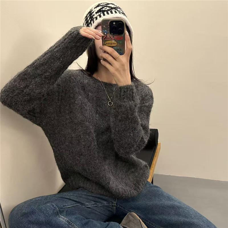 Nuevo Otoño/Invierno Suéter de Color Sólido Ropa Exterior Estilo Lazy Capa Base para Mujer Manga Larga Holgada Estilo Coreano Top de Punto Grueso