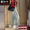 Sudeste Asiático comercio transfronterizo venta al por mayor para mujer jeans rectos de cintura alta para mujer piernas anchas temblando libro rojo pequeño una generación de cabello