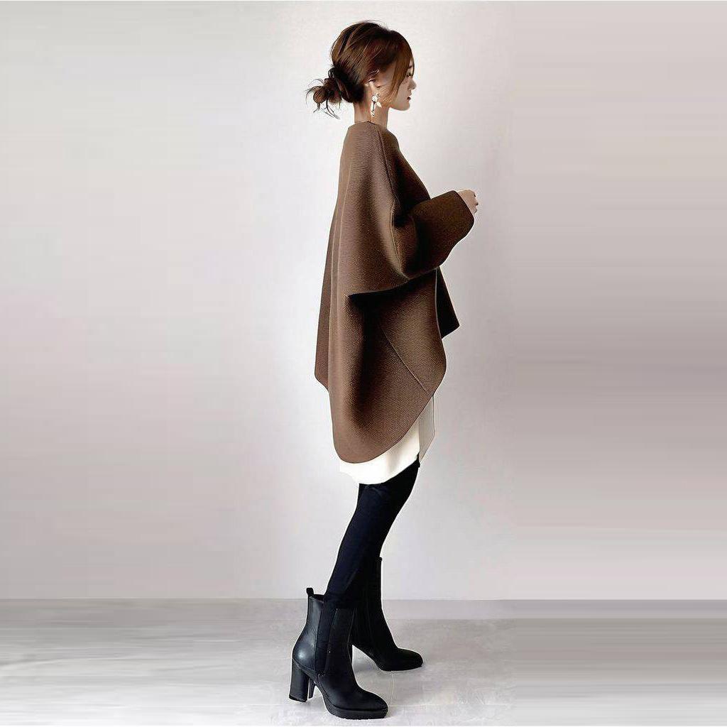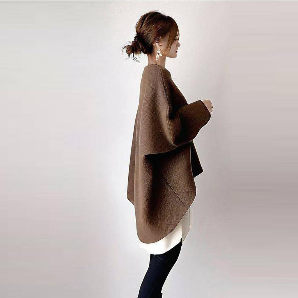 Punto Estilo Japonés 2024 Otoño Nuevo Redondo Cuello Redondo Manga Larga Top Murciélago Simple Casual Versátil Versión Holgada
