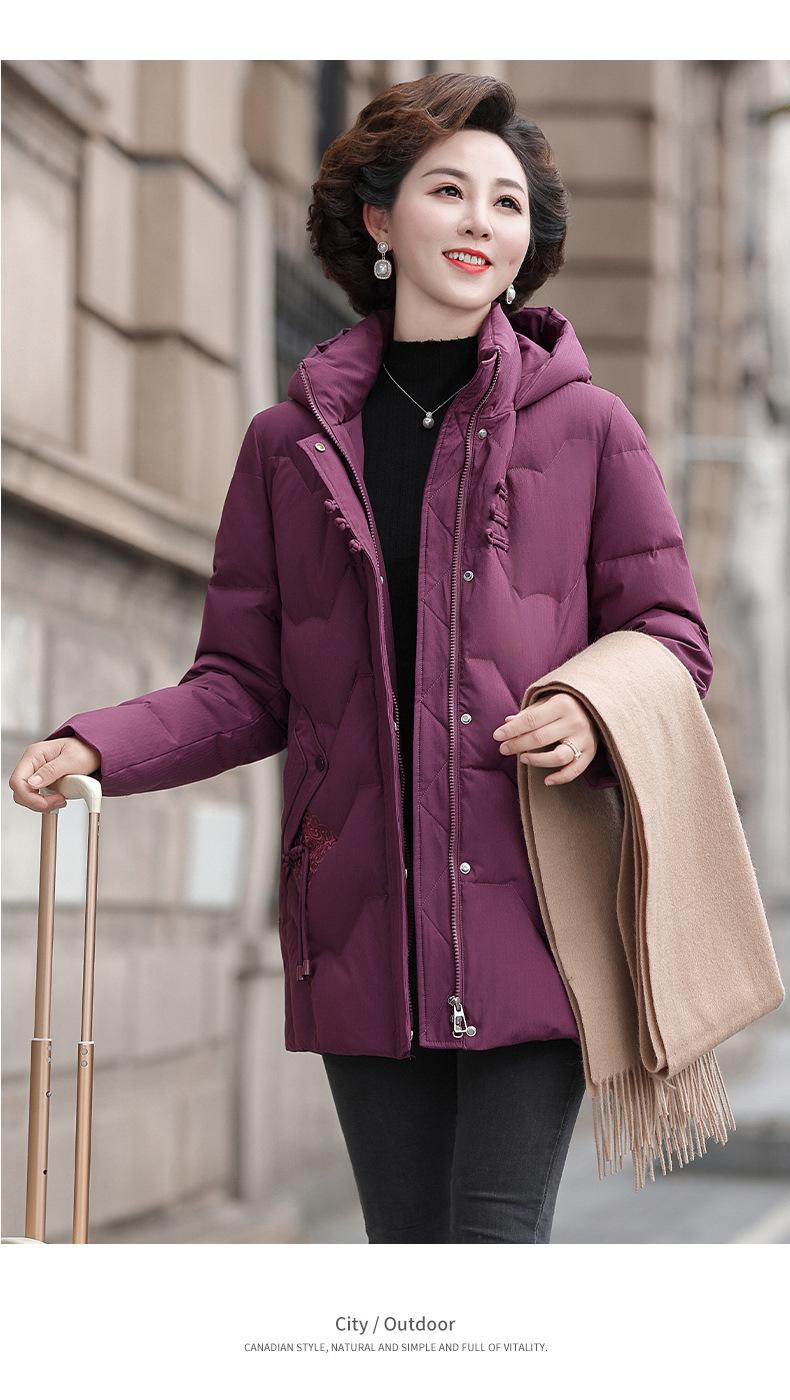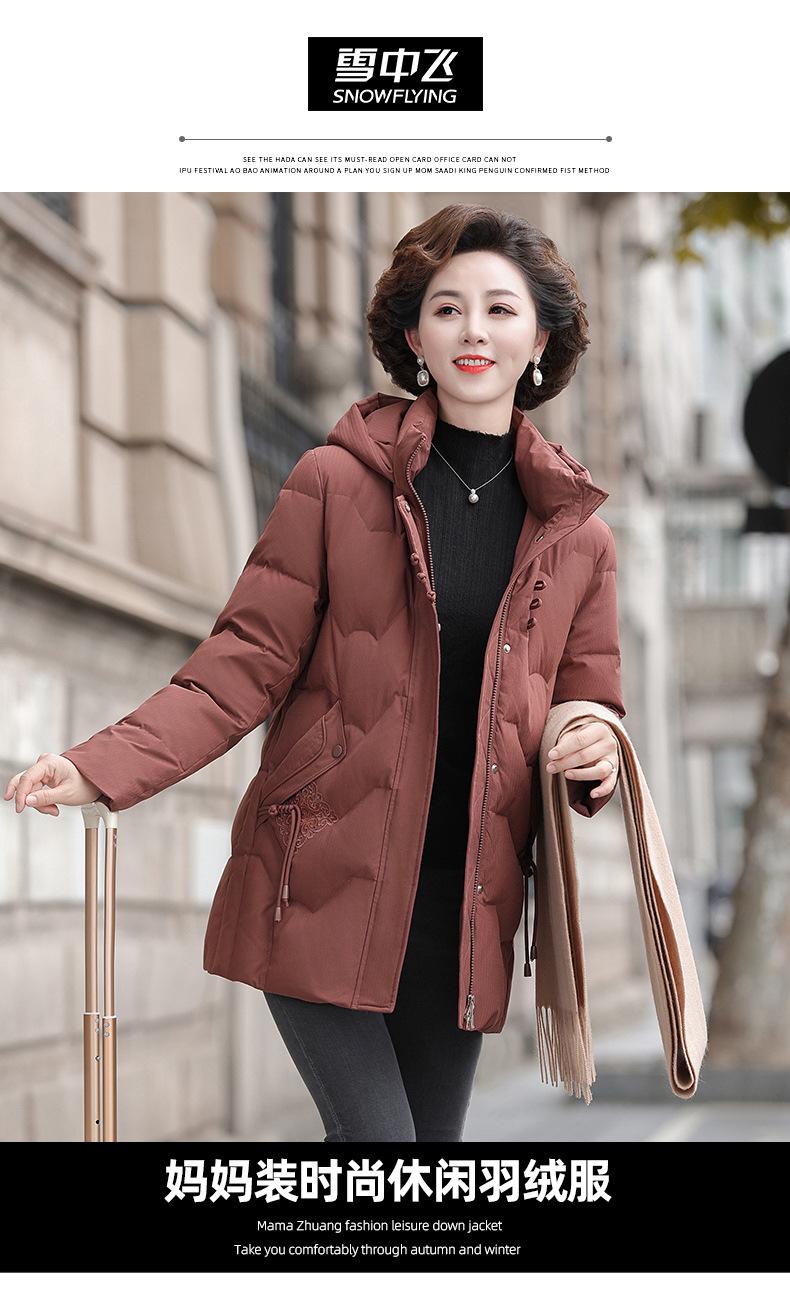 Chaqueta de Plumón de Pato Blanco Snow Flying Invierno Madre Chaqueta Estilo Occidental 2024 Nuevo Corte Slim a Prueba de Frío Ropa para Mujeres de Mediana Edad y Adultas Mayores