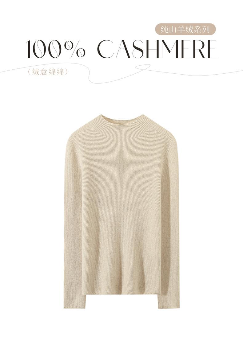 Suéter de Punto de Cachemira 100% Pura de Cuello Medio Alto Otoño/Invierno 2025 para Mujer, Suave y Cerosa, Suéter Base, Temperamento, Adelgazante, Top
