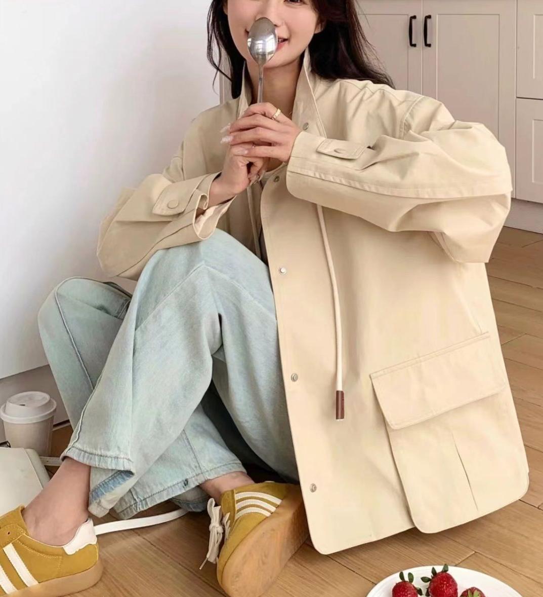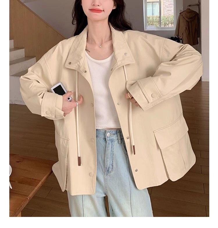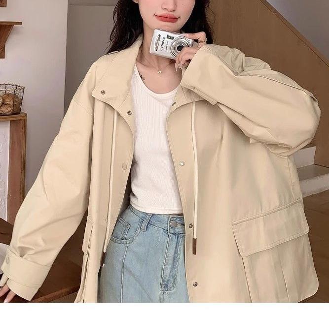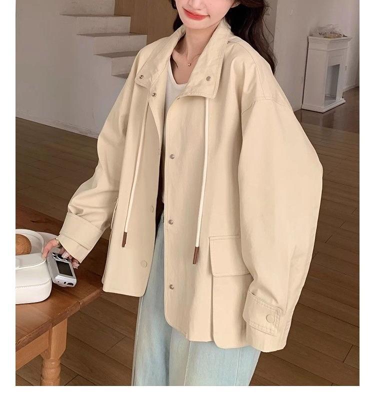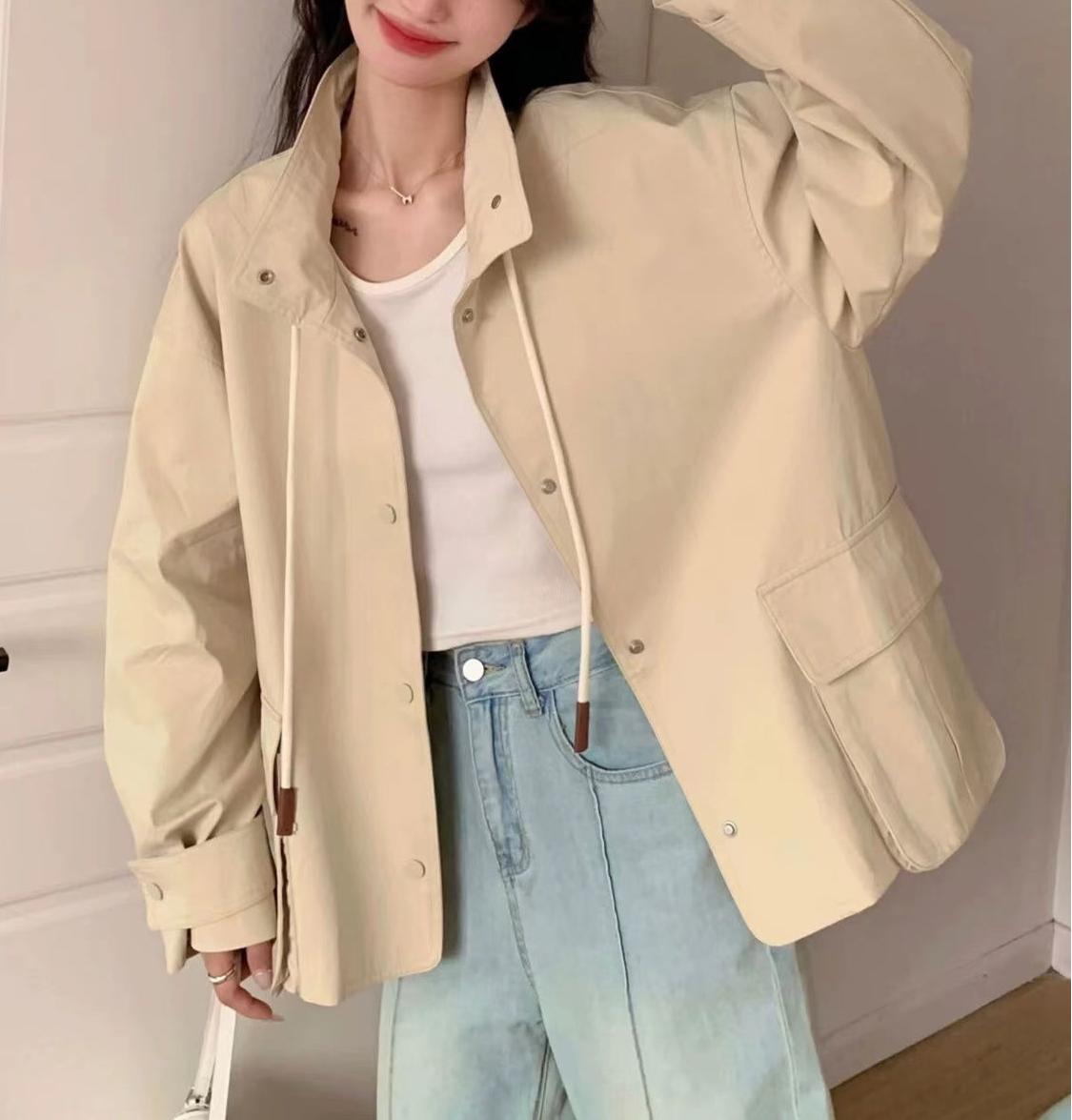 Ropa de Trabajo de Moda 2025 Ropa Exterior Primavera y Otoño Nuevo Estilo Coreano Holgado Manga Larga Simple Retro Color Sólido Casual Top Chaqueta