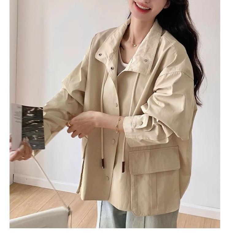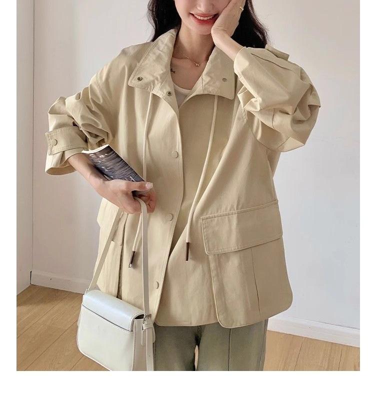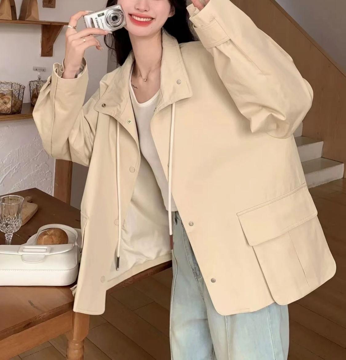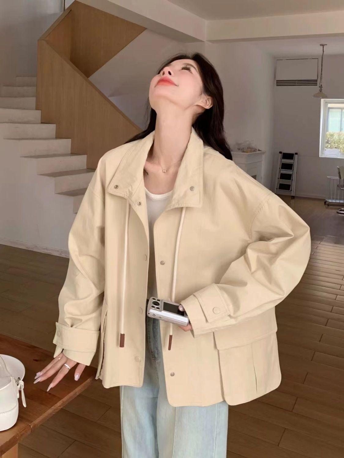 Ropa de Trabajo de Moda 2025 Ropa Exterior Primavera y Otoño Nuevo Estilo Coreano Holgado Manga Larga Simple Retro Color Sólido Casual Top Chaqueta