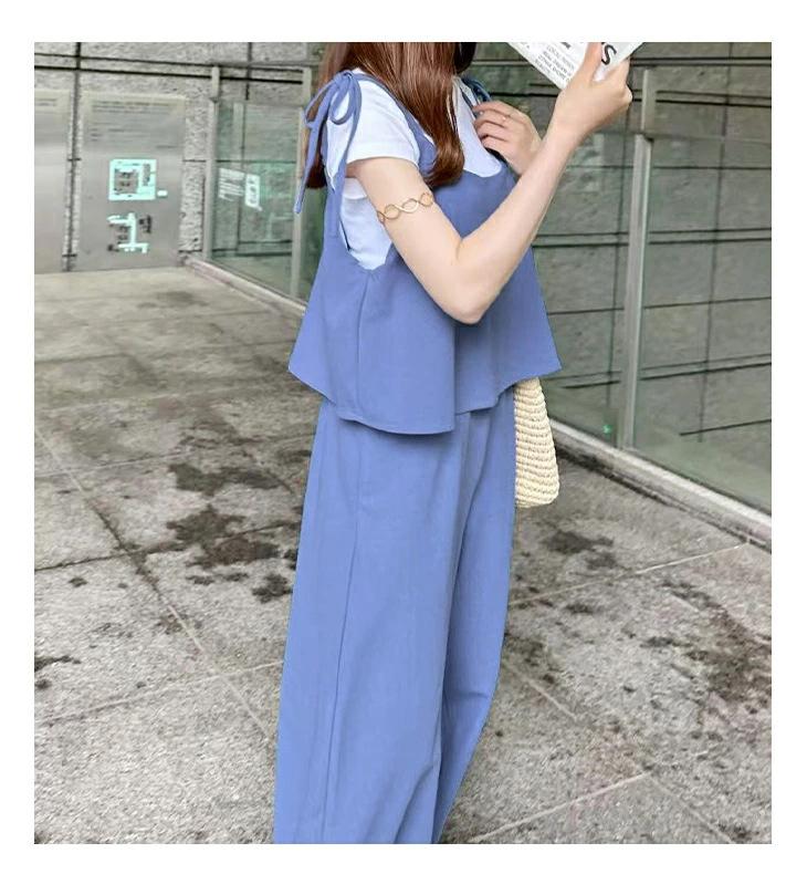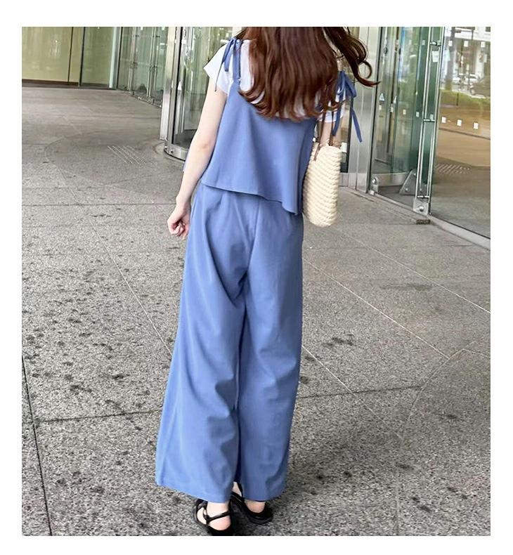 2025 Nuevo Mono Casual de Moda Europea y Americana Transfronteriza con Cuello Cuadrado Sin Mangas Bajo en Capas Pantalones de Pierna Ancha Amazon