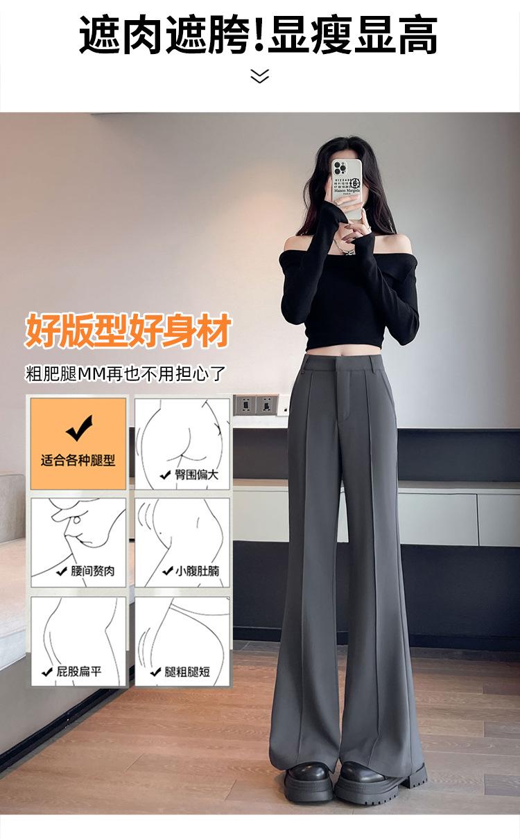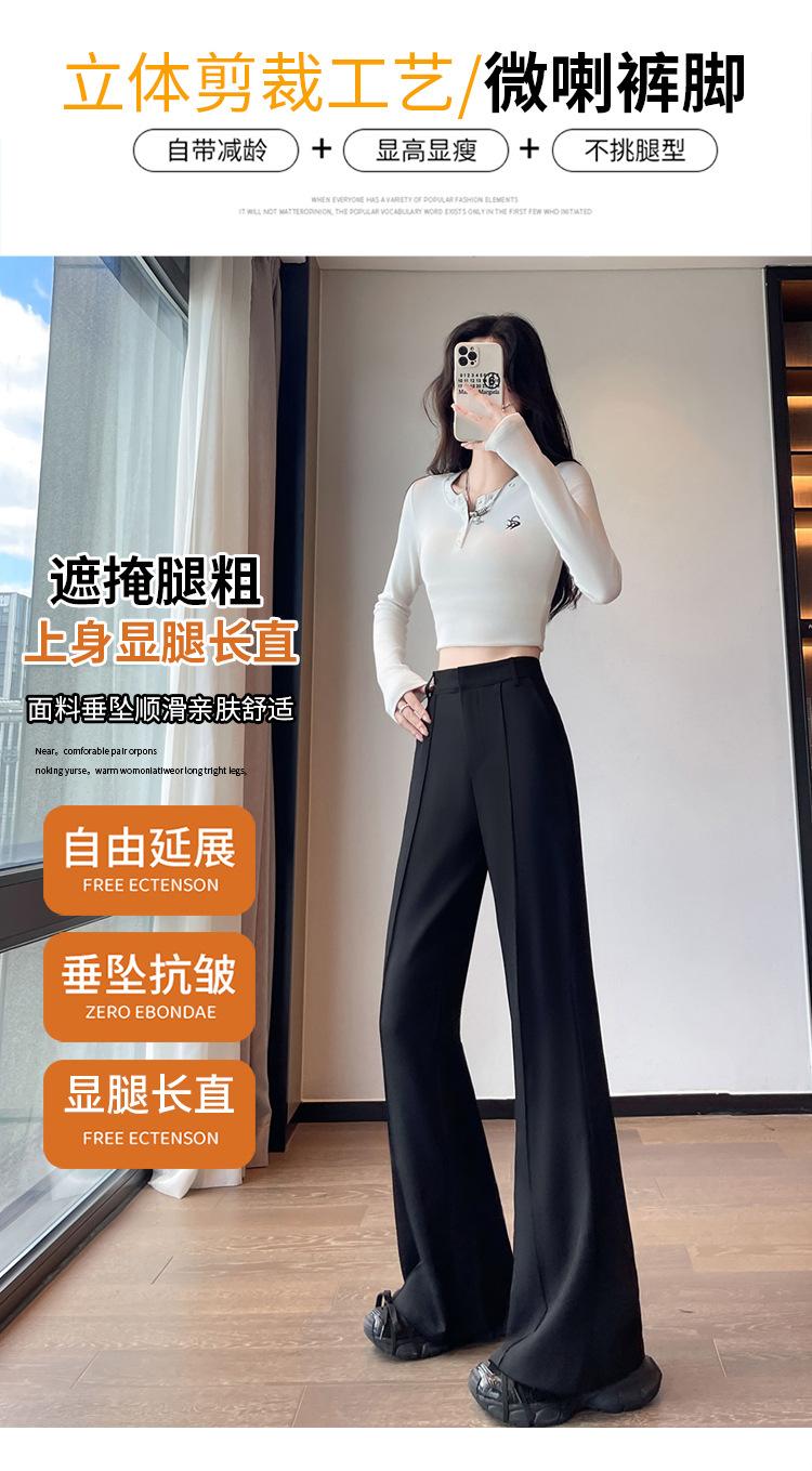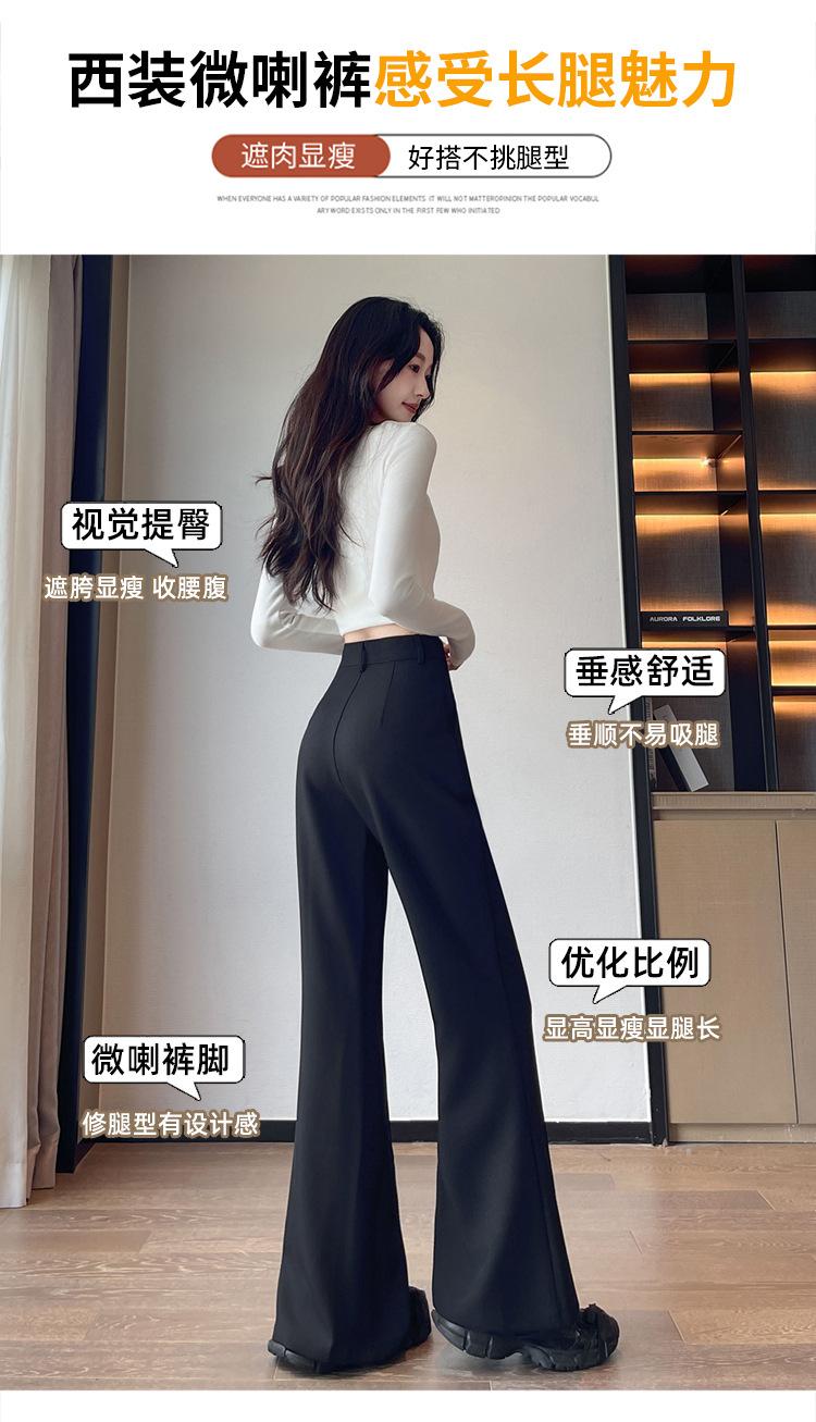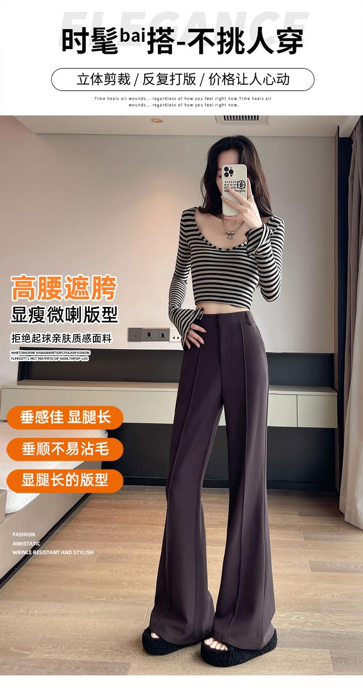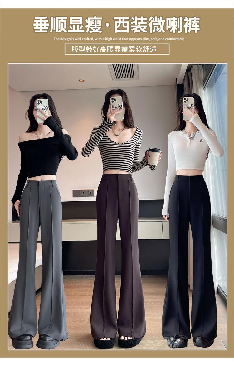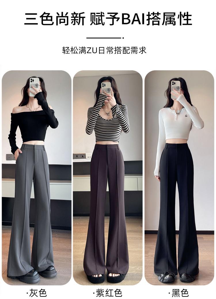 Traje de mujer de tiro real pantalones microacampanados otoño 2025 cintura alta adelgazantes drapeados pantalones acampanados casuales de pierna recta largos hasta el suelo pantalones de herradura