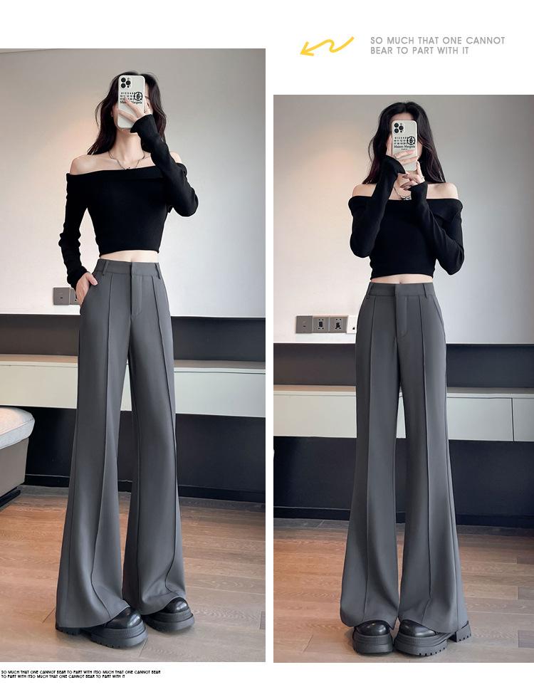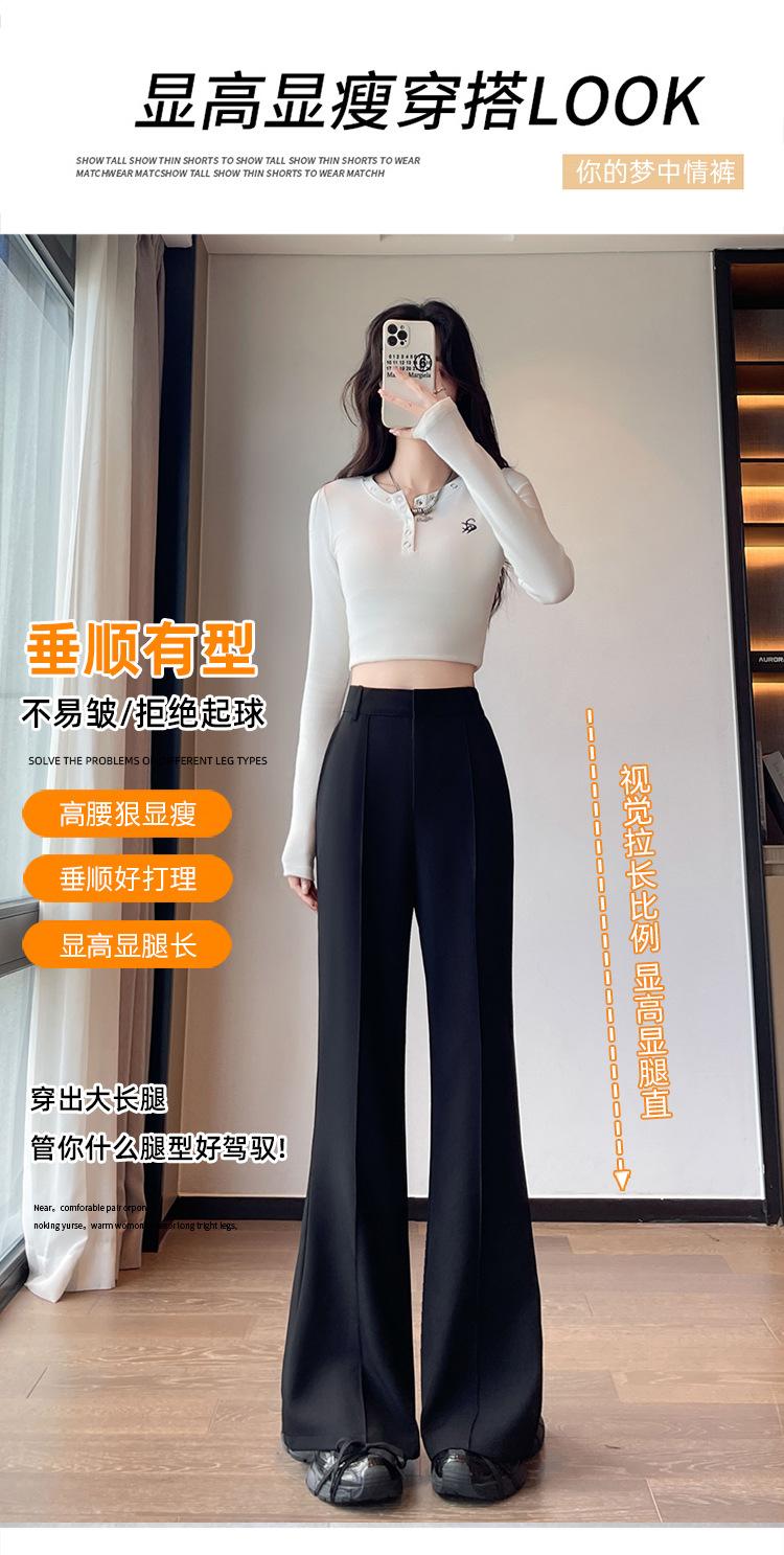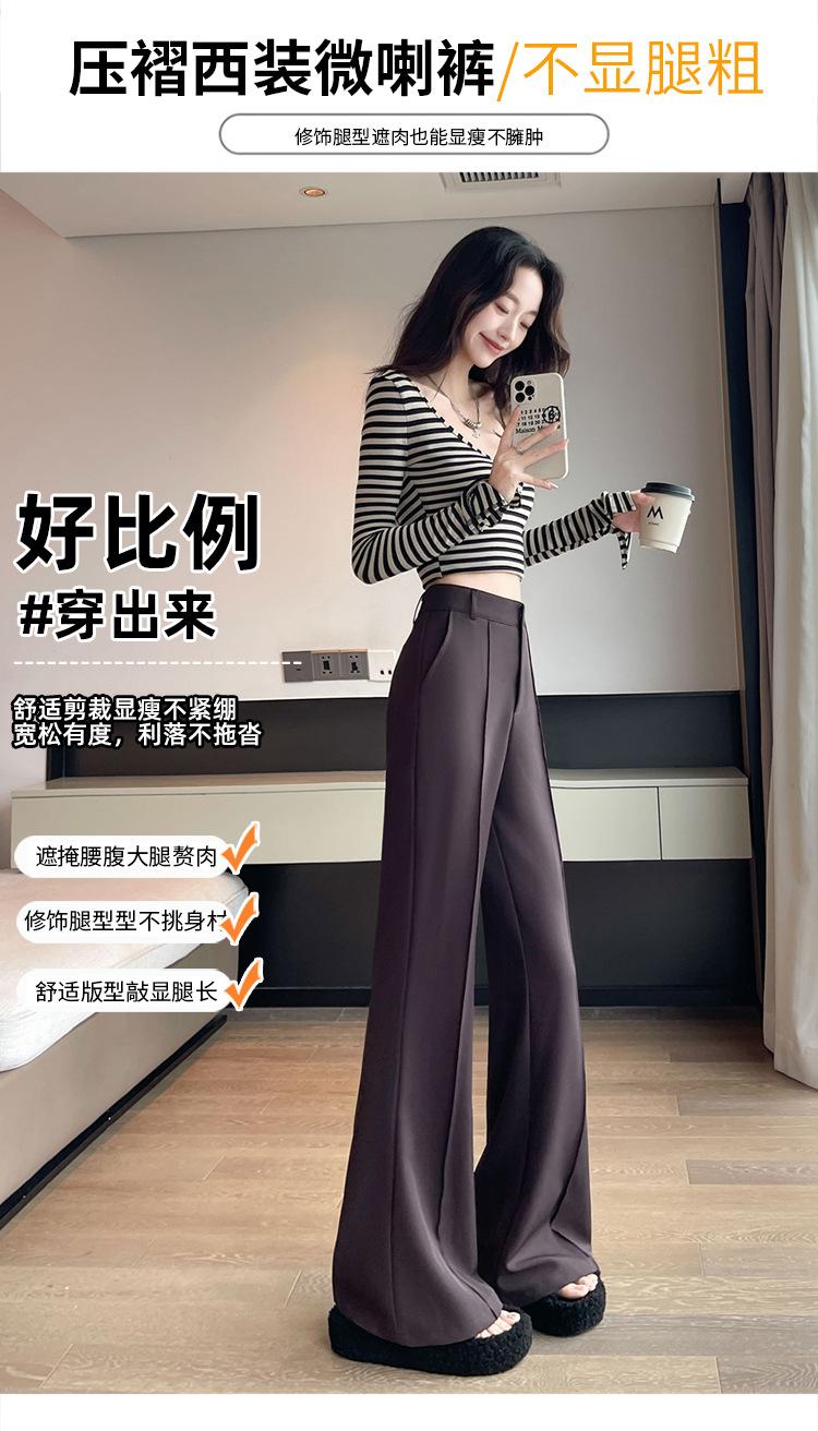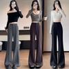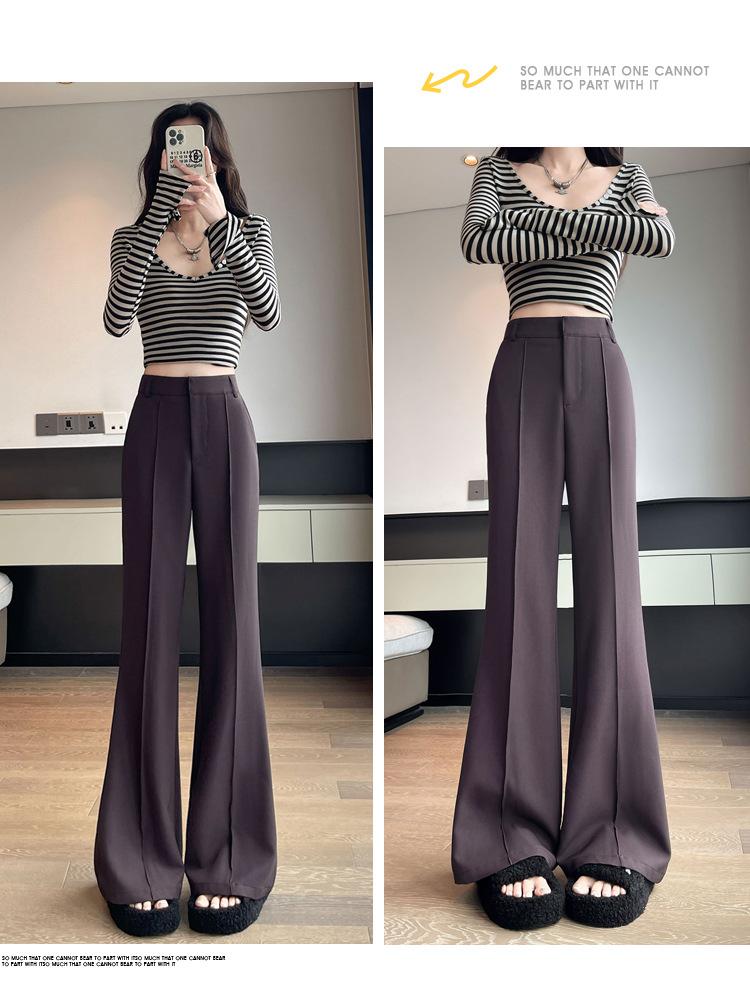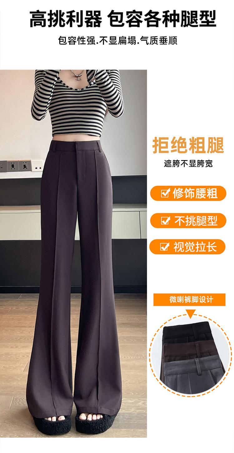 Traje de mujer de tiro real pantalones microacampanados otoño 2025 cintura alta adelgazantes drapeados pantalones acampanados casuales de pierna recta largos hasta el suelo pantalones de herradura