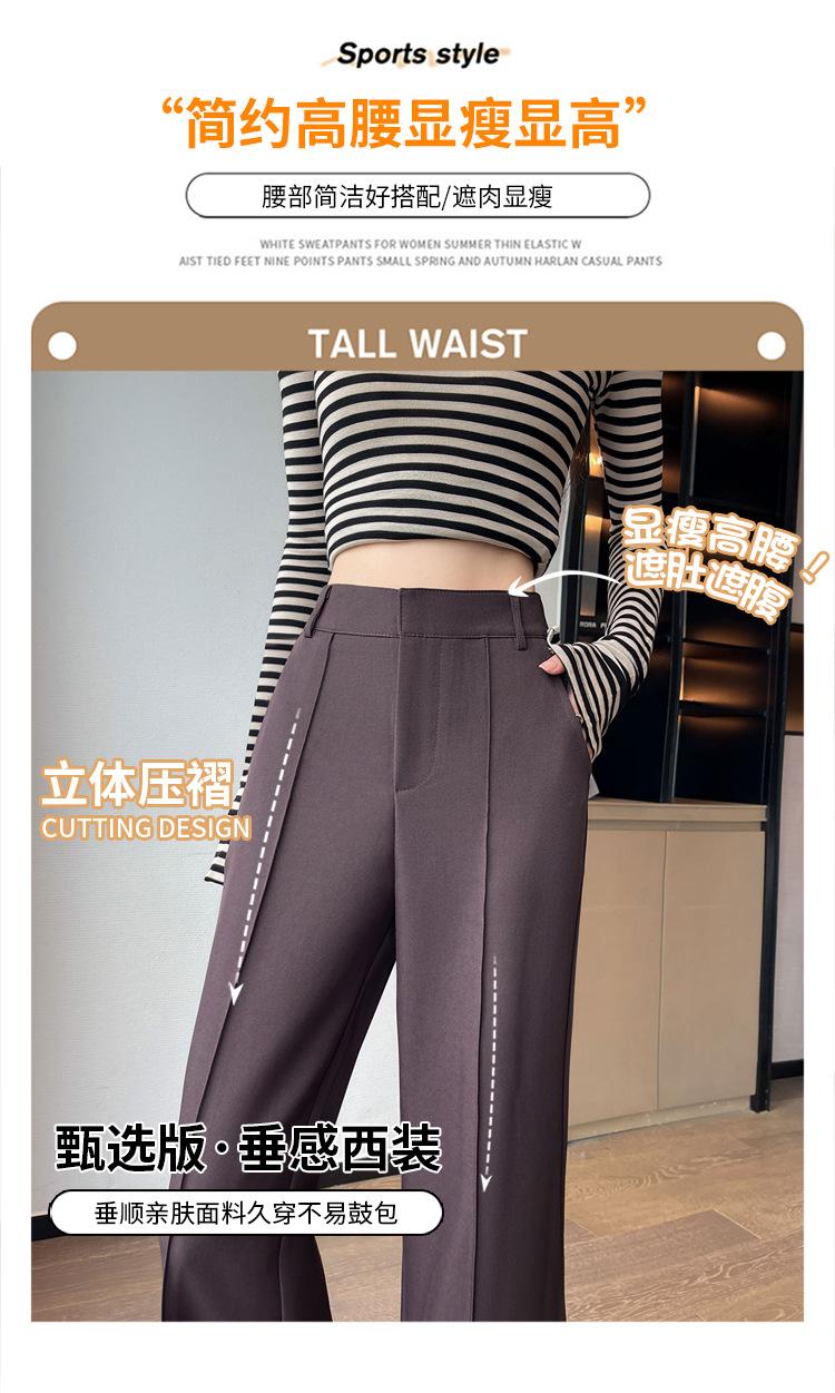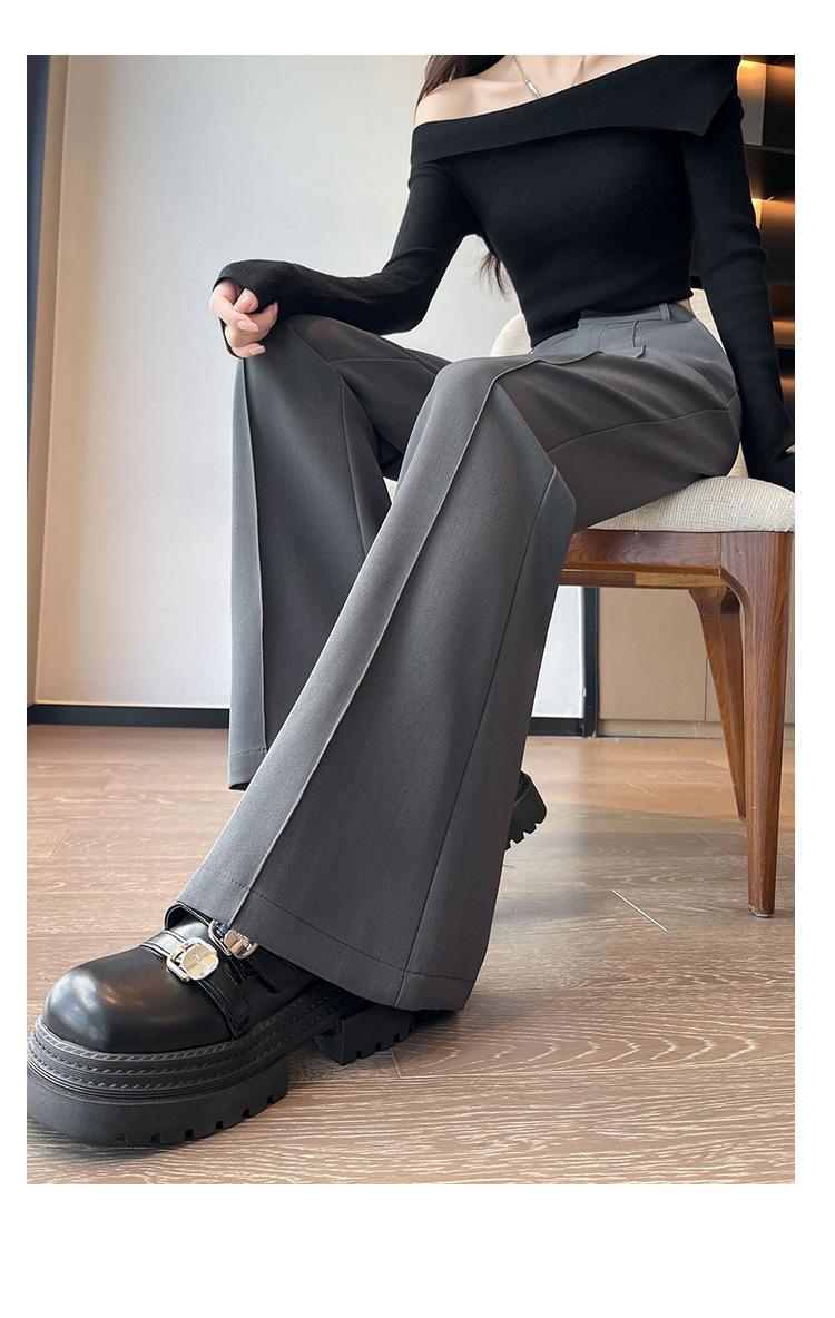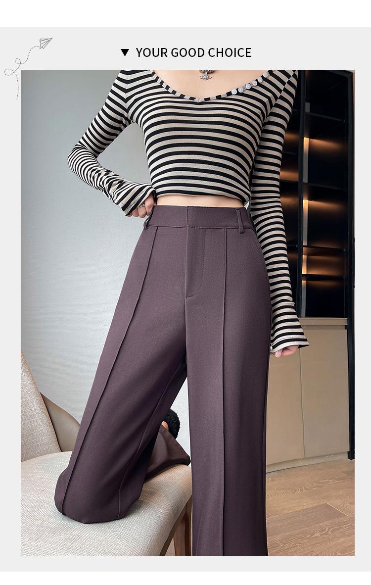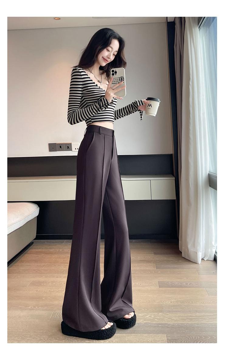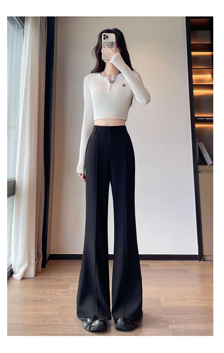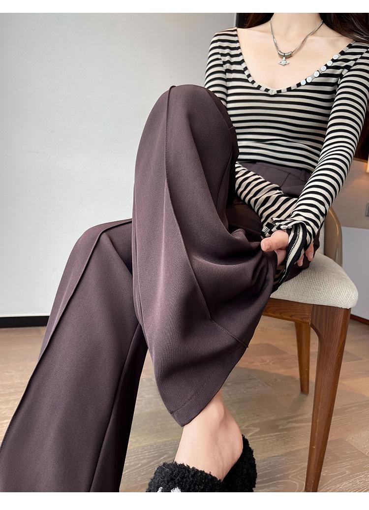 Traje de mujer de tiro real pantalones microacampanados otoño 2025 cintura alta adelgazantes drapeados pantalones acampanados casuales de pierna recta largos hasta el suelo pantalones de herradura