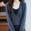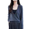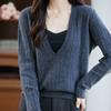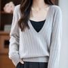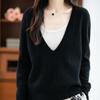 Suéter de Lana de Manga Larga con Cuello en V Profundo de Canalé Ancho Nuevo Otoño/Invierno 2025 para Mujer Suéter Básico Tejido Jersey Adelgazante