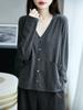 Nuevo Estilo Otoño Temprano 2025 Cárdigan de Punto 100% Lana Peinada Cuello en V Borde Enrollado Manga Larga Color Sólido Holgado con Bolsillos