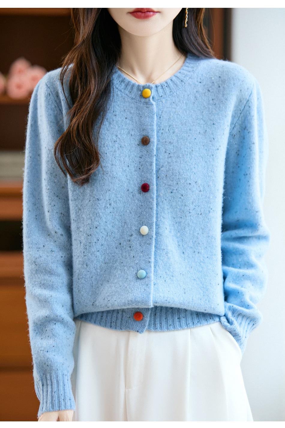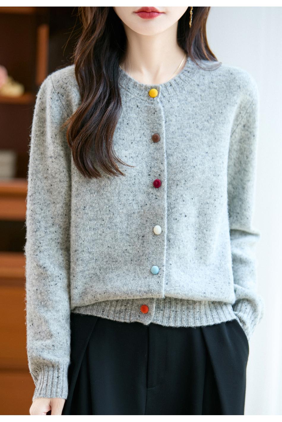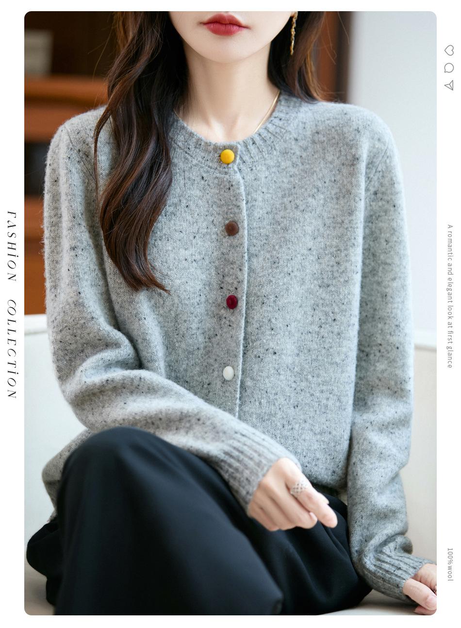 100% Lana Pura Otoño/Invierno 2025 Nuevo Cárdigan Tejido Grueso con Botones Coloridos de Hilado Jaspeado de Cuello Redondo Suelto para Mujer