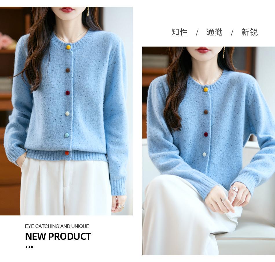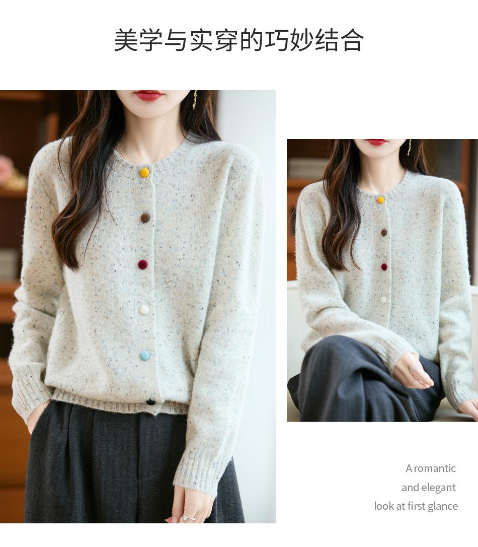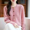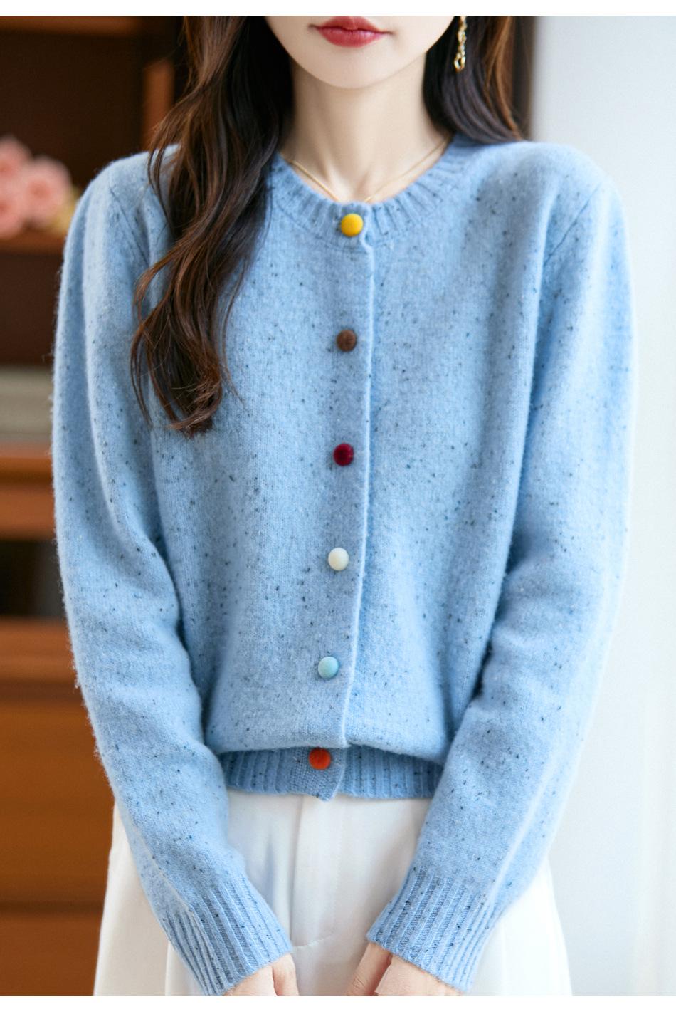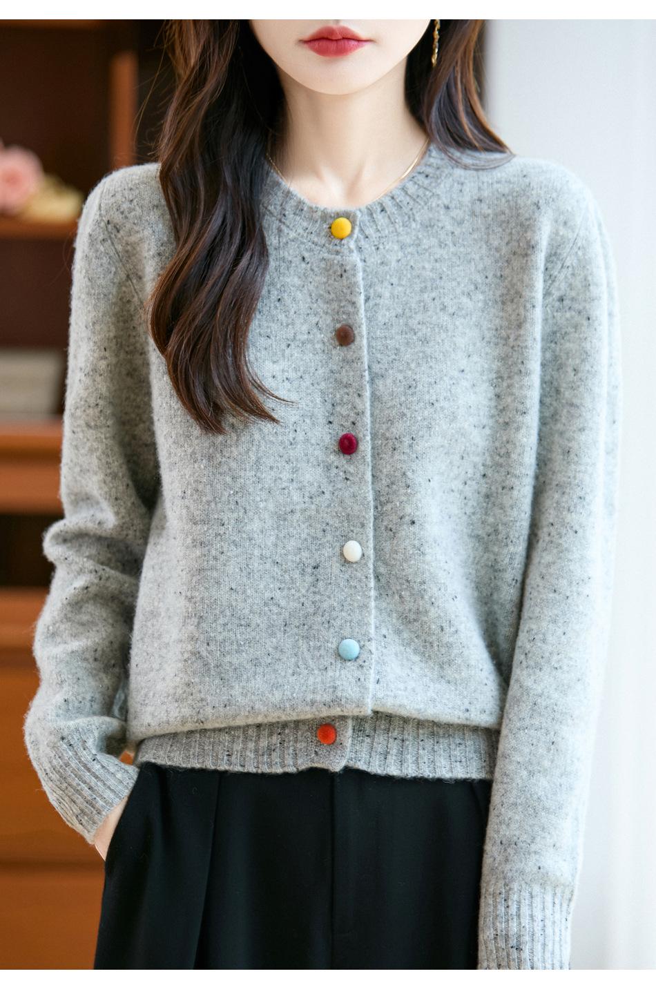 100% Lana Pura Otoño/Invierno 2025 Nuevo Cárdigan Tejido Grueso con Botones Coloridos de Hilado Jaspeado de Cuello Redondo Suelto para Mujer