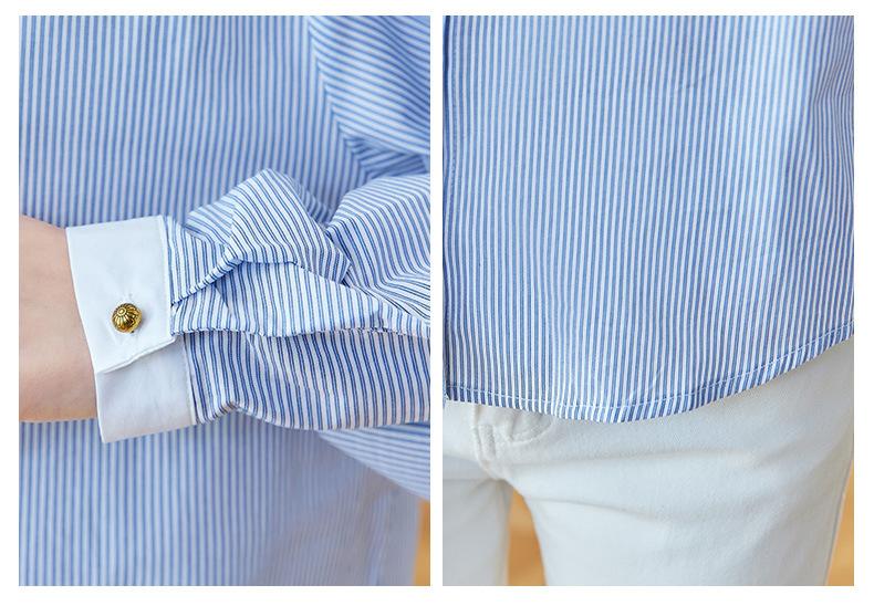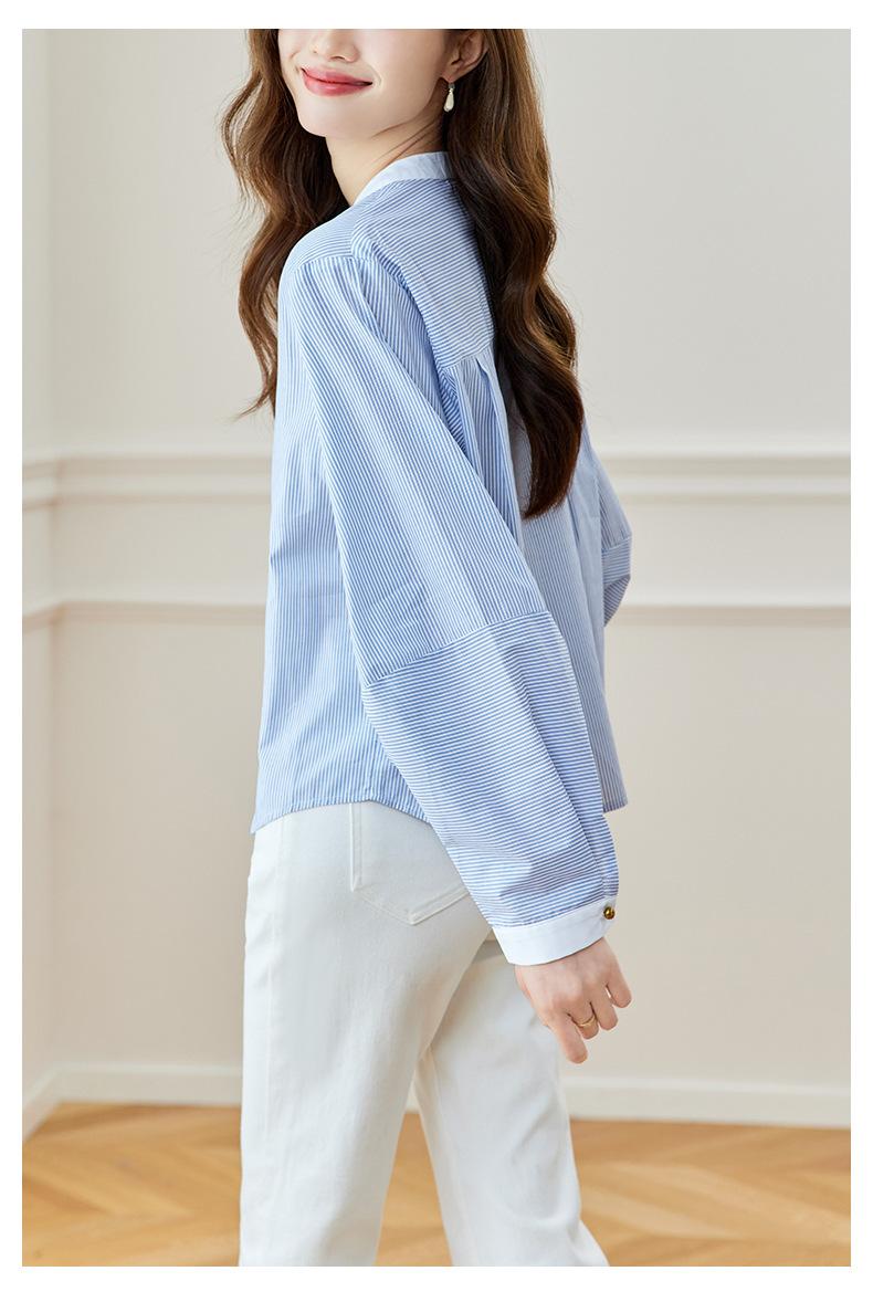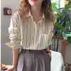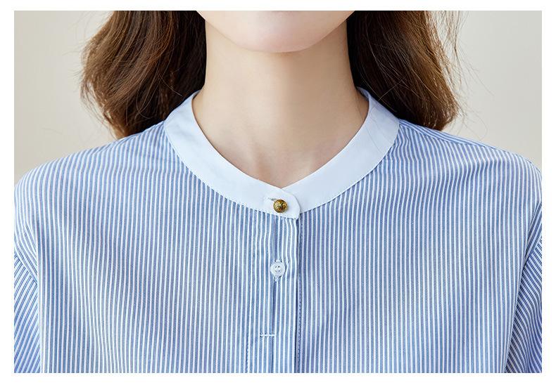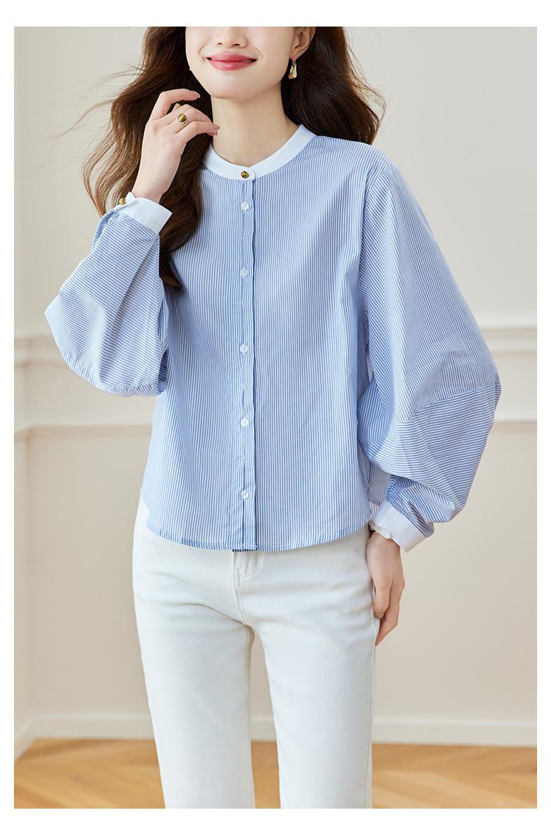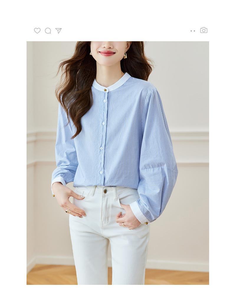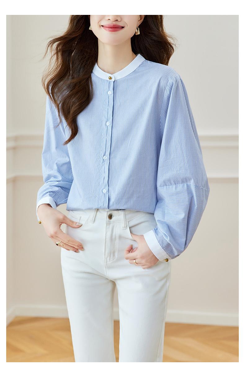 Camiseta de Cuello Redondo a Rayas Azules y Blancas Top Versátil Coreano Lazy Otoño Diseño de Moda Sentido Camisa Holgada A6150