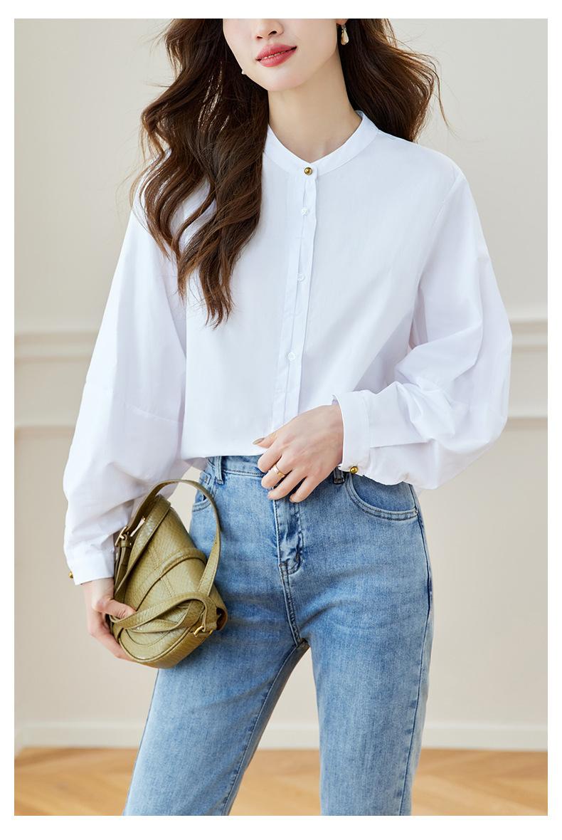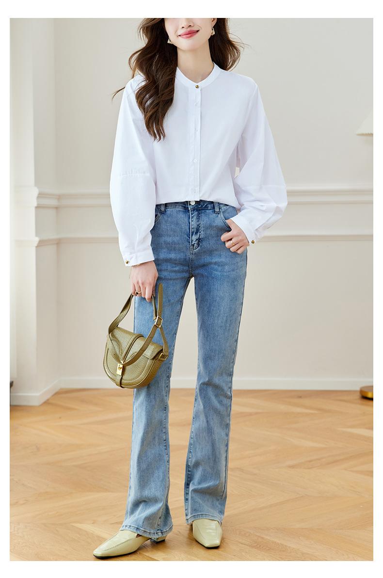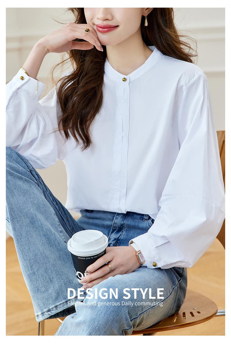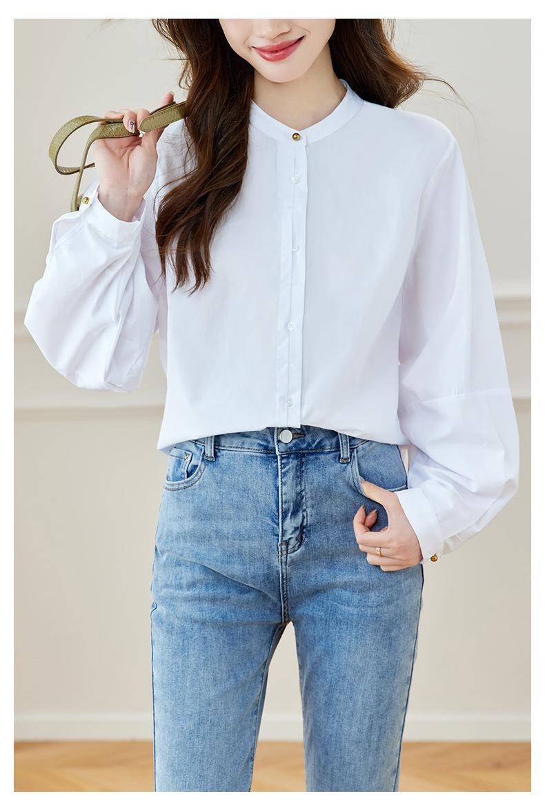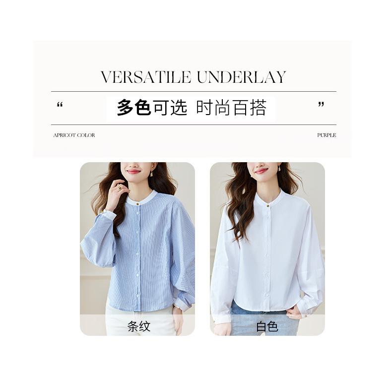 Camiseta de Cuello Redondo a Rayas Azules y Blancas Top Versátil Coreano Lazy Otoño Diseño de Moda Sentido Camisa Holgada A6150