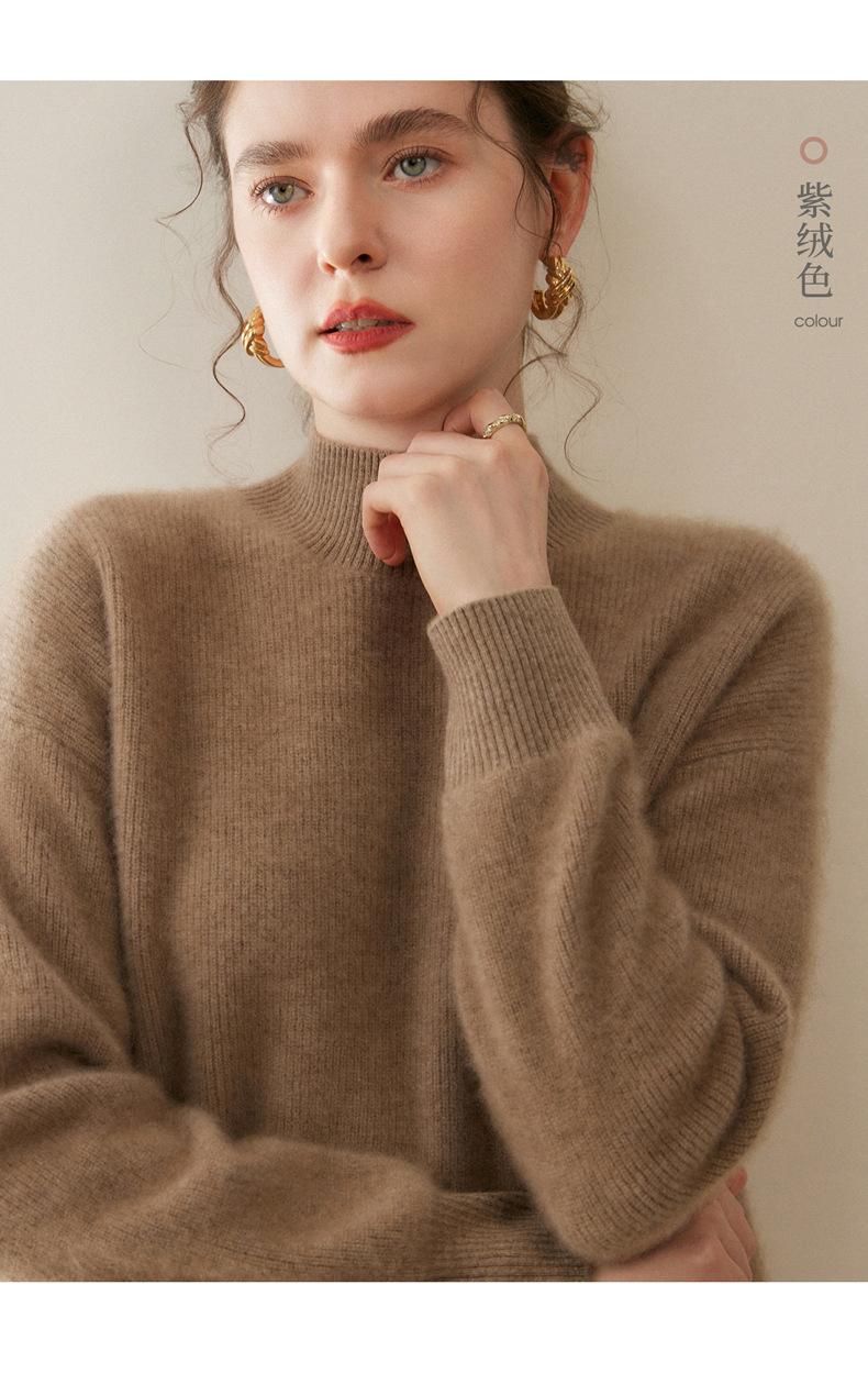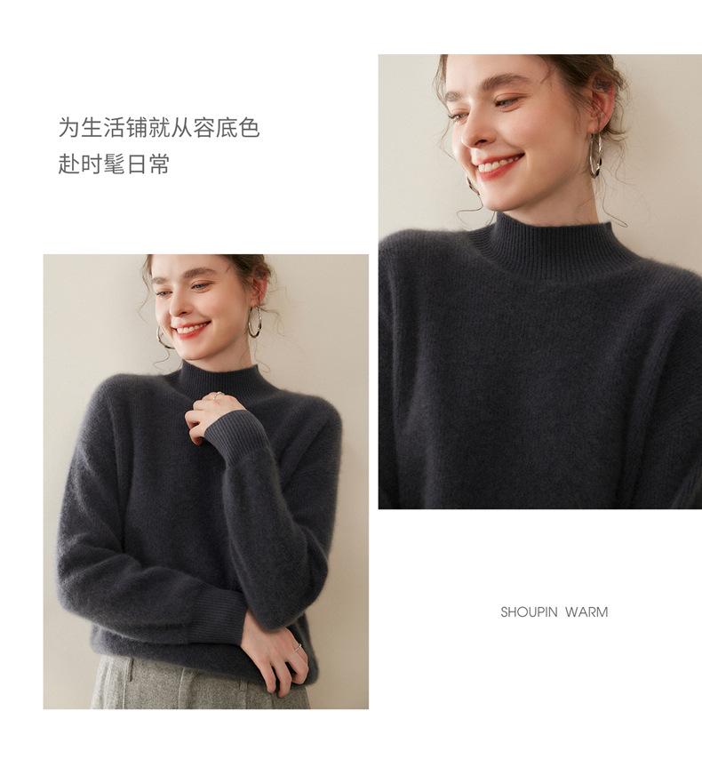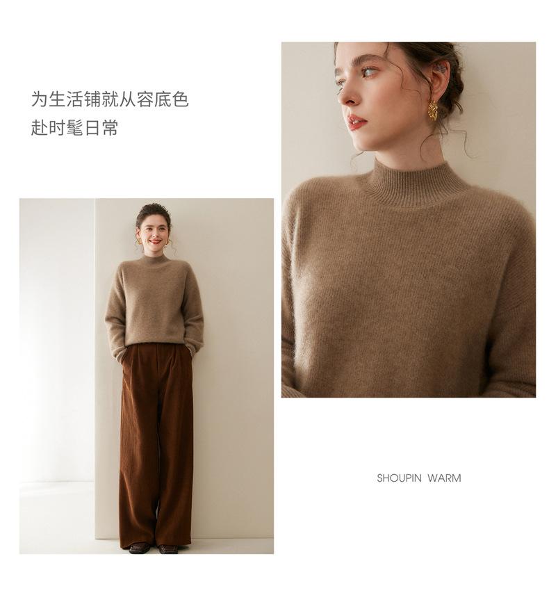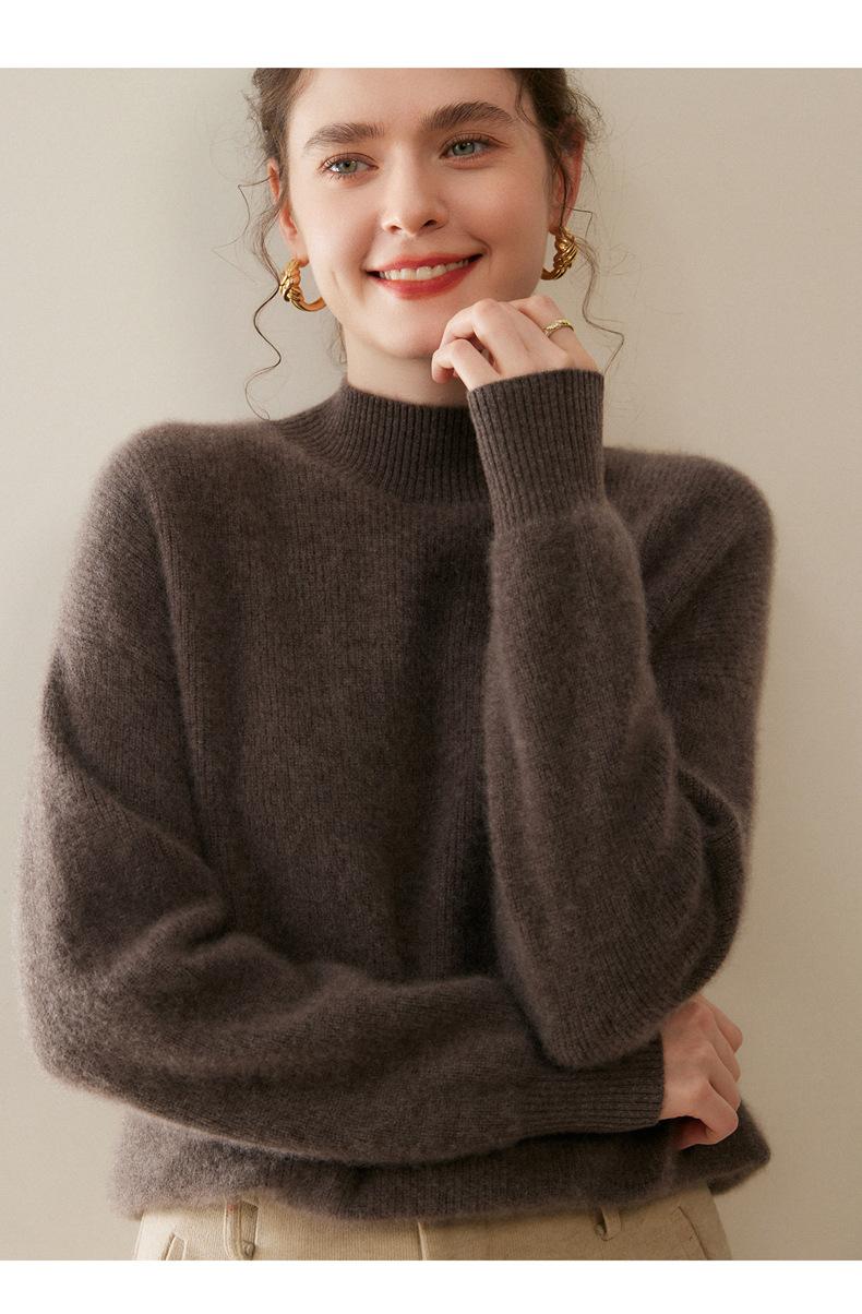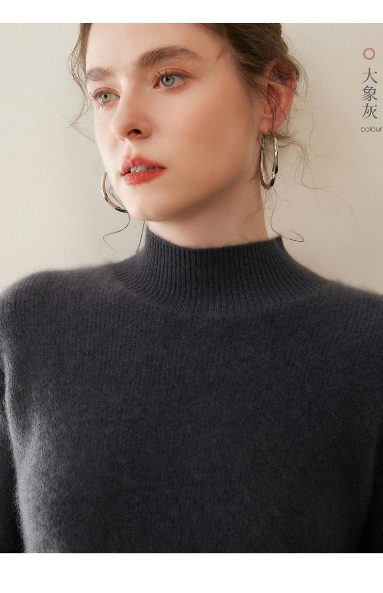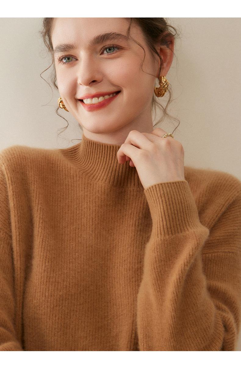Suéter de Cachemira 100% para Mujer Otoño/Invierno Cuello Alto Versátil Suéter Jersey Color Sólido Cachemira Manga Larga Tejido Capa Base
