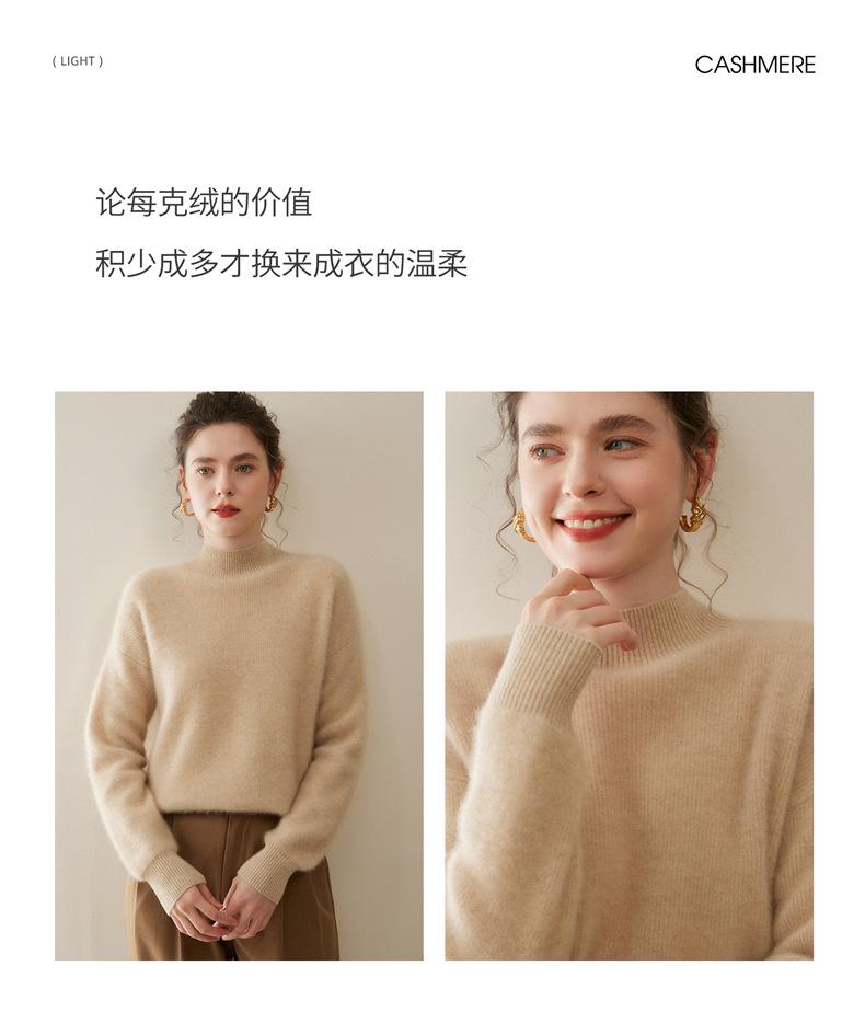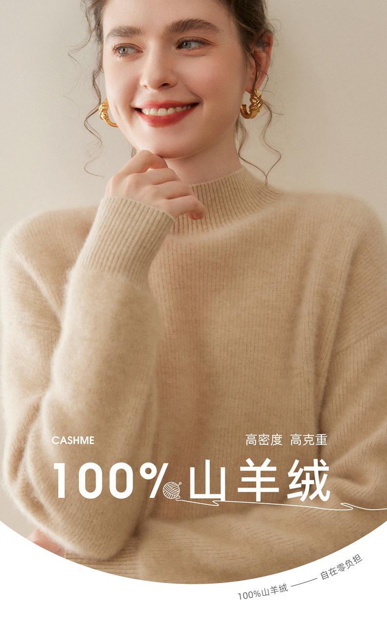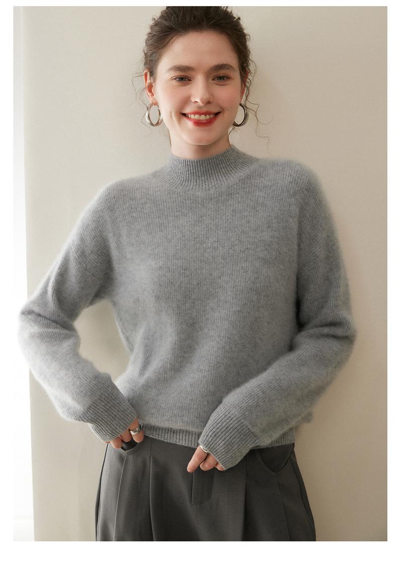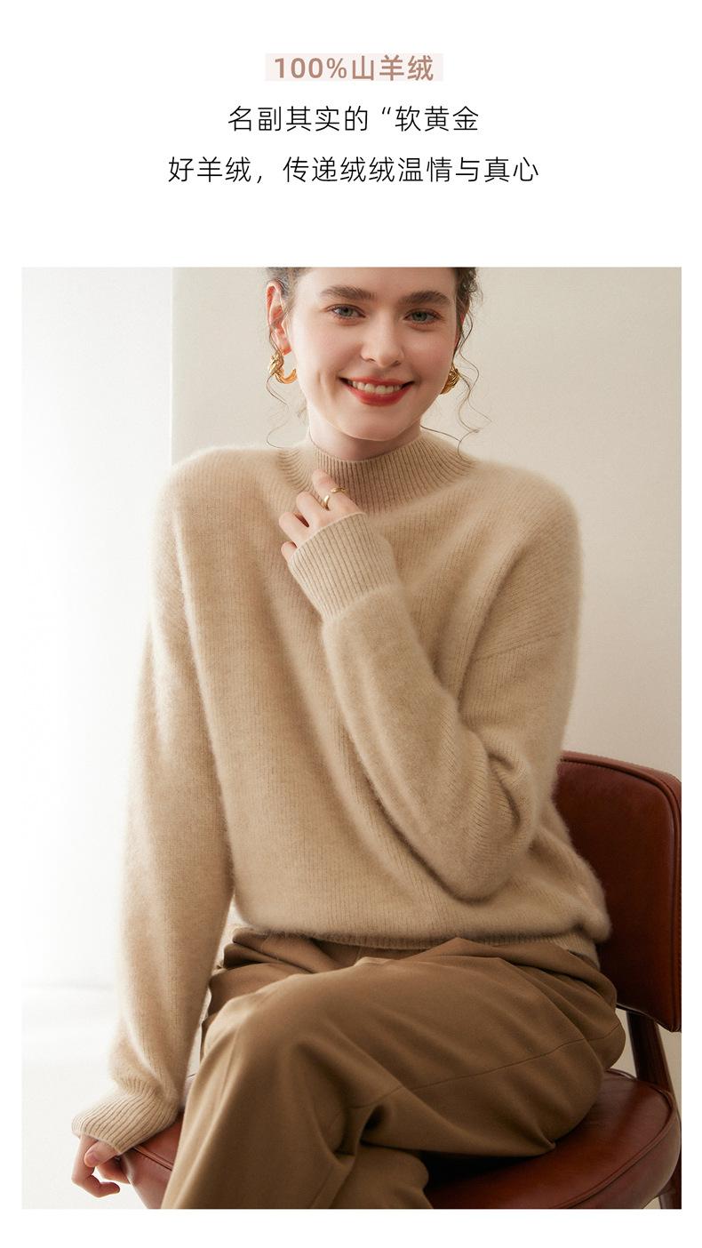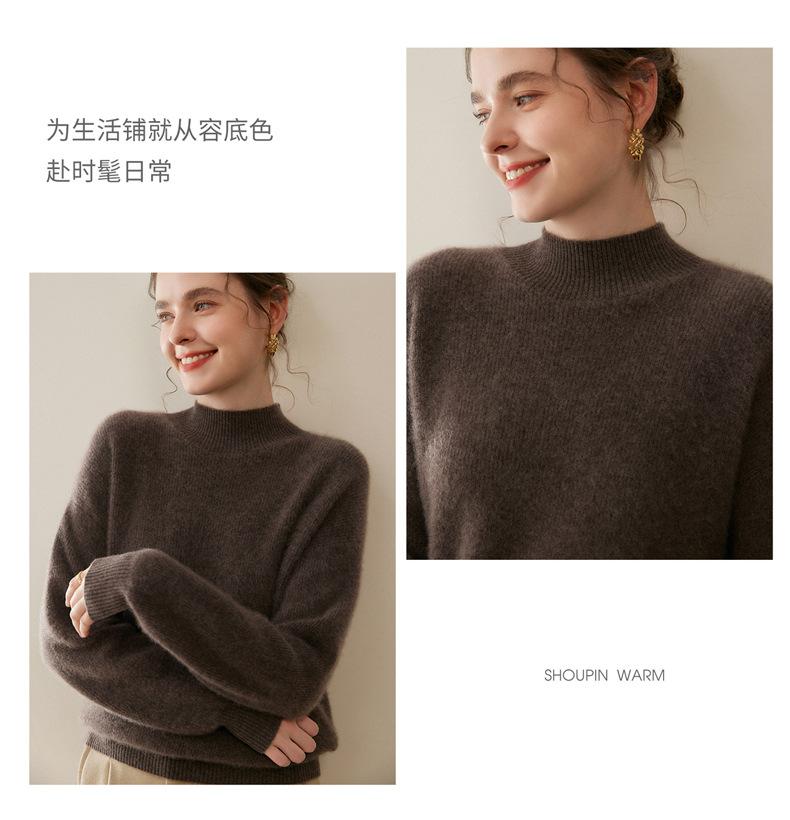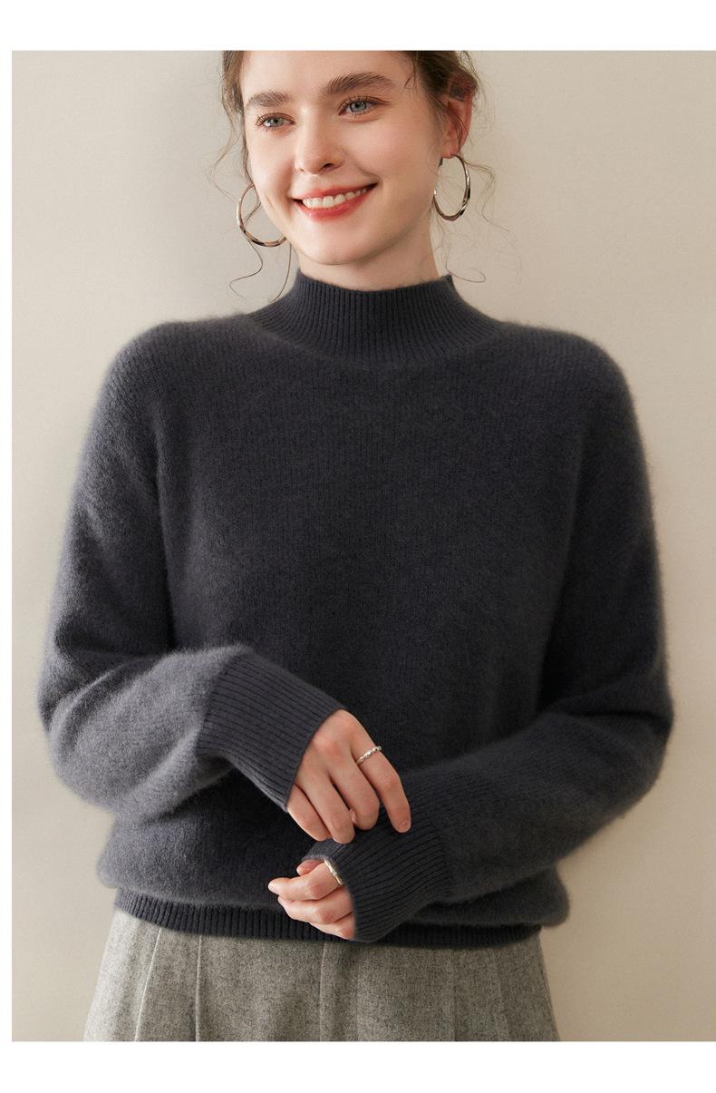 Suéter de Cachemira 100% para Mujer Otoño/Invierno Cuello Alto Versátil Suéter Jersey Color Sólido Cachemira Manga Larga Tejido Capa Base