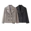 Abrigo Trench de Lana de Doble Botonadura para Mujer Otoño e Invierno Transfronterizo Europeo y Americano Nuevo Amazon a Cuadros Rayado Bolsillo
