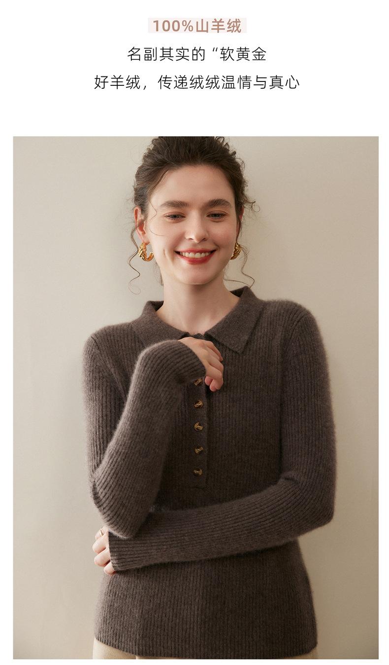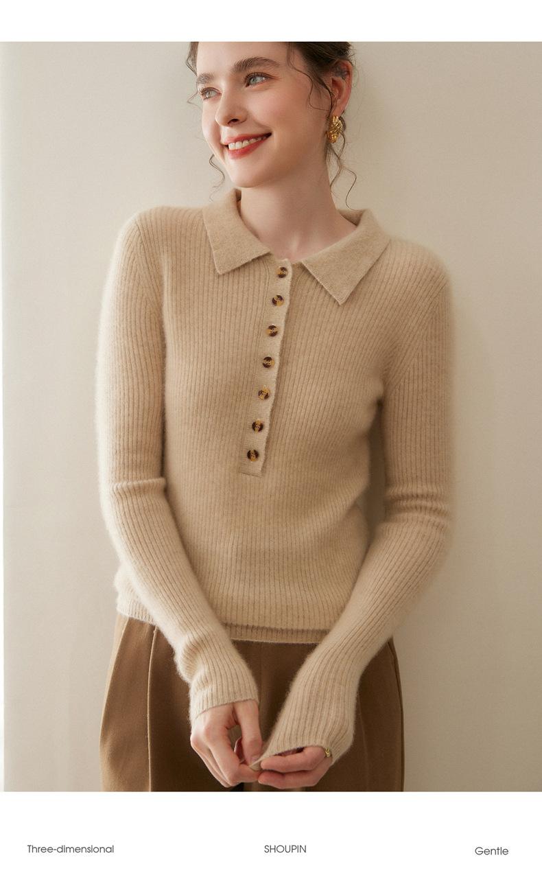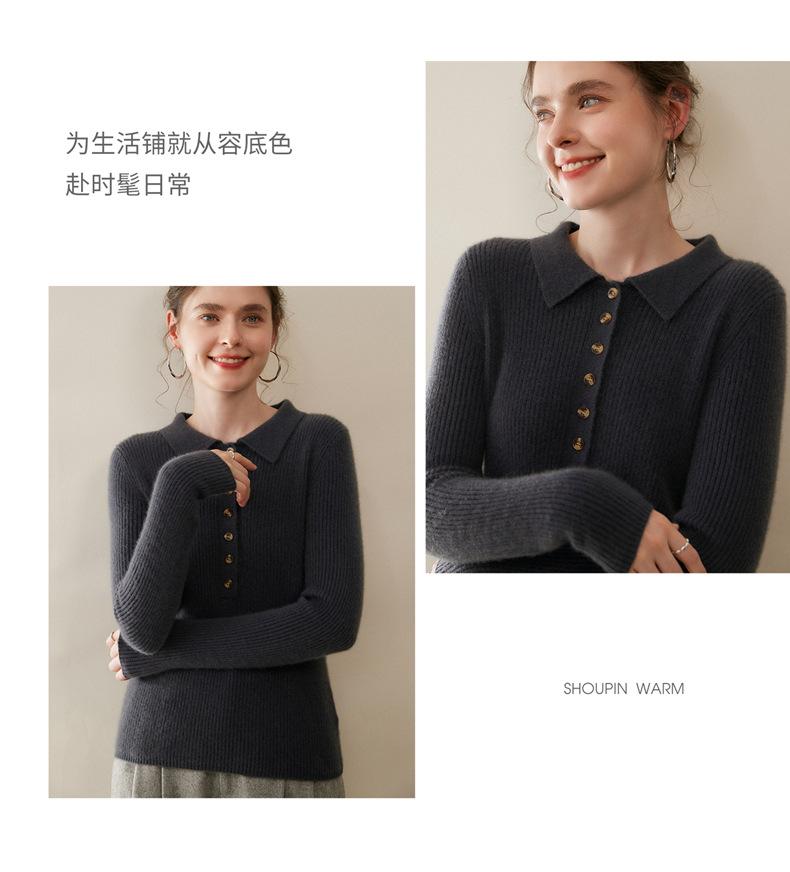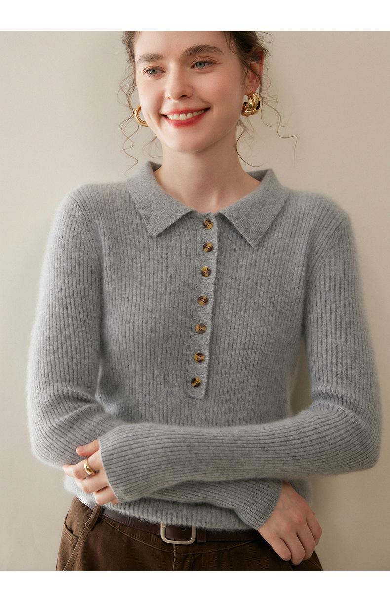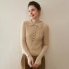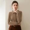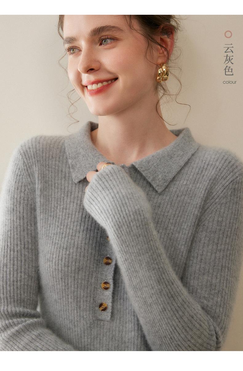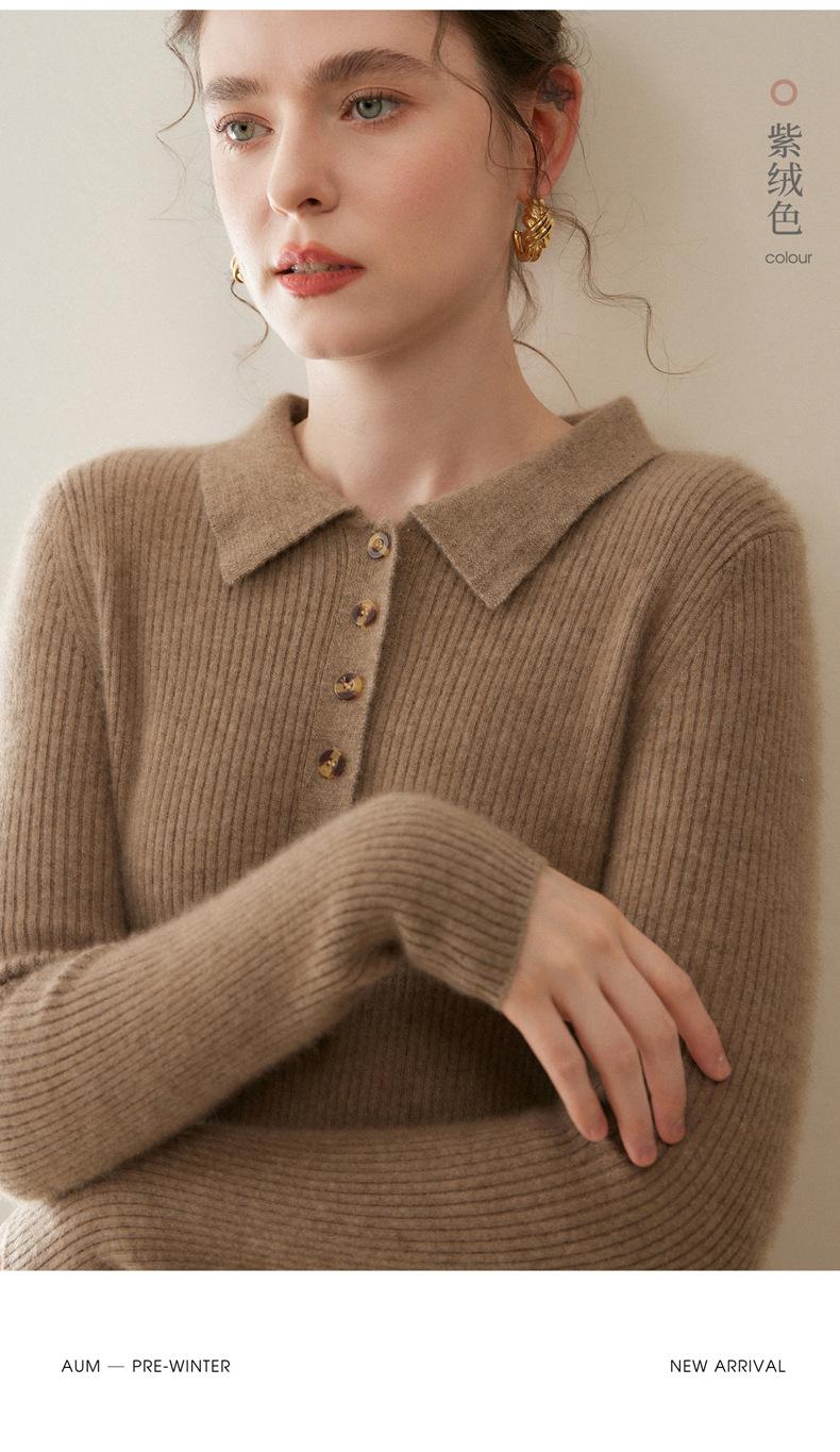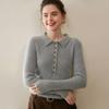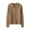 Suéter de cachemira para mujer otoño e invierno 100% cachemira temperamento nuevo estilo cuello POLO manga larga jersey corte ajustado suéter de punto