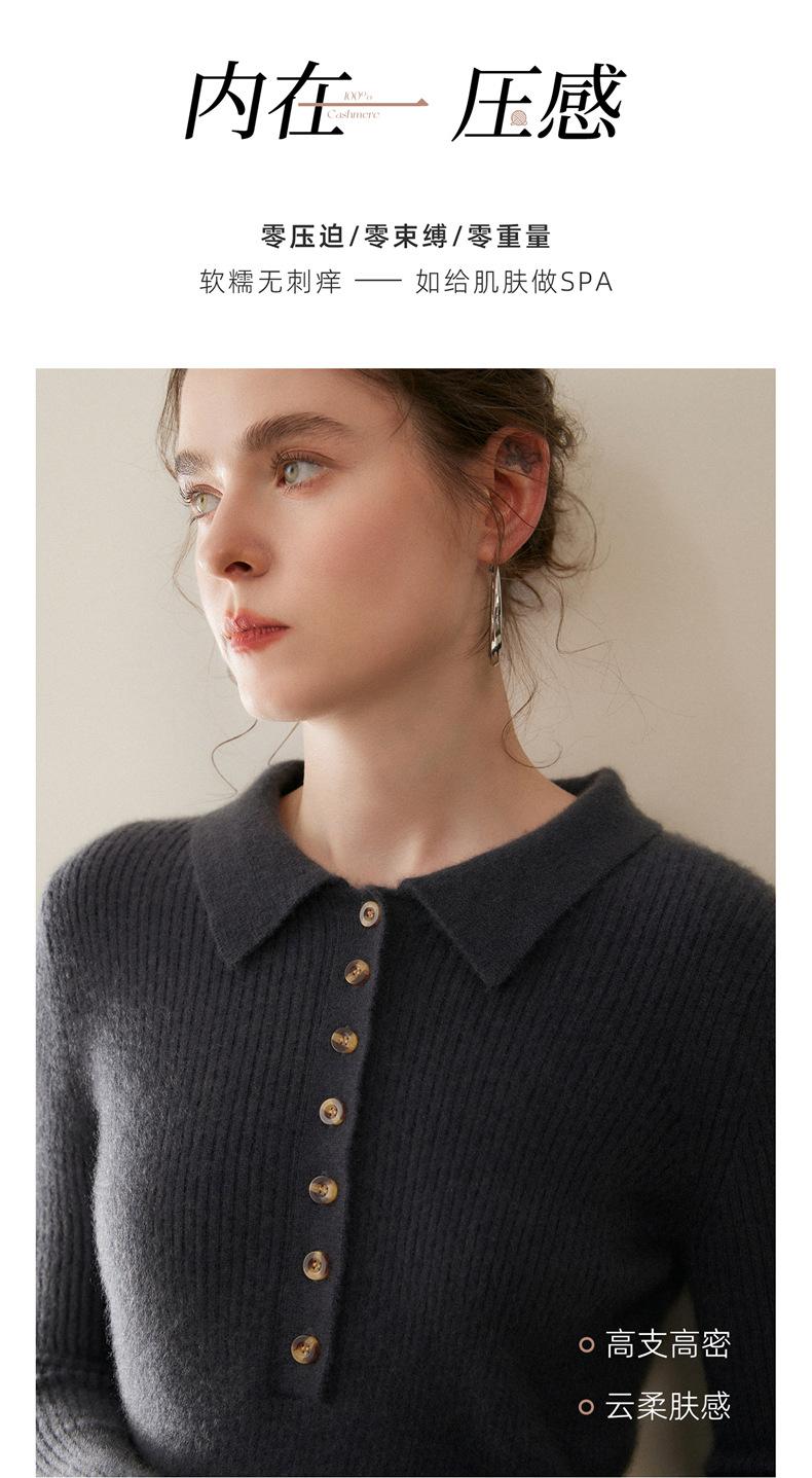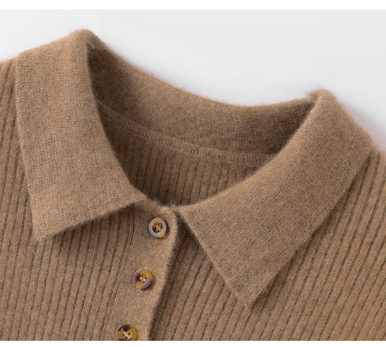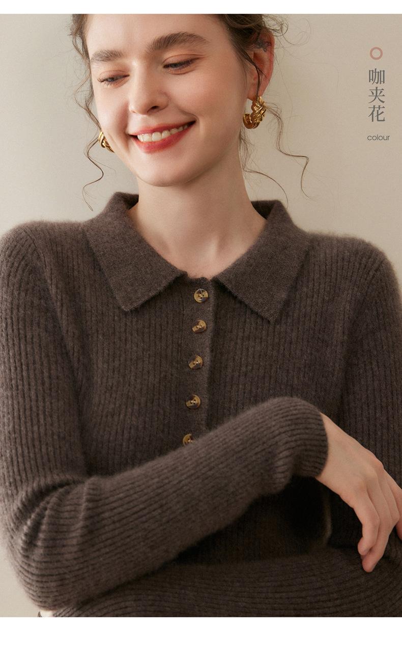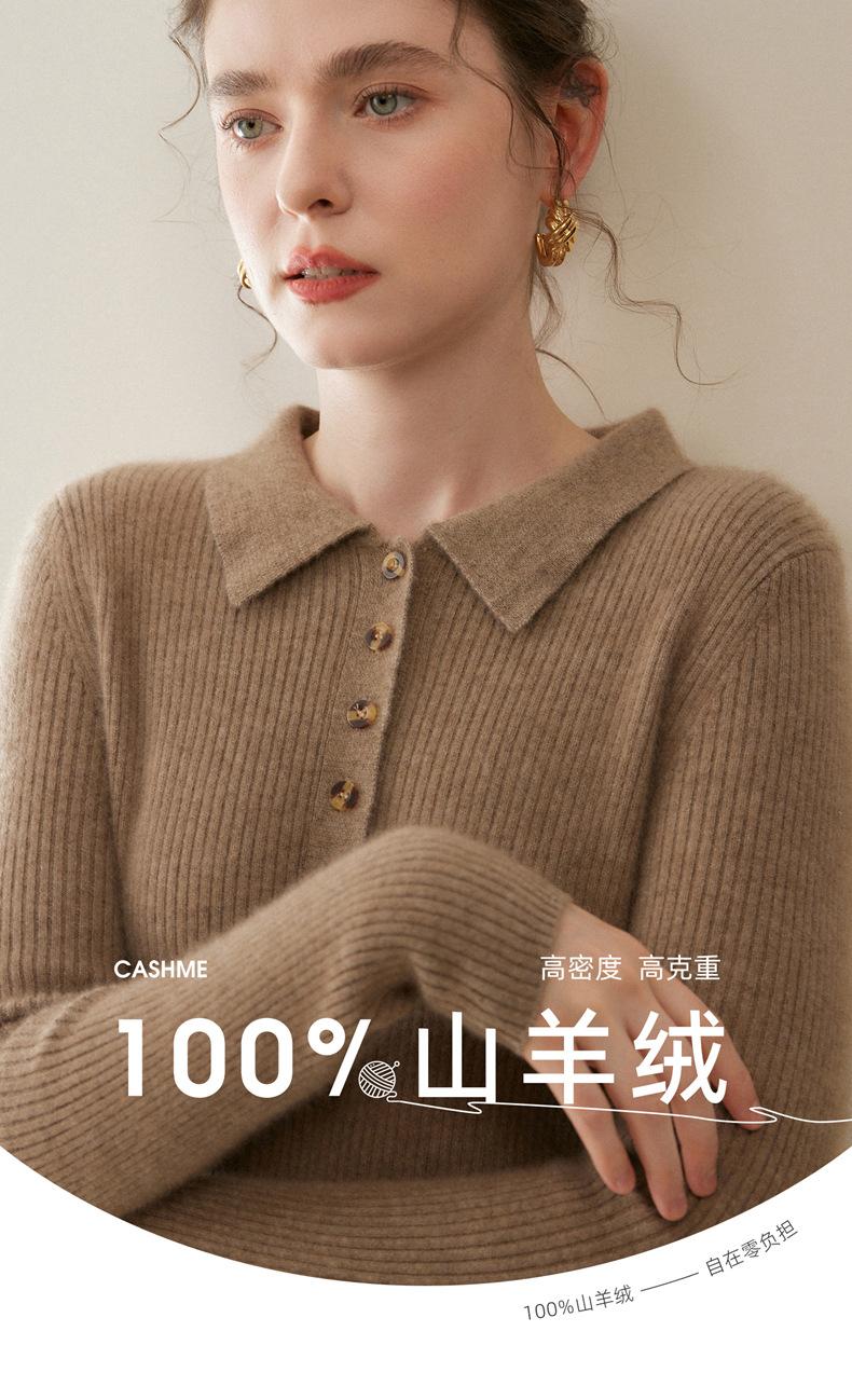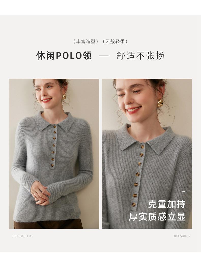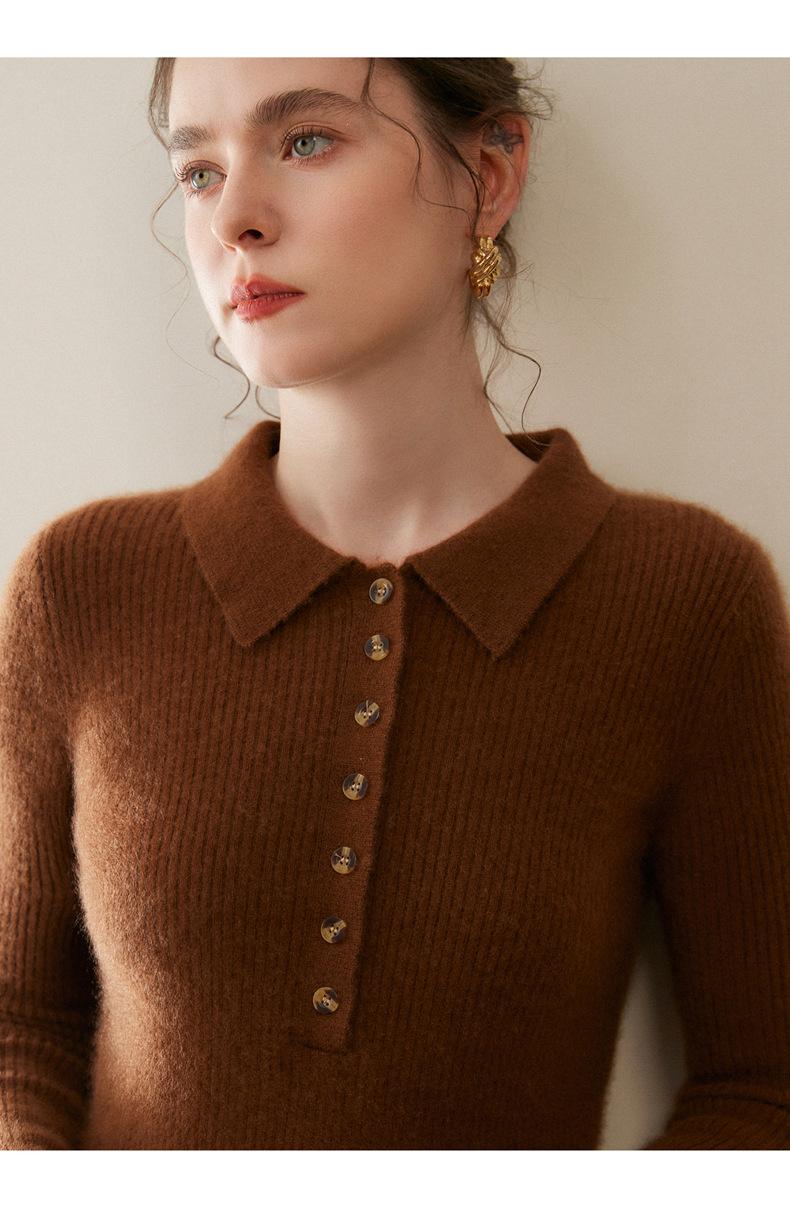 Suéter de cachemira para mujer otoño e invierno 100% cachemira temperamento nuevo estilo cuello POLO manga larga jersey corte ajustado suéter de punto