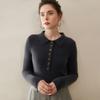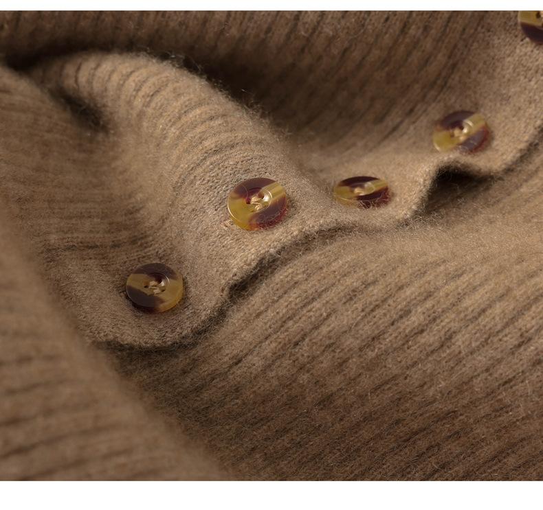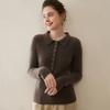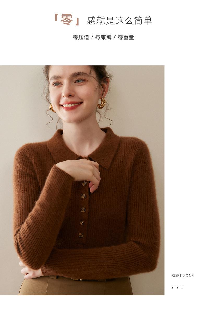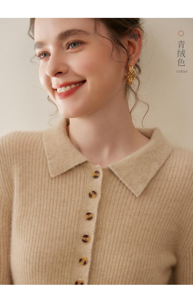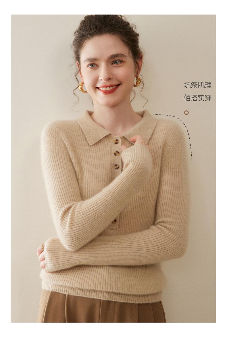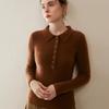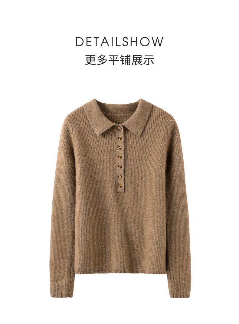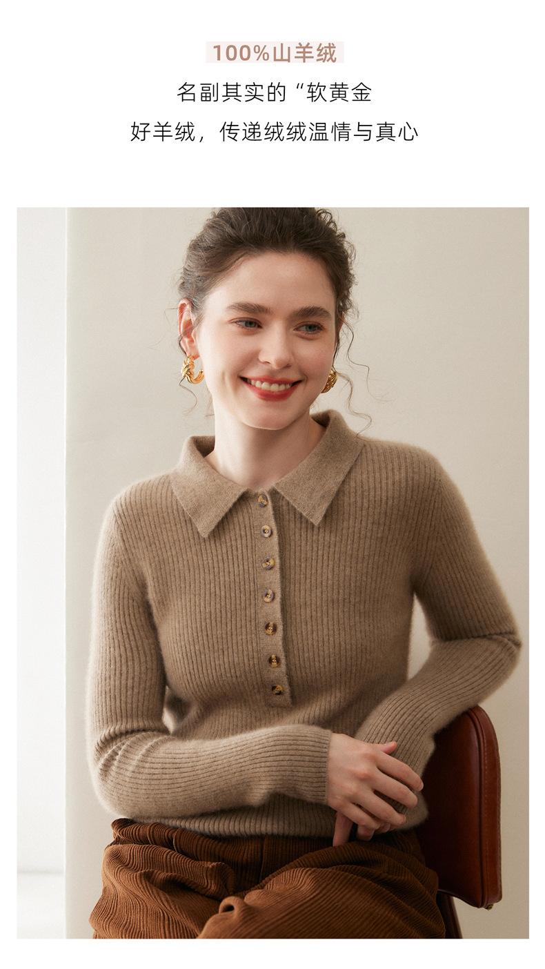 Suéter de cachemira para mujer otoño e invierno 100% cachemira temperamento nuevo estilo cuello POLO manga larga jersey corte ajustado suéter de punto