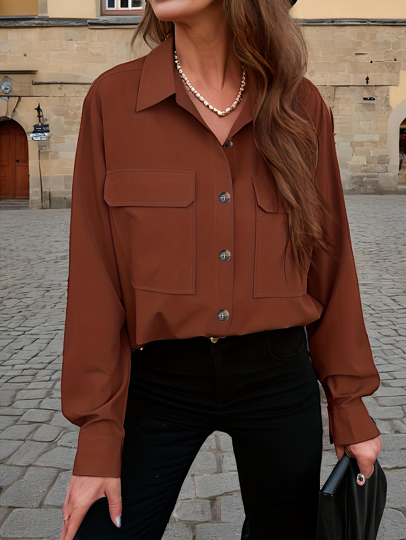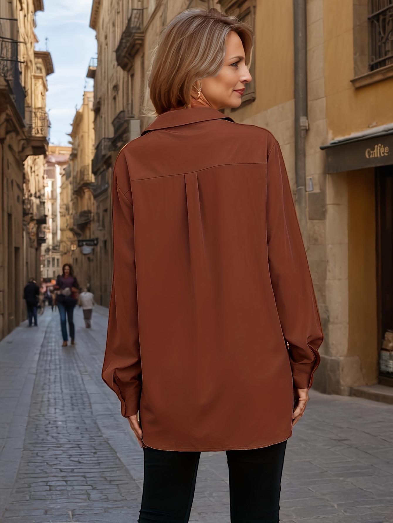 Camisa de Manga Larga con Diseño Elegante Casual de Color Sólido