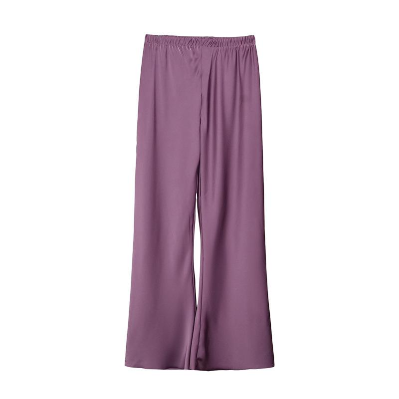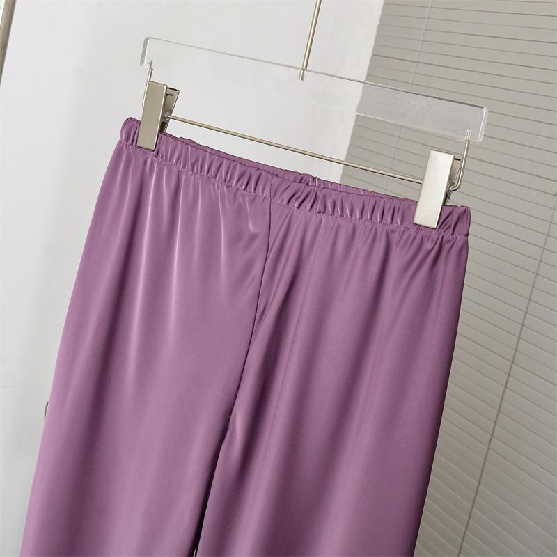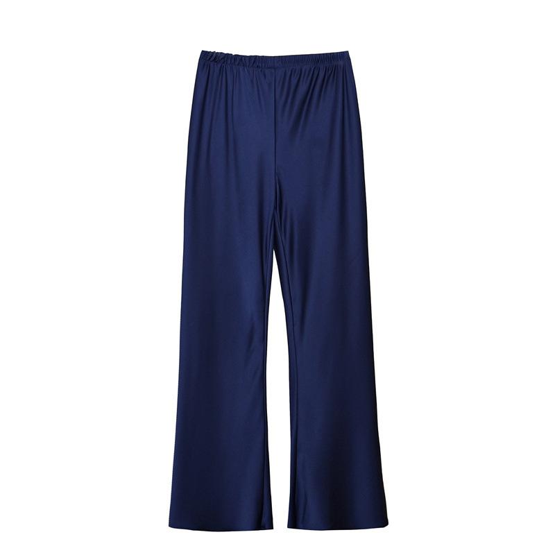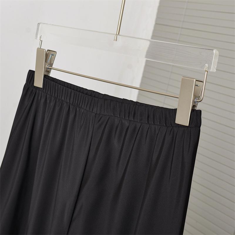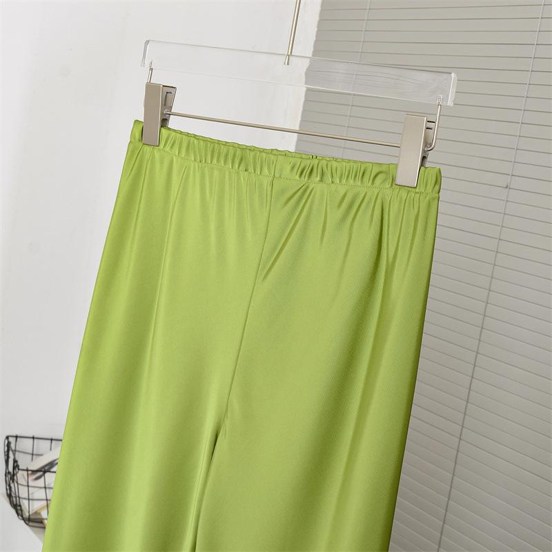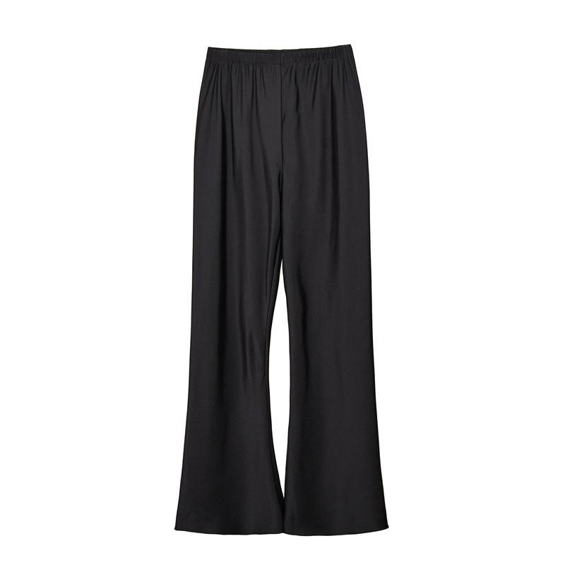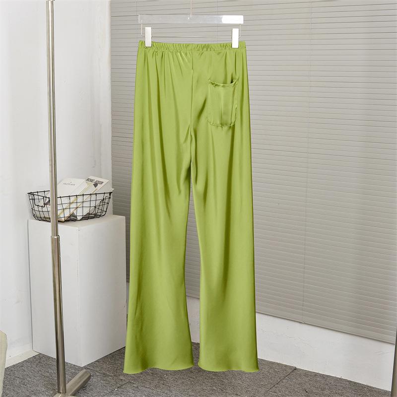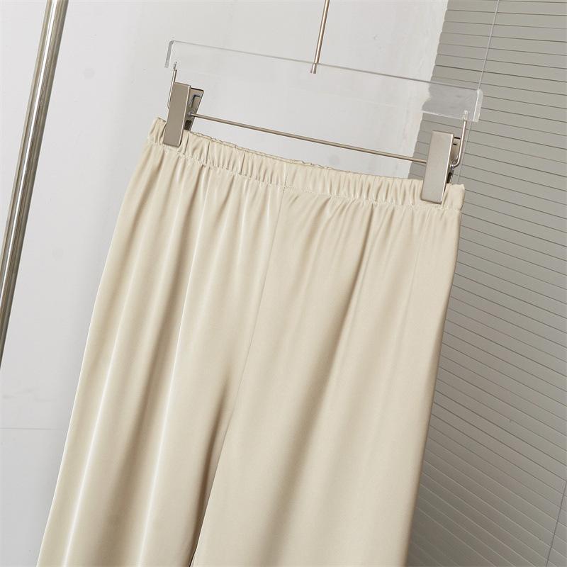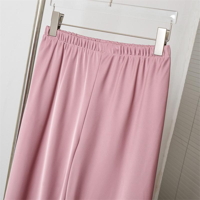 Pantalones anchos drapeados de satén de acetato cortados al bies 2025 Verano Nuevo Cintura alta elástica Slim Casual Bota