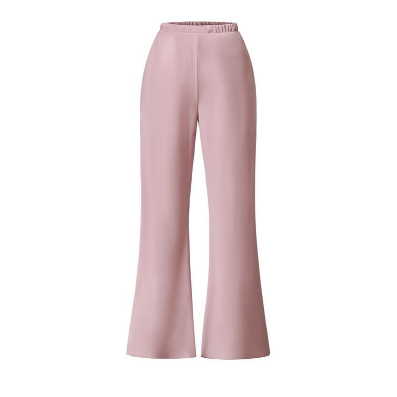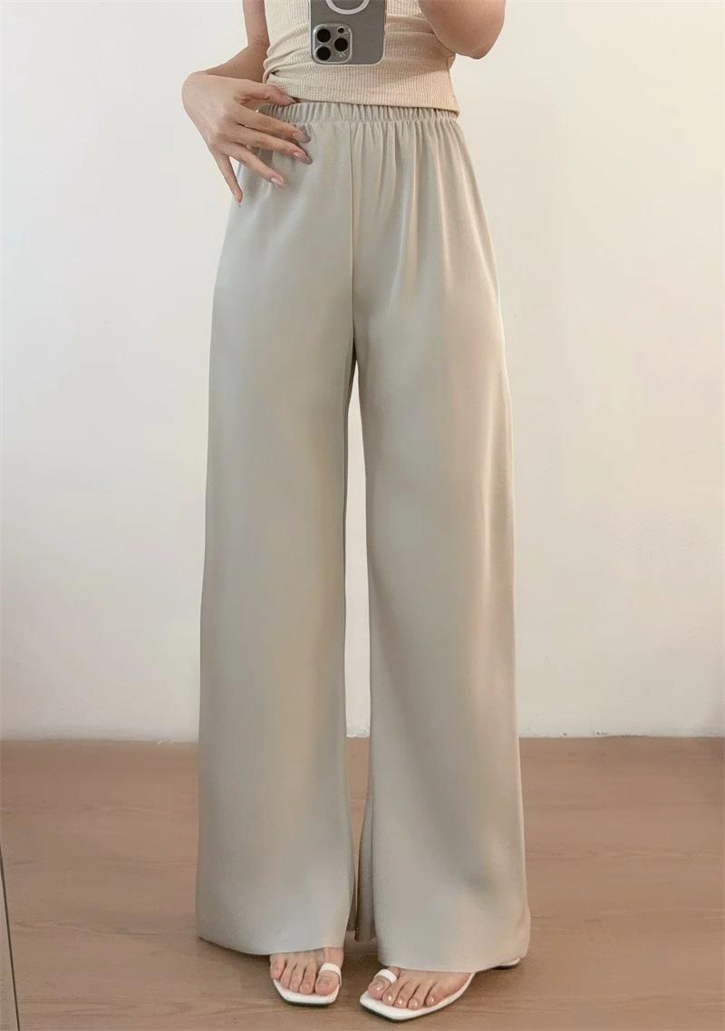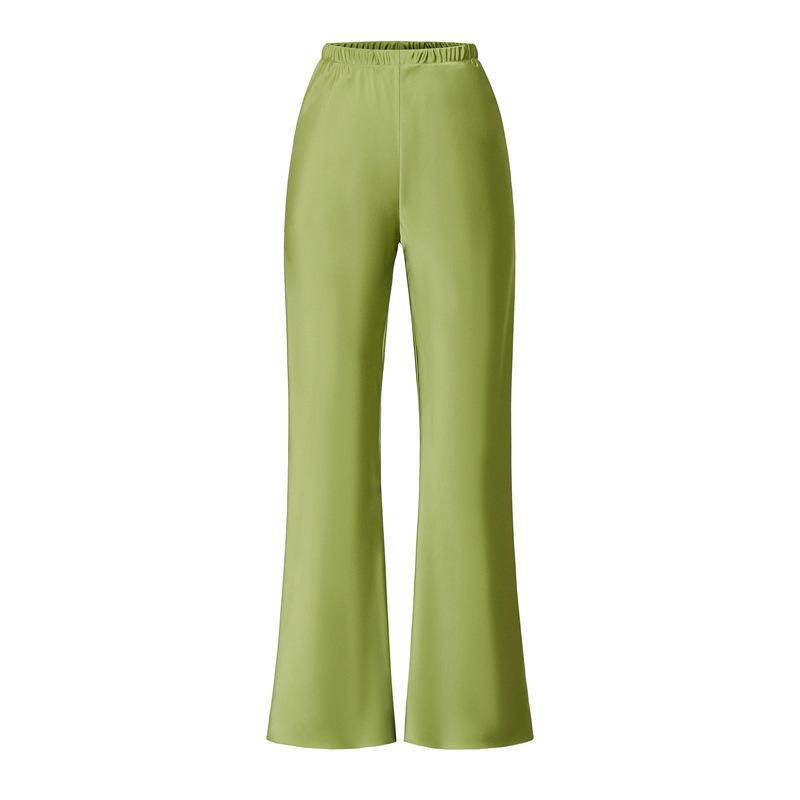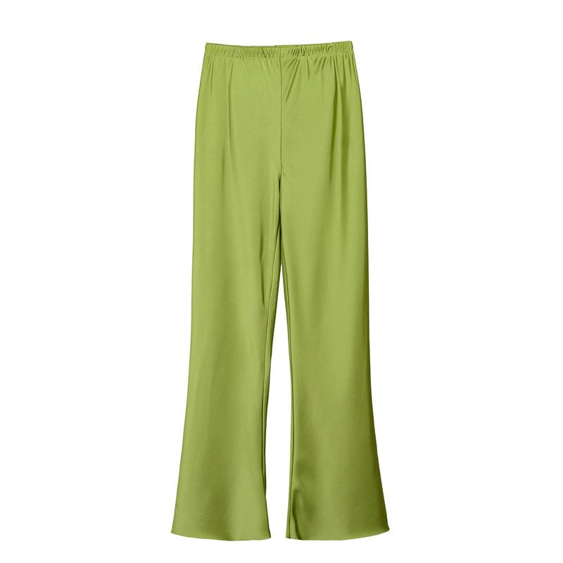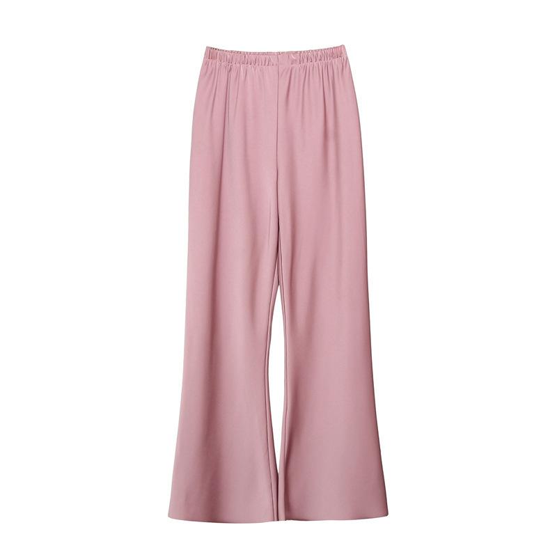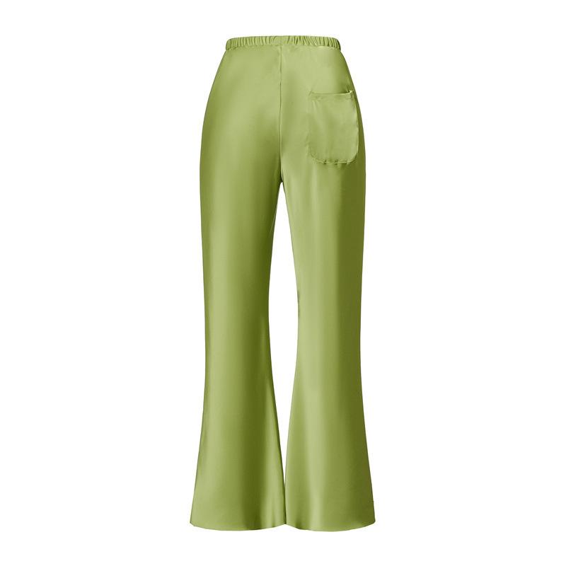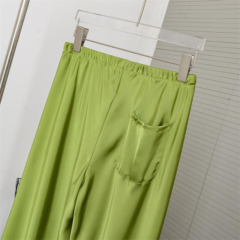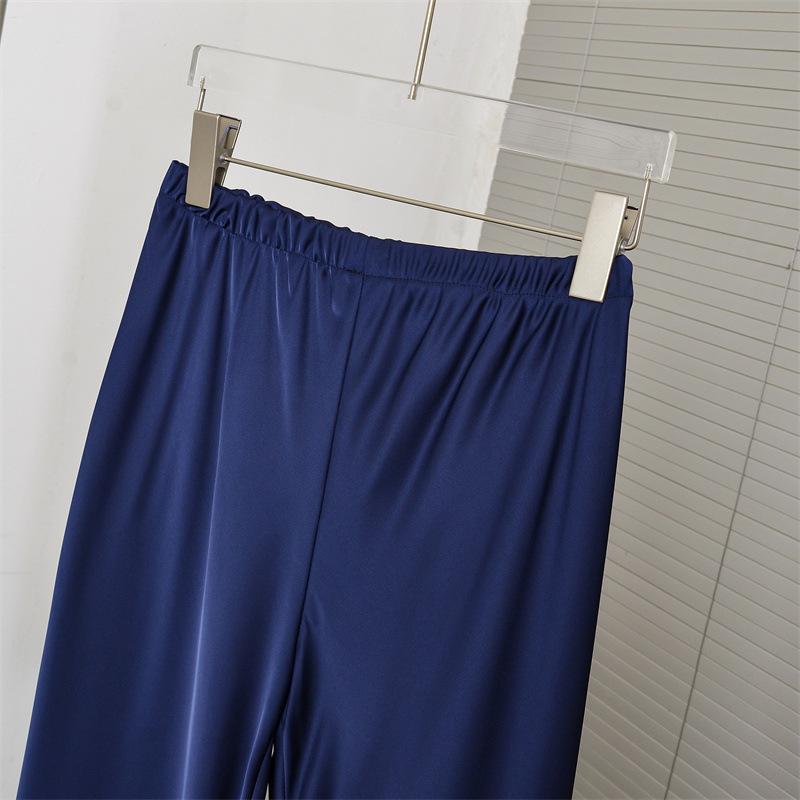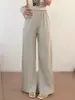 Pantalones anchos drapeados de satén de acetato cortados al bies 2025 Verano Nuevo Cintura alta elástica Slim Casual Bota