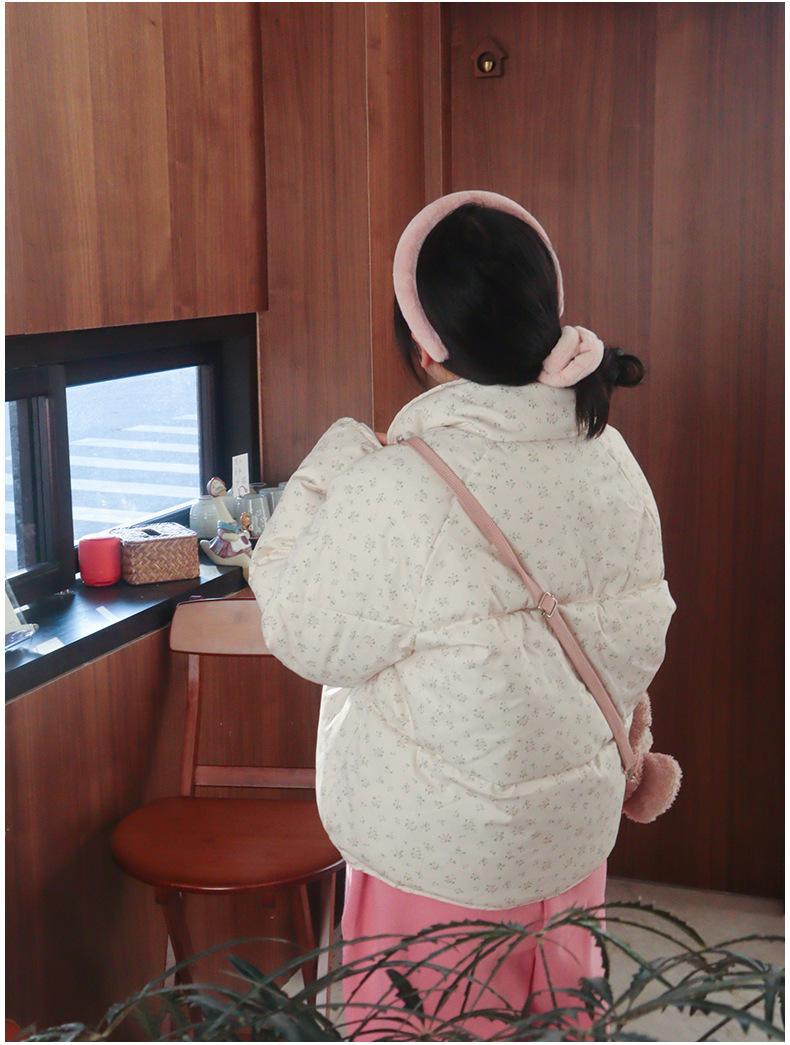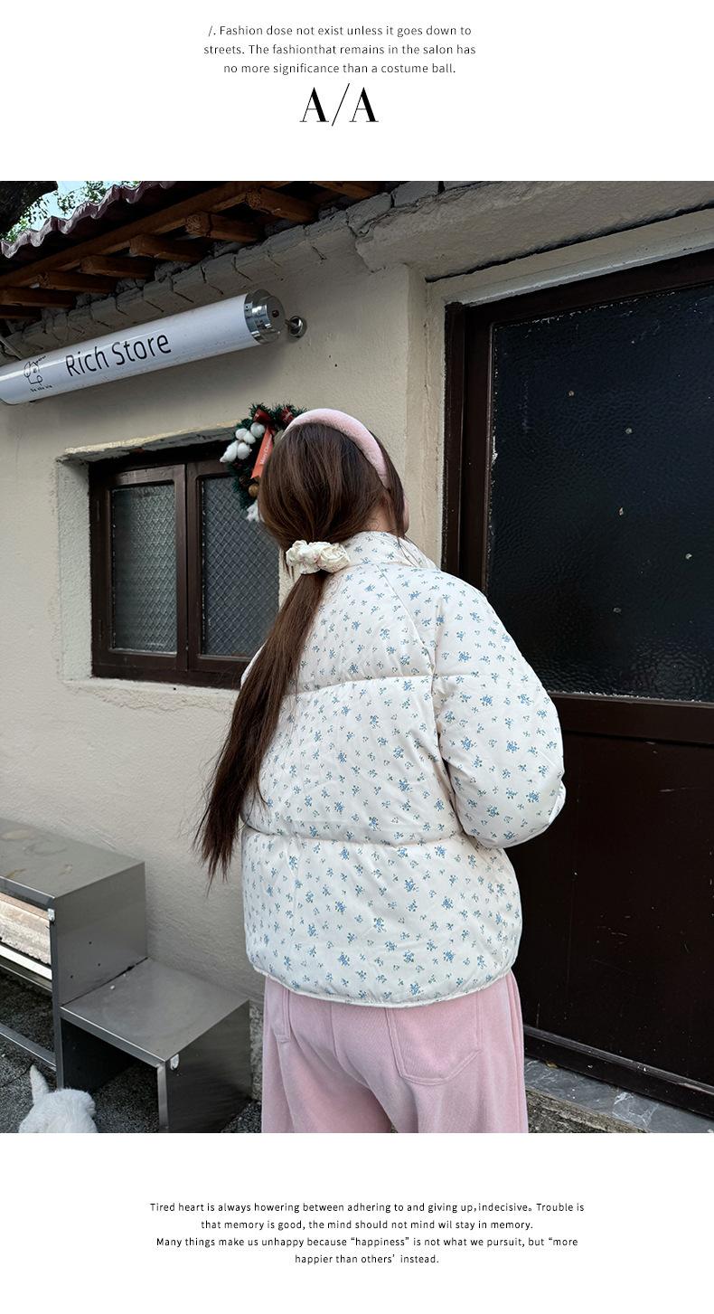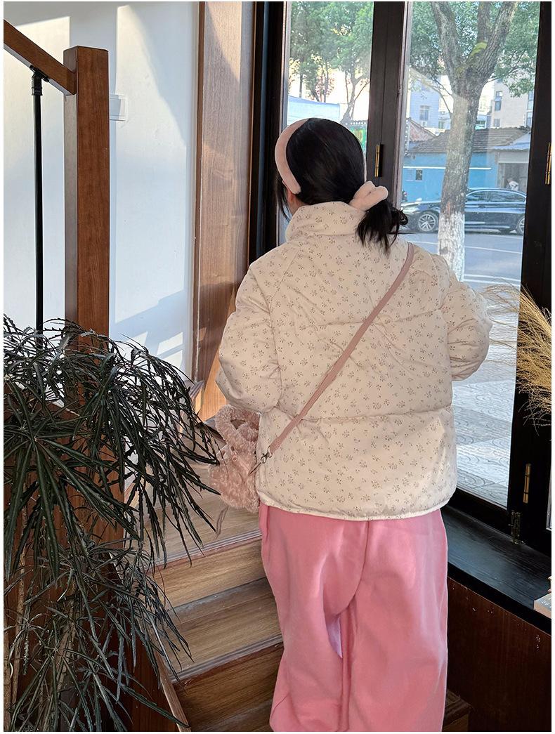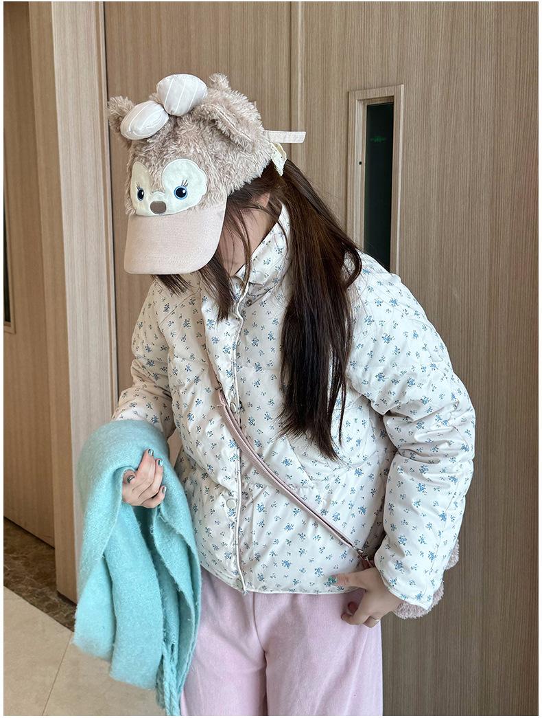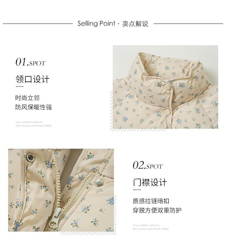 2025 Nueva Chaqueta Corta de Algodón Acolchado con Estampado Floral Invierno Nuevo Pequeño Fresco Dulce Cuello Alto Engrosado Chaqueta Acolchada Abrigo
