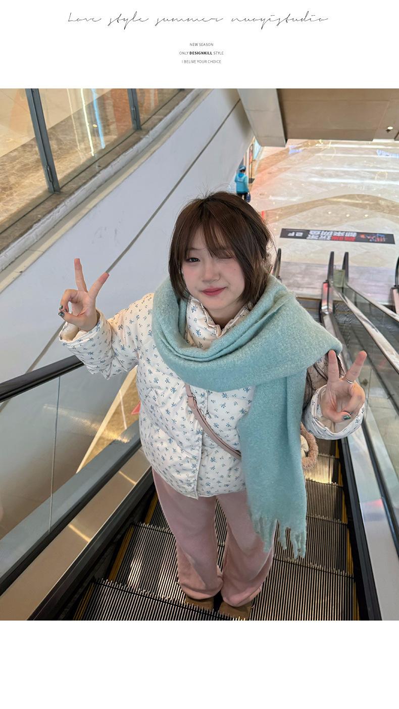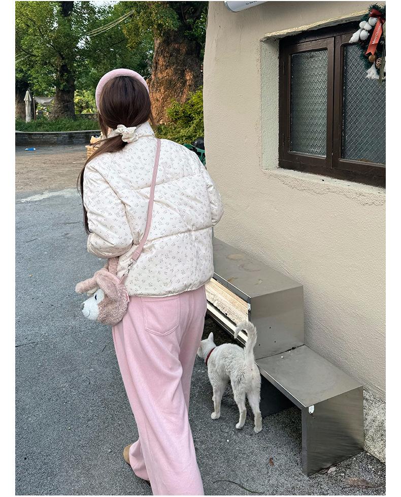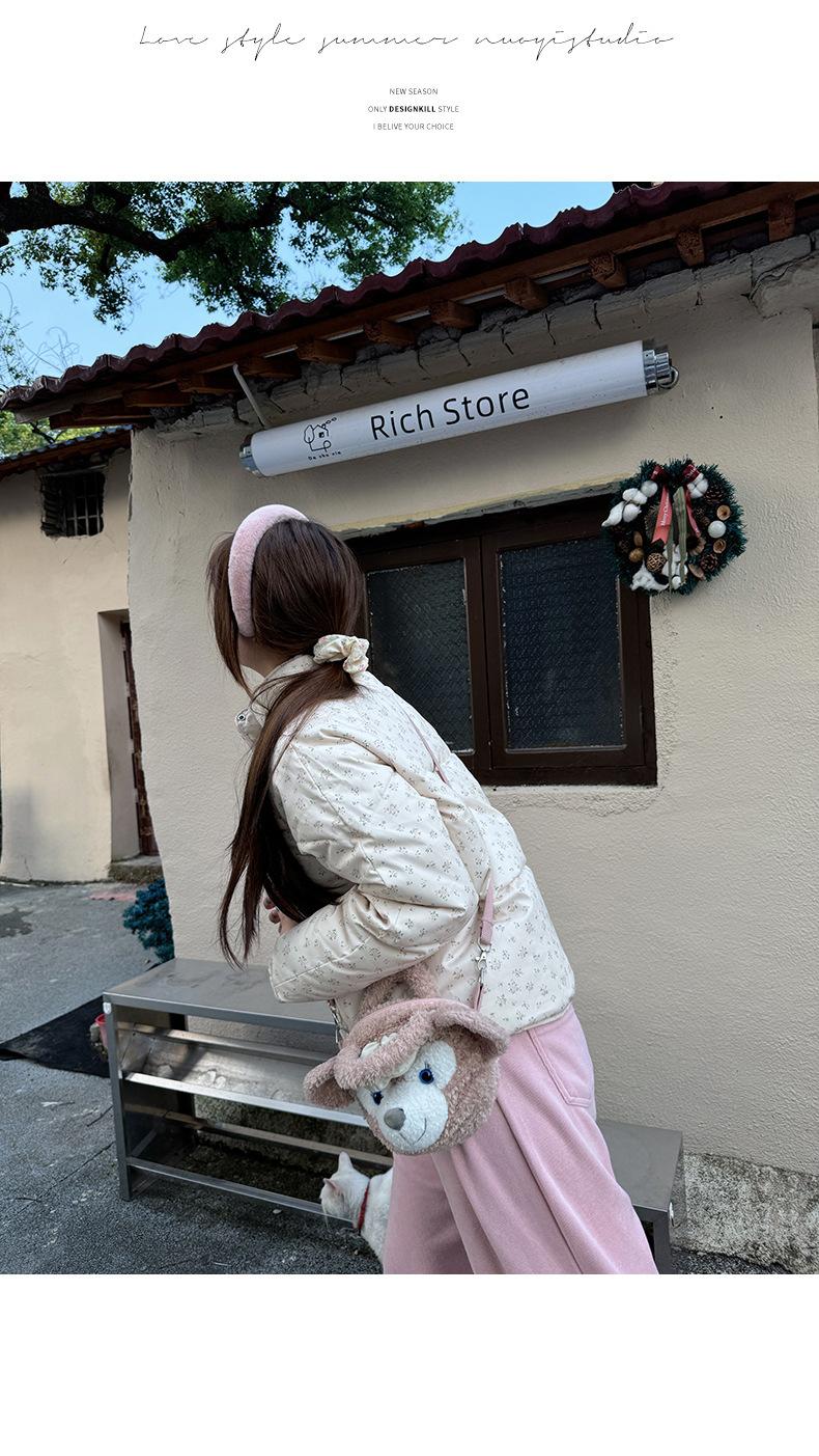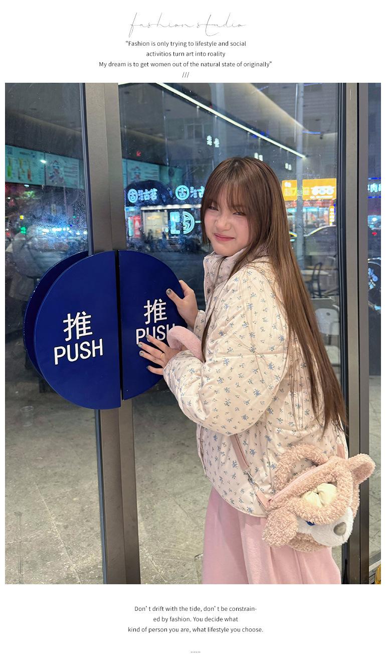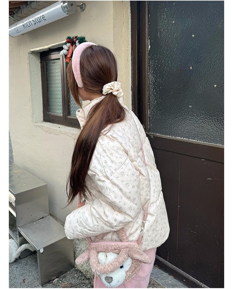 2025 Nueva Chaqueta Corta de Algodón Acolchado con Estampado Floral Invierno Nuevo Pequeño Fresco Dulce Cuello Alto Engrosado Chaqueta Acolchada Abrigo