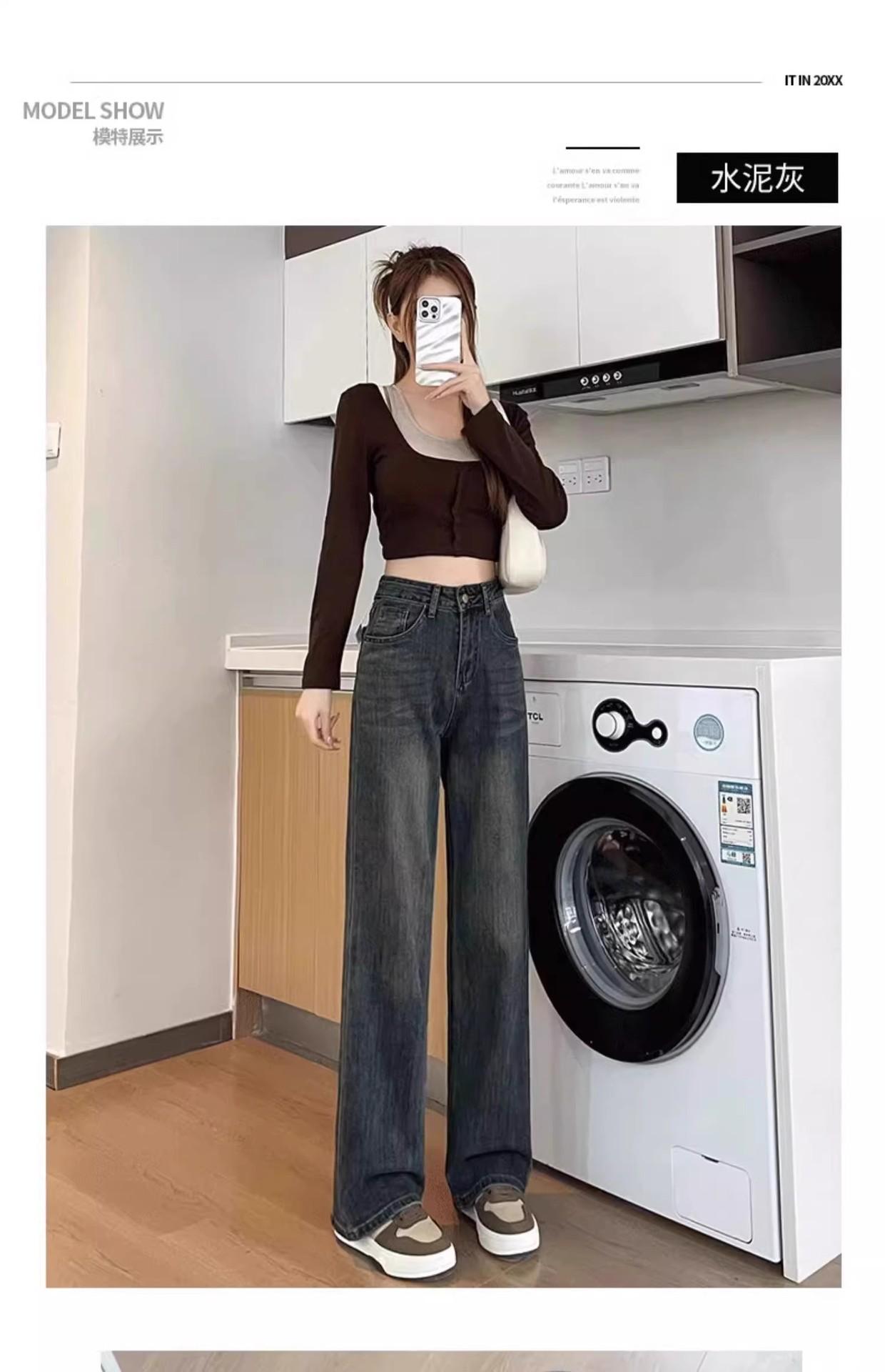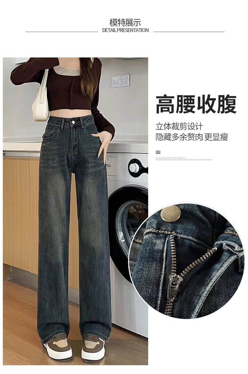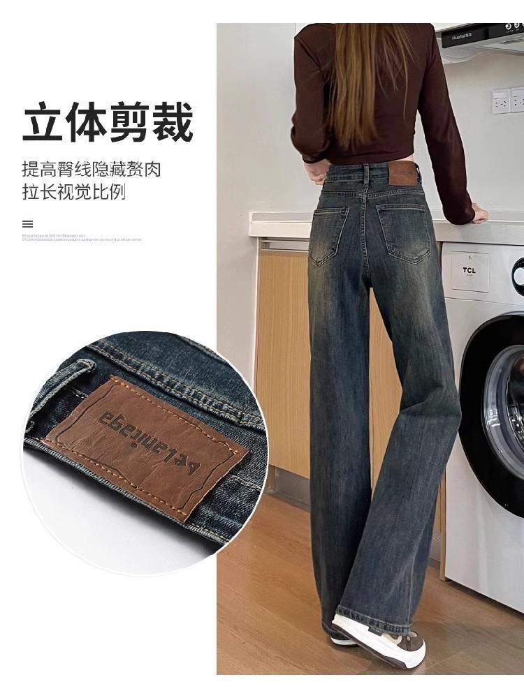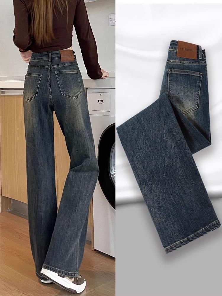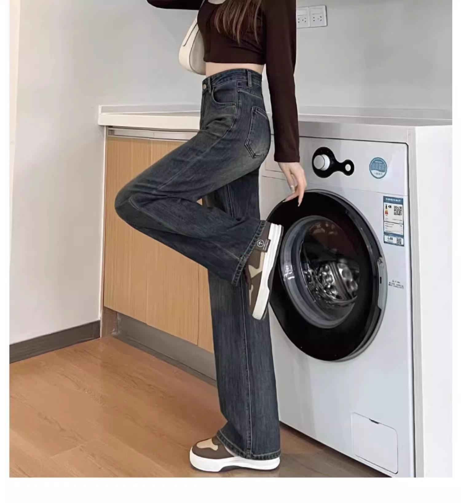 Jeans rectos de cintura alta para mujer 2025 primavera y otoño nuevos adelgazantes de cintura alta petite retro pantalones de pierna ancha algodón