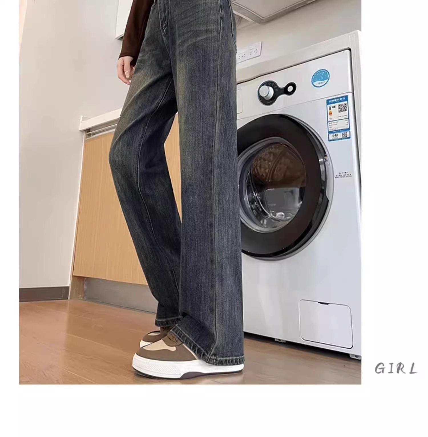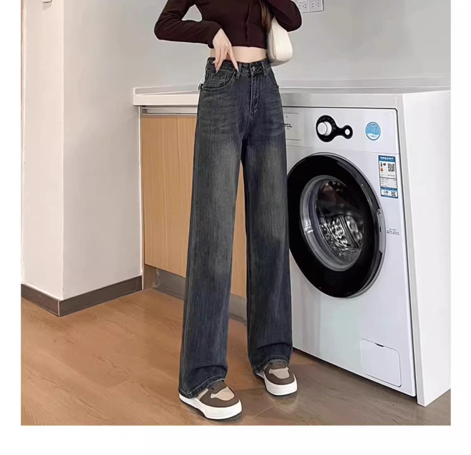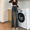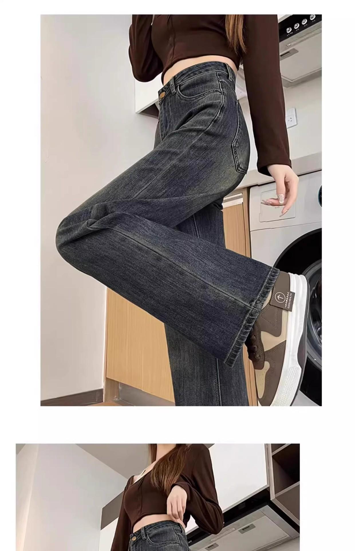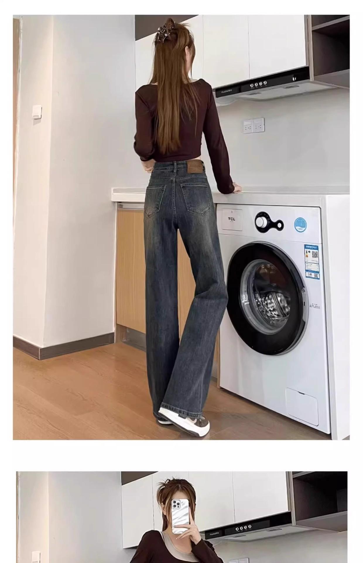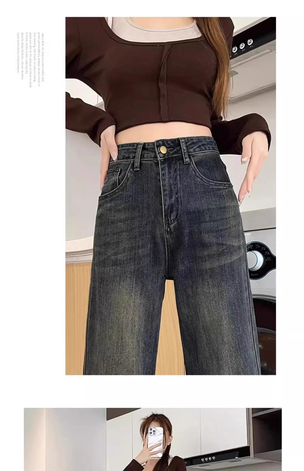 Jeans rectos de cintura alta para mujer 2025 primavera y otoño nuevos adelgazantes de cintura alta petite retro pantalones de pierna ancha algodón