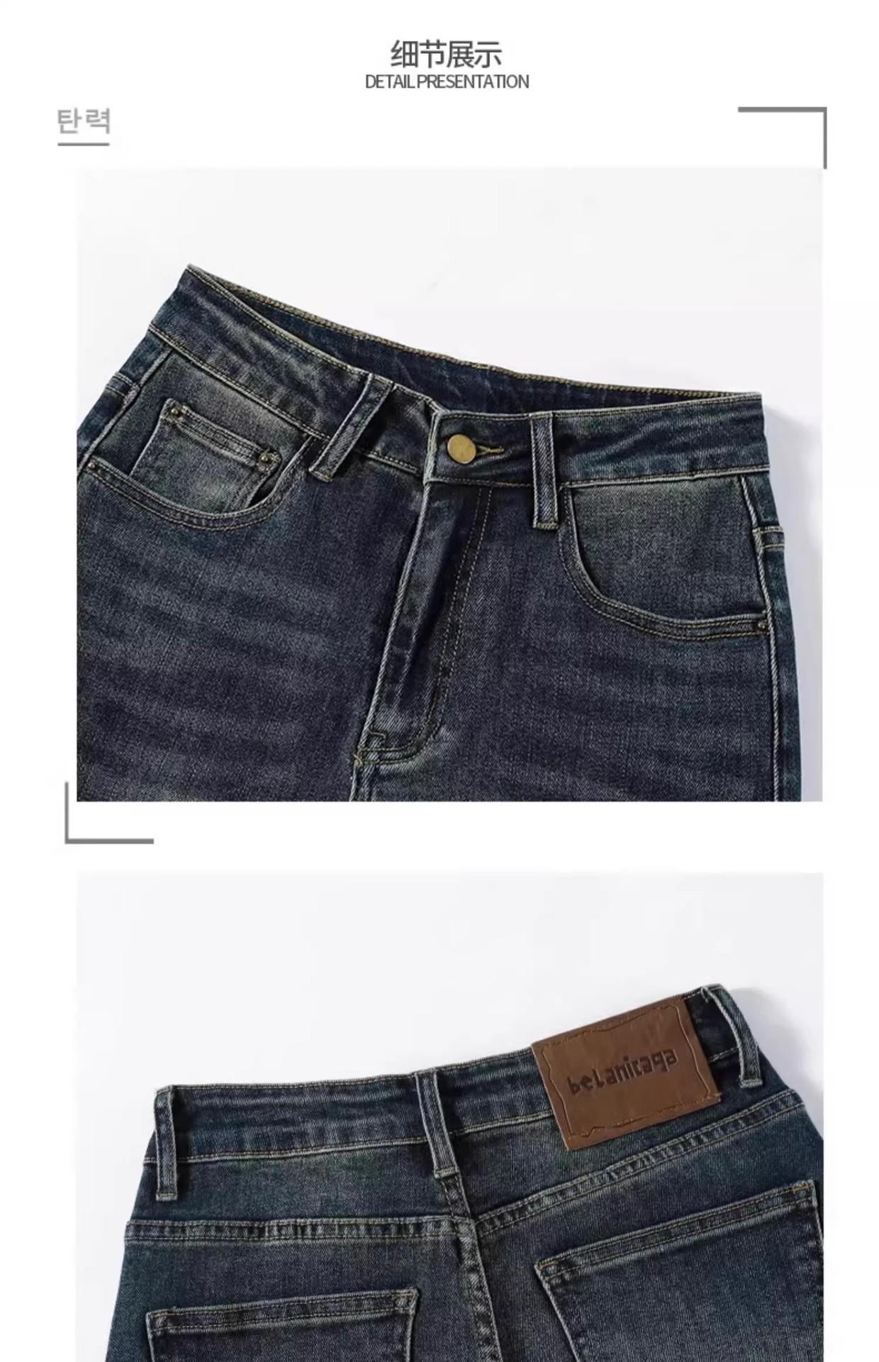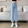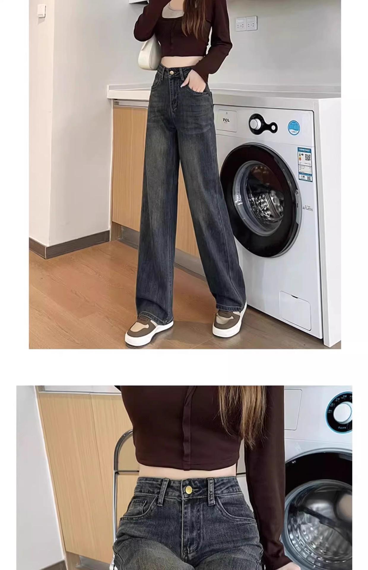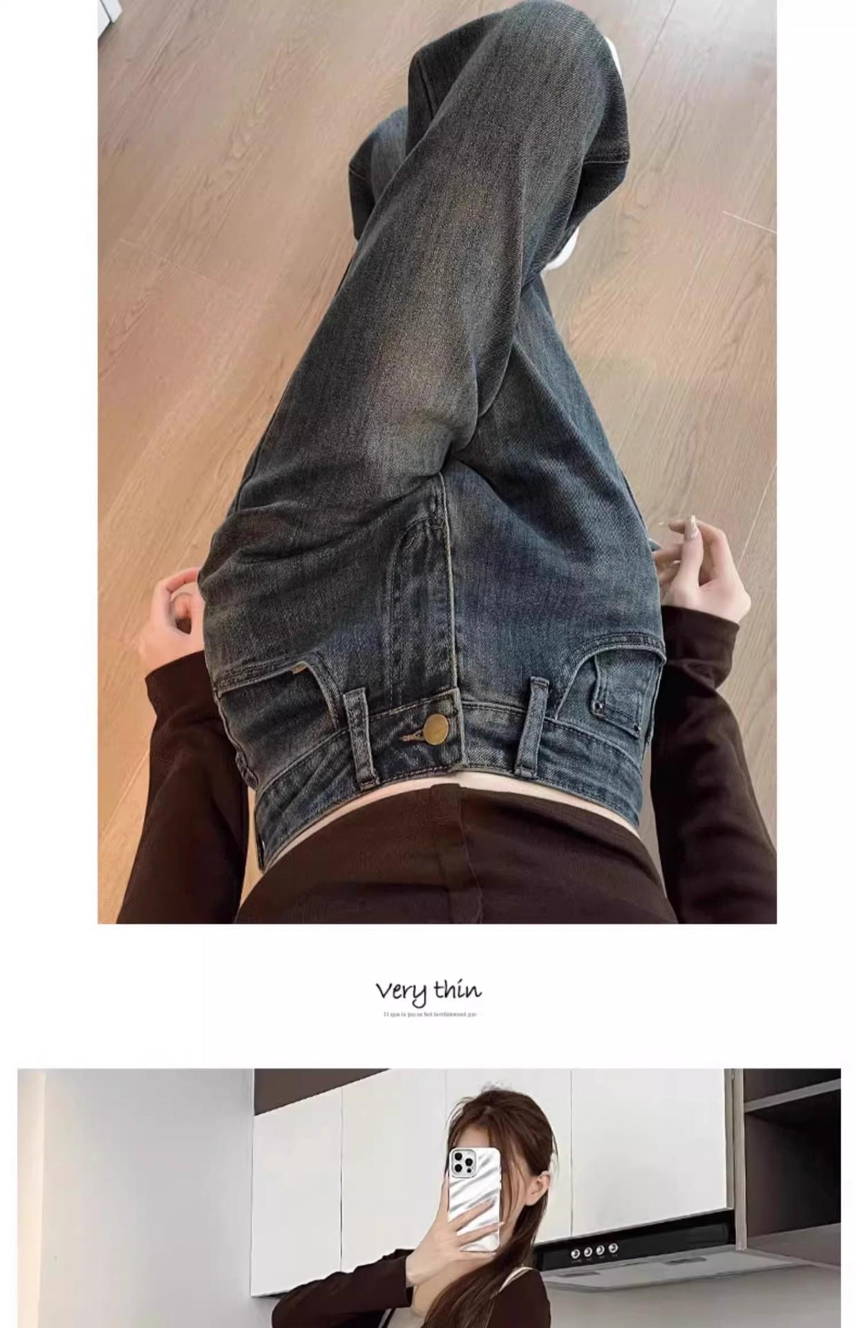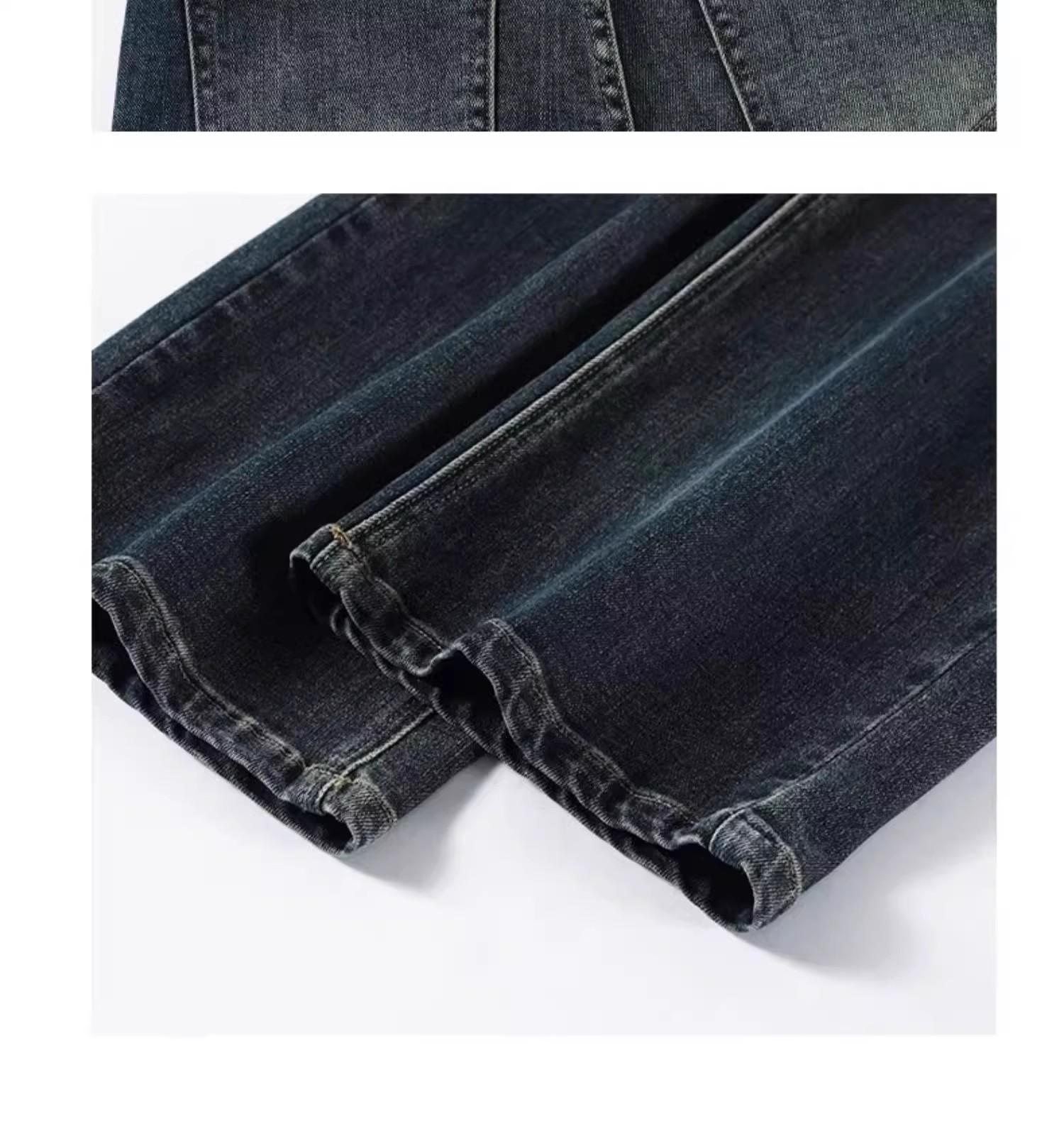 Jeans rectos de cintura alta para mujer 2025 primavera y otoño nuevos adelgazantes de cintura alta petite retro pantalones de pierna ancha algodón