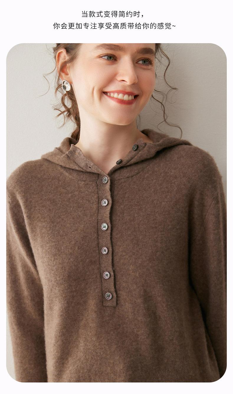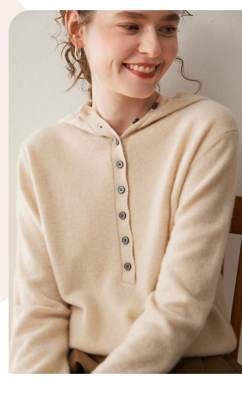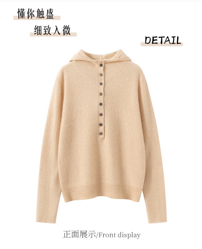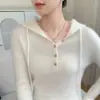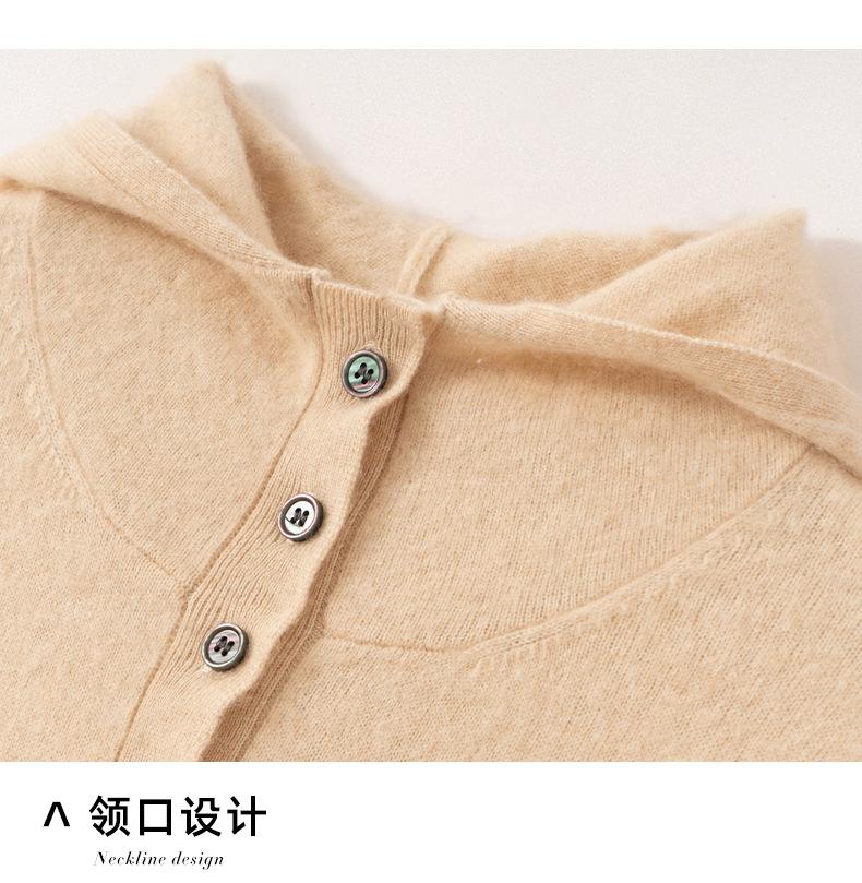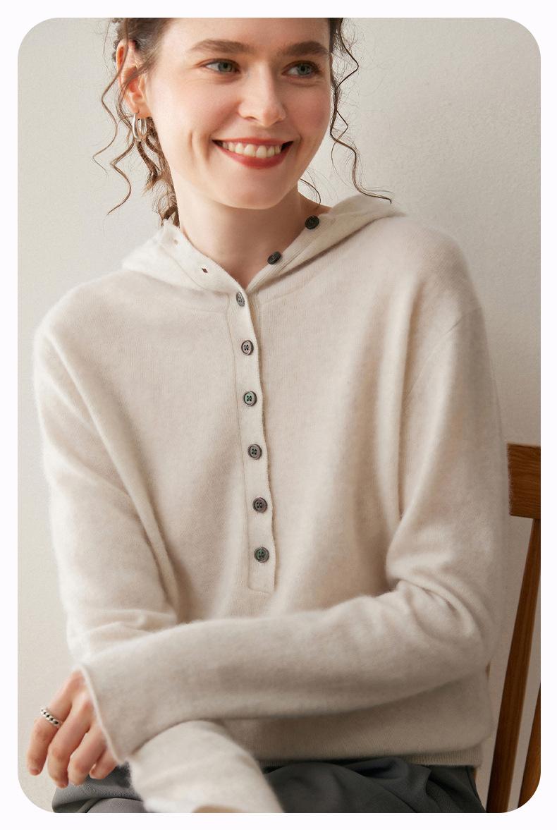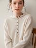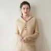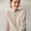 2025 Otoño/Invierno Nuevo Tejido de Punto con Capucha de Cachemira Manga Larga para Mujer Botón Color Sólido Suéter Casual Holgado Base Sudadera con Capucha