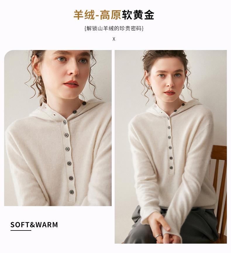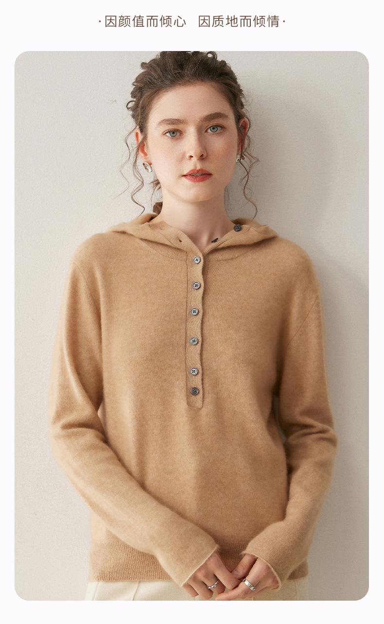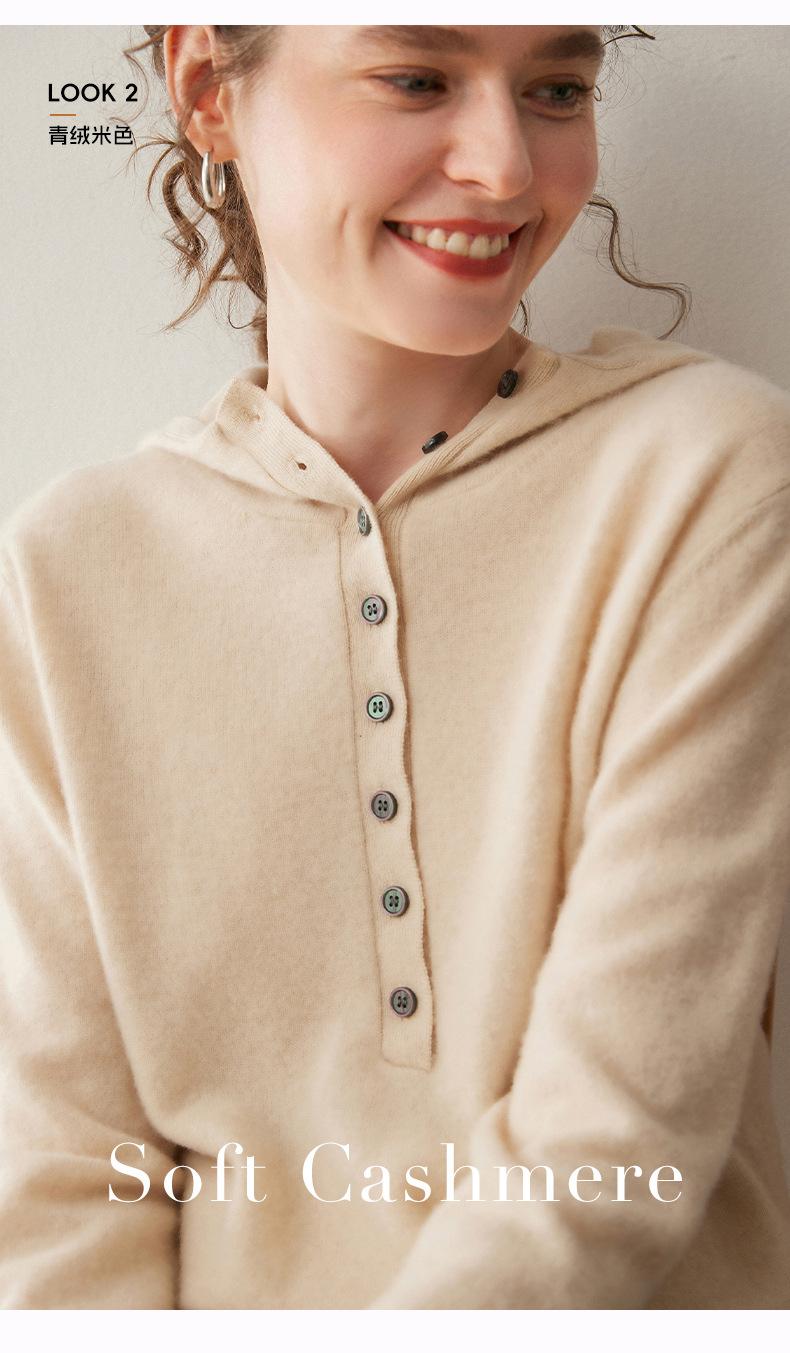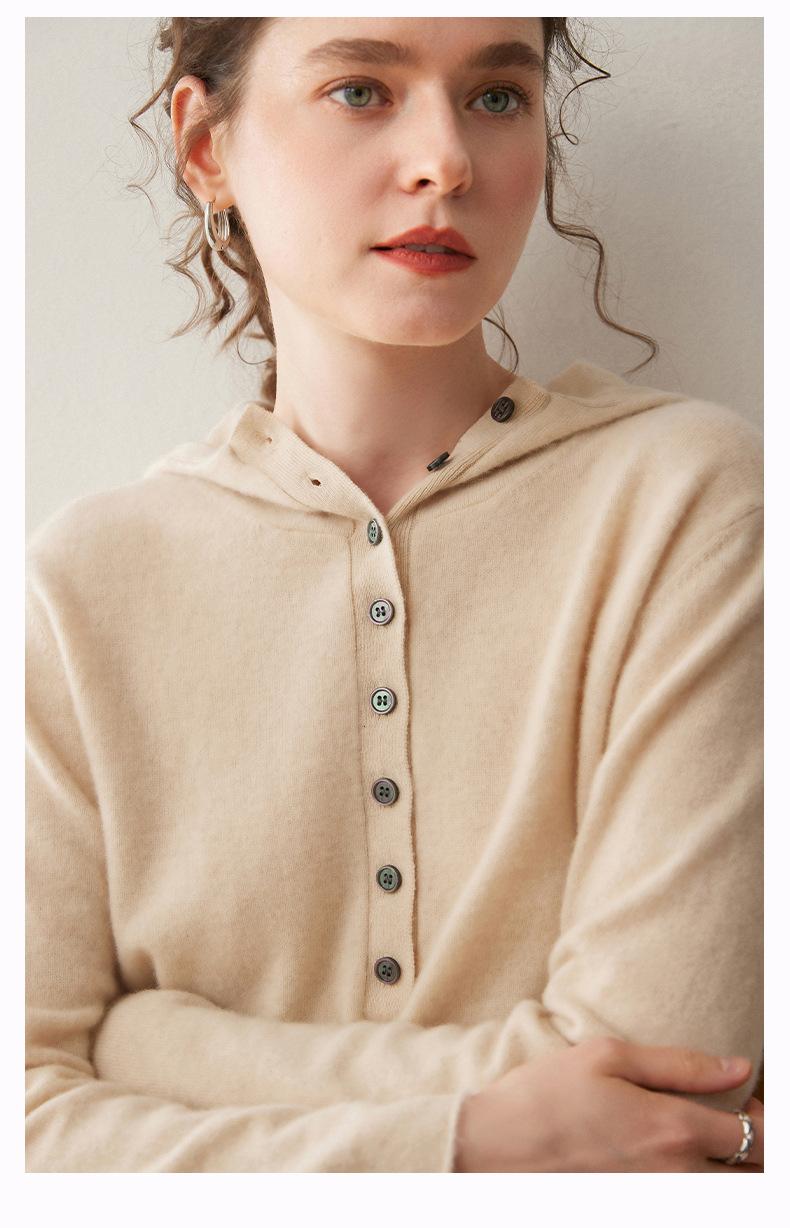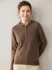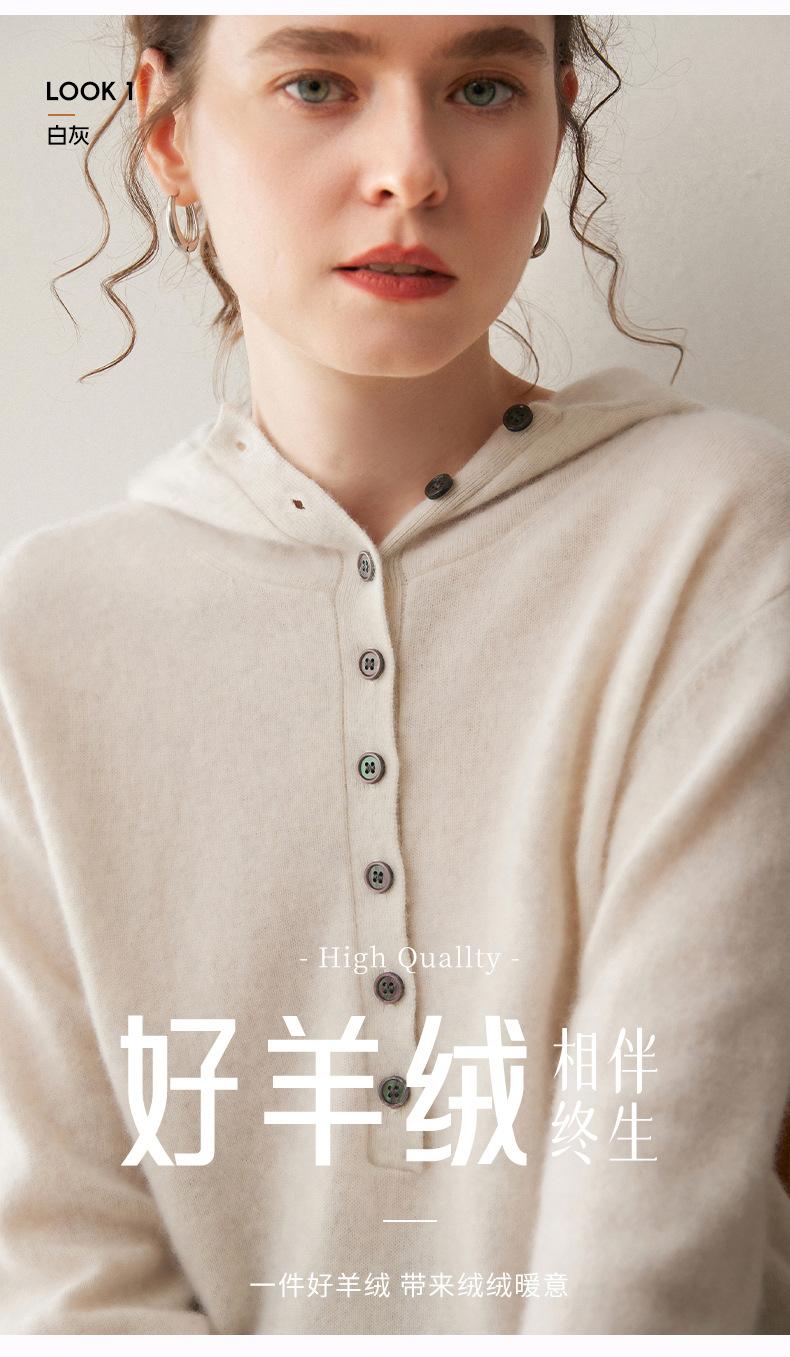 2025 Otoño/Invierno Nuevo Tejido de Punto con Capucha de Cachemira Manga Larga para Mujer Botón Color Sólido Suéter Casual Holgado Base Sudadera con Capucha