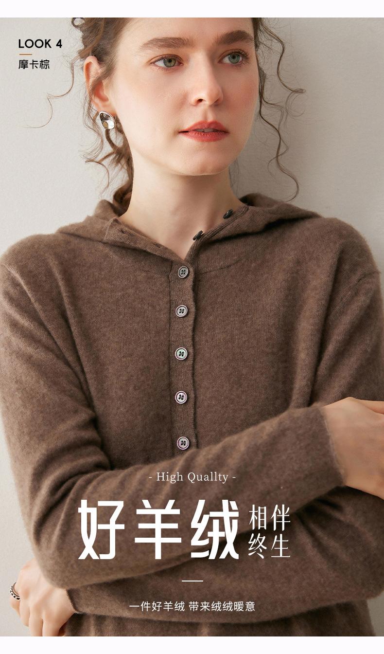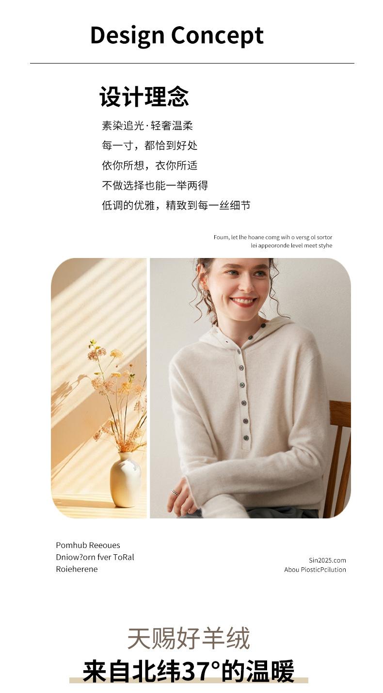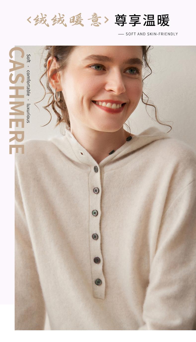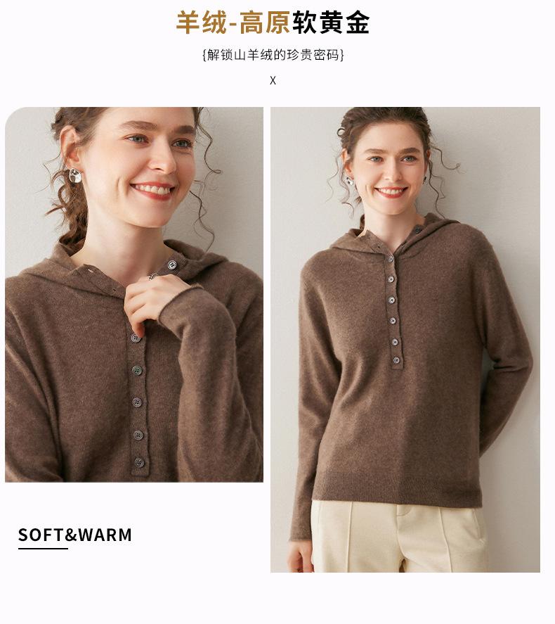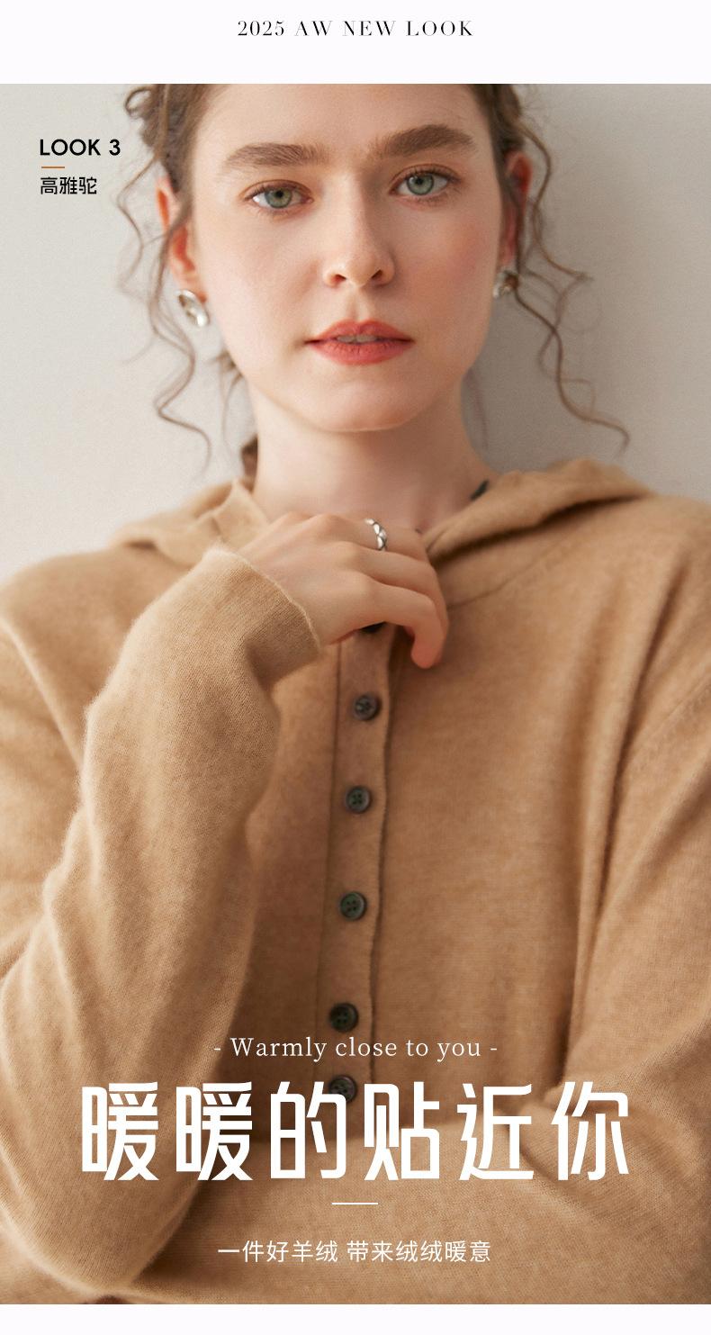2025 Otoño/Invierno Nuevo Tejido de Punto con Capucha de Cachemira Manga Larga para Mujer Botón Color Sólido Suéter Casual Holgado Base Sudadera con Capucha