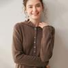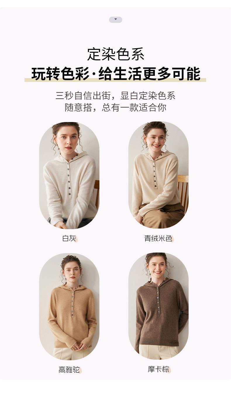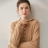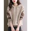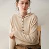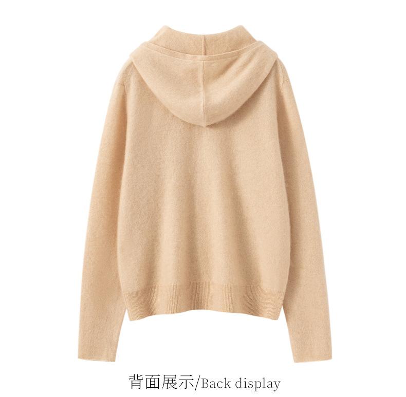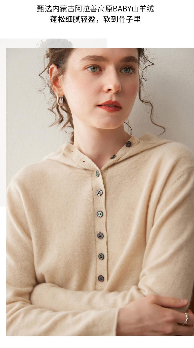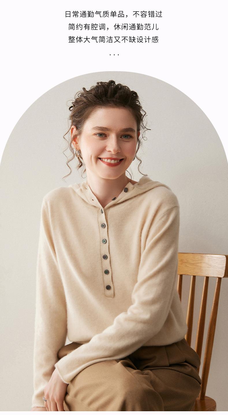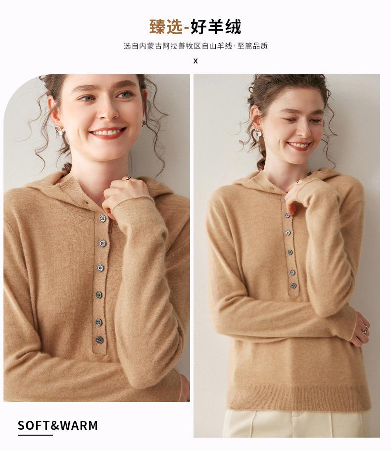 2025 Otoño/Invierno Nuevo Tejido de Punto con Capucha de Cachemira Manga Larga para Mujer Botón Color Sólido Suéter Casual Holgado Base Sudadera con Capucha