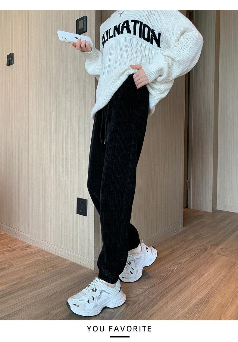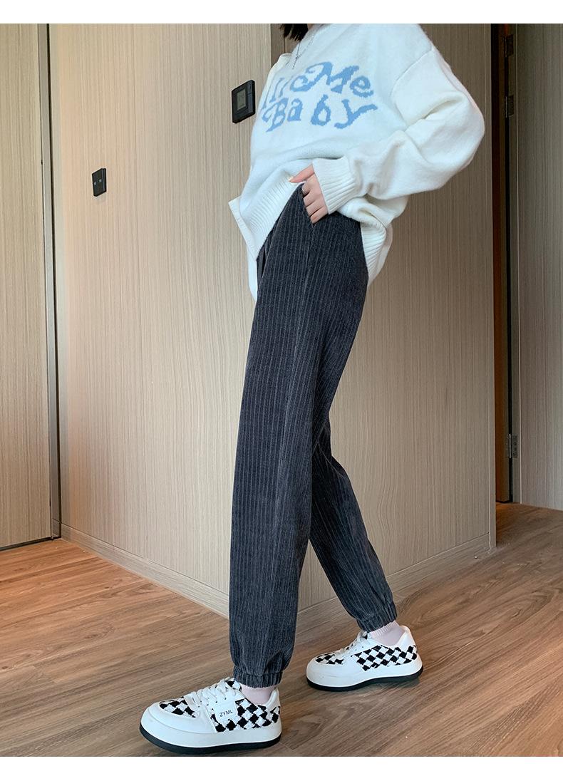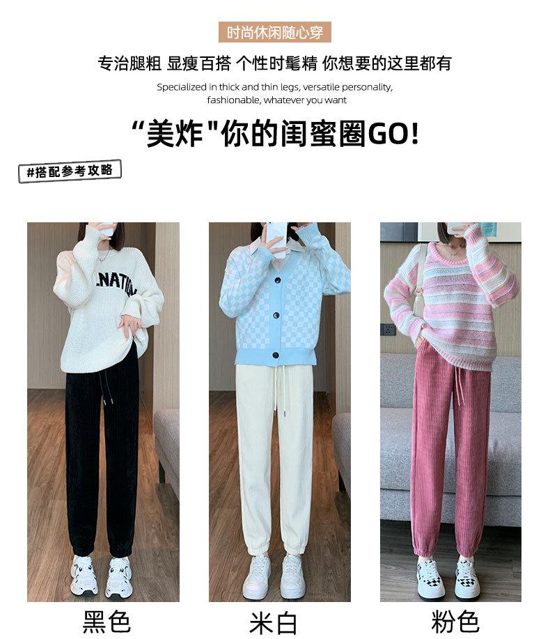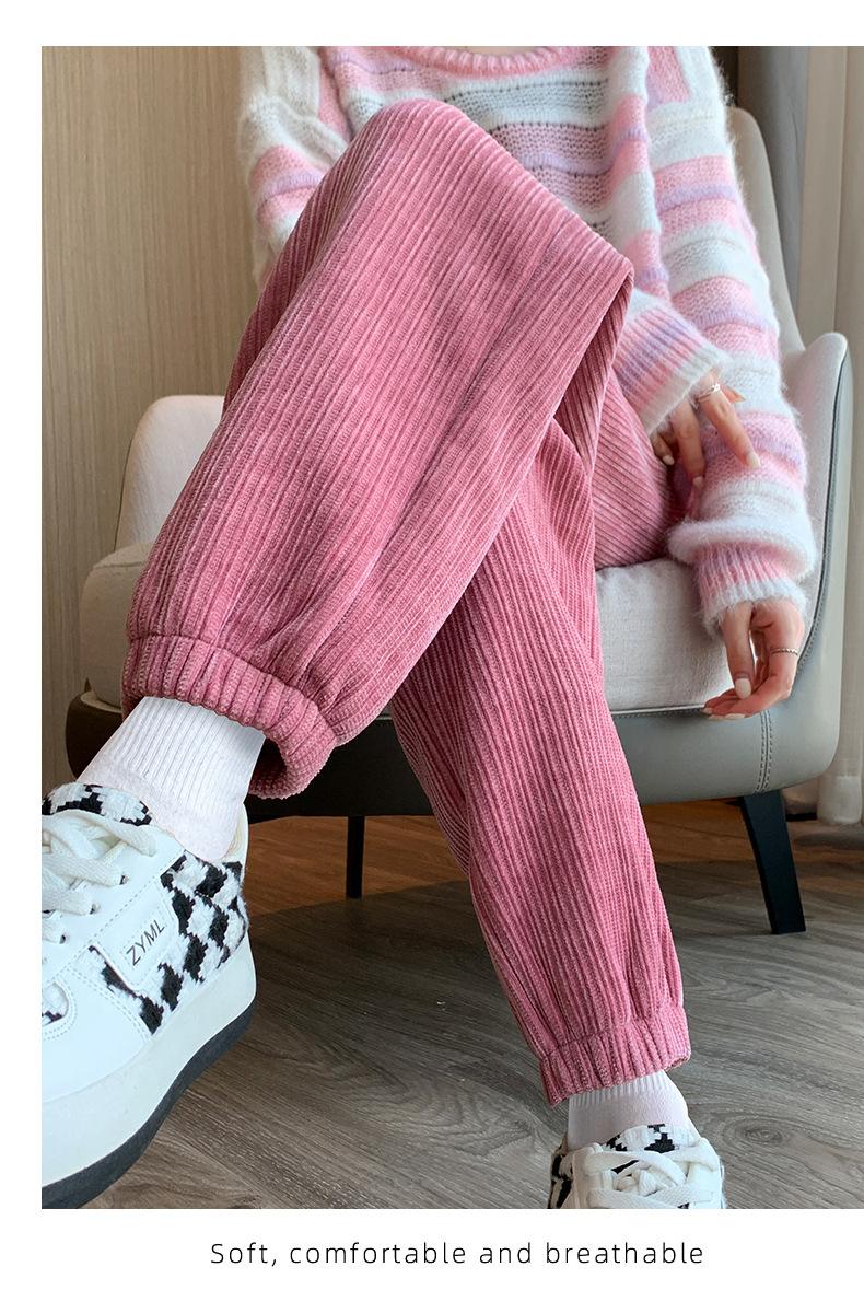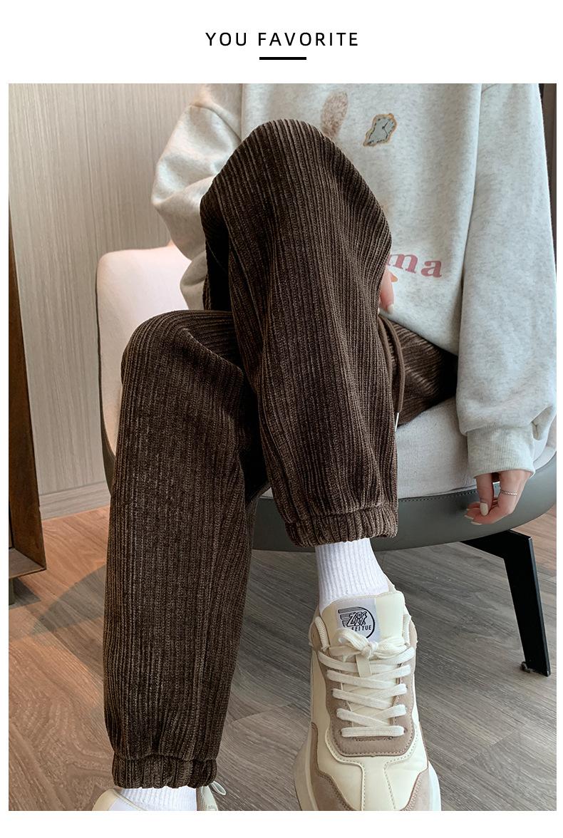 Pantalones deportivos de pana para mujer otoño y primavera más terciopelo 2025 nuevos holgados casual petite engrosados con puño