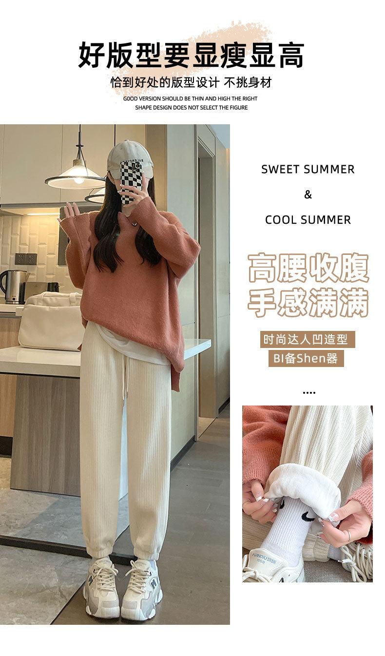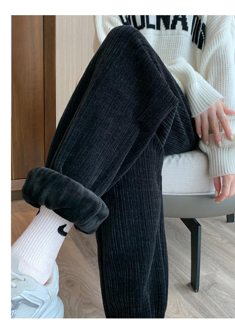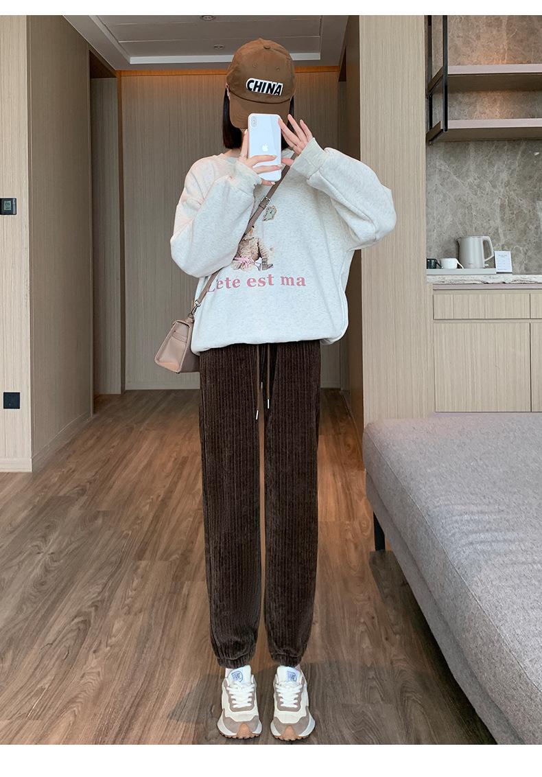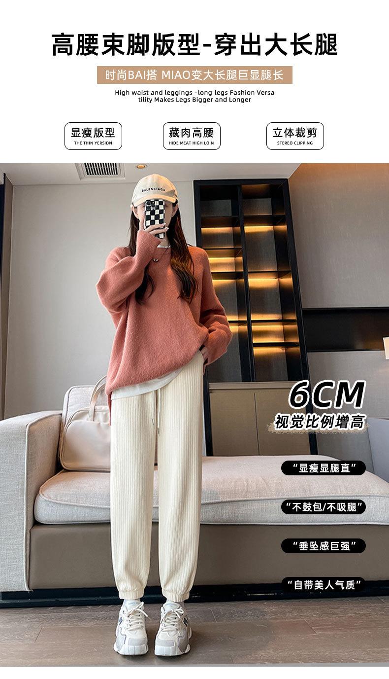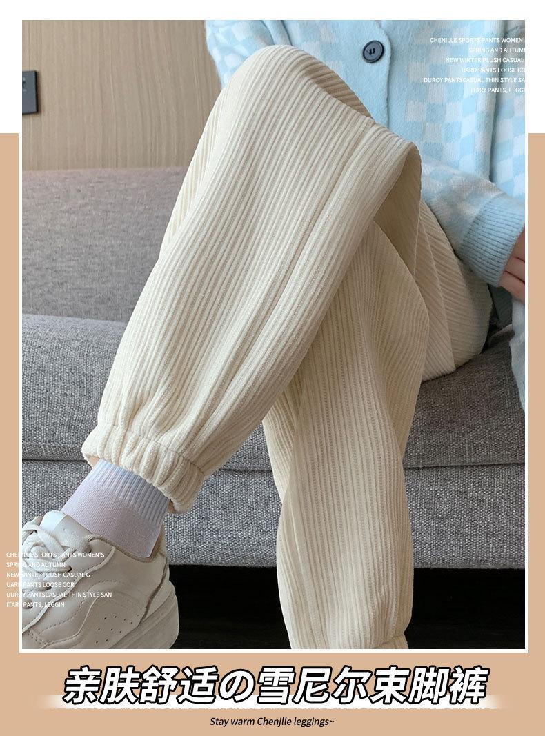 Pantalones deportivos de pana para mujer otoño y primavera más terciopelo 2025 nuevos holgados casual petite engrosados con puño