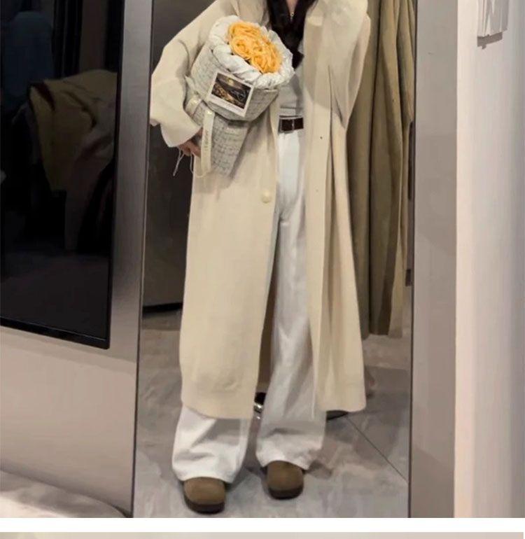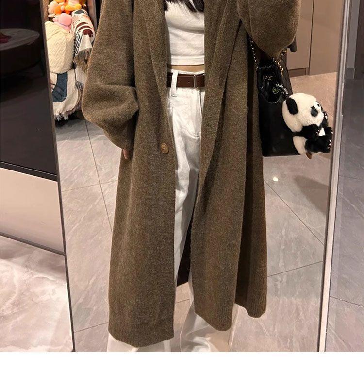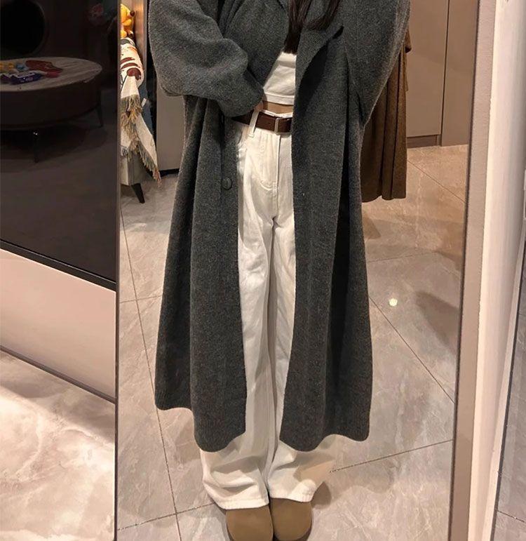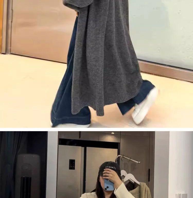 Cárdigan de punto largo hasta el muslo para otoño e invierno, suéter para mujer, estilo holgazán, grueso, nuevo, suelto, abrigo gris oscuro