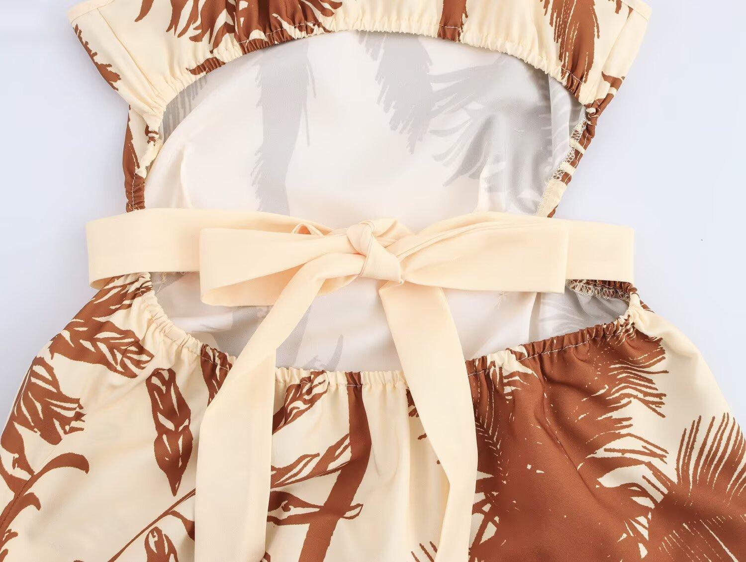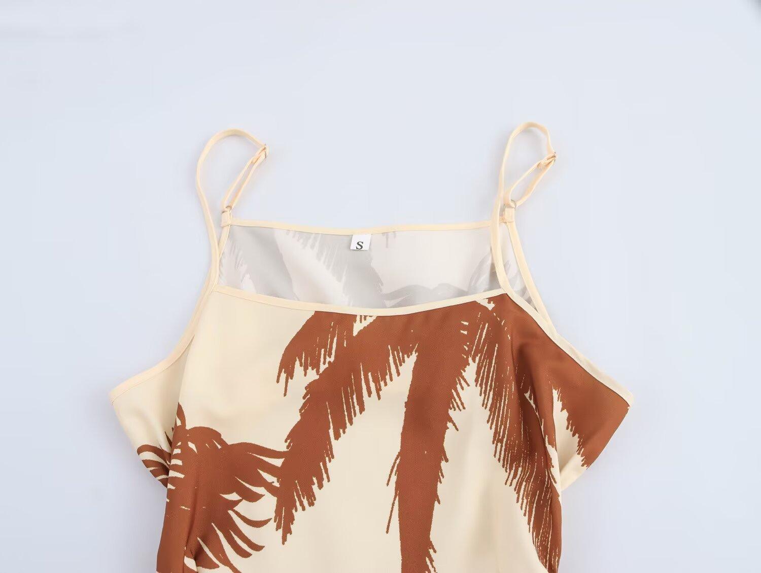Ropa de Mujer Nueva Primavera 2025 Estilo Europeo y Americano Moda Casual Vestido de Tirantes con Estampado de Palmeras