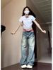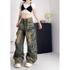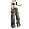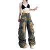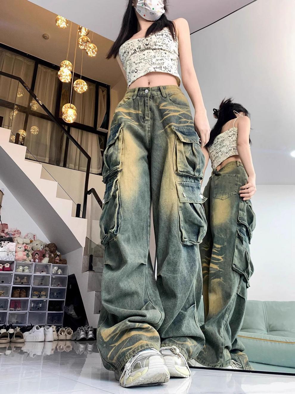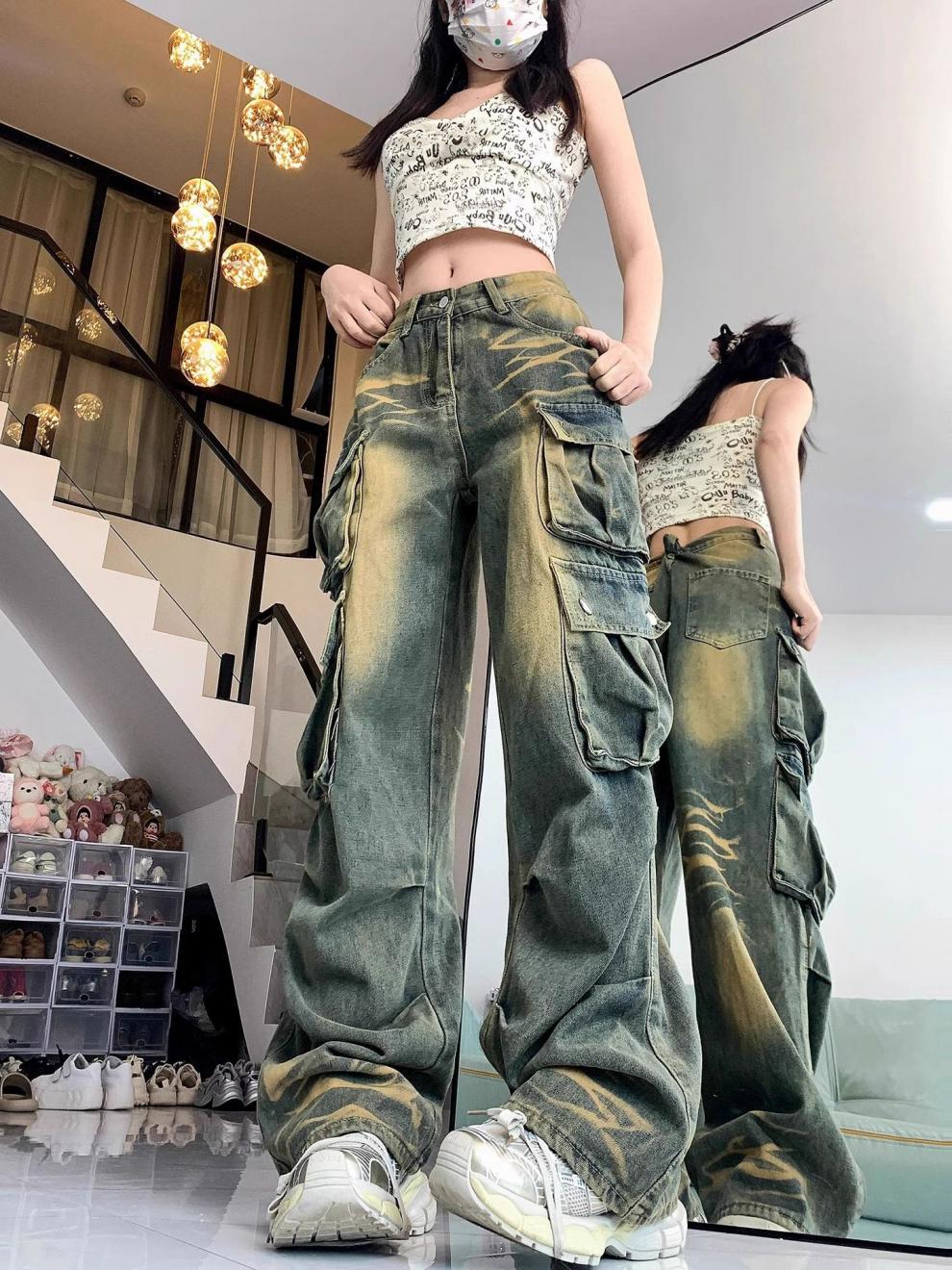 Diseño Multibolsillos Pantalones de Pierna Ancha High Street American Workwear Jeans Mujer Sueltos Modernos Marca Lavados Vintage Pantalones 2024