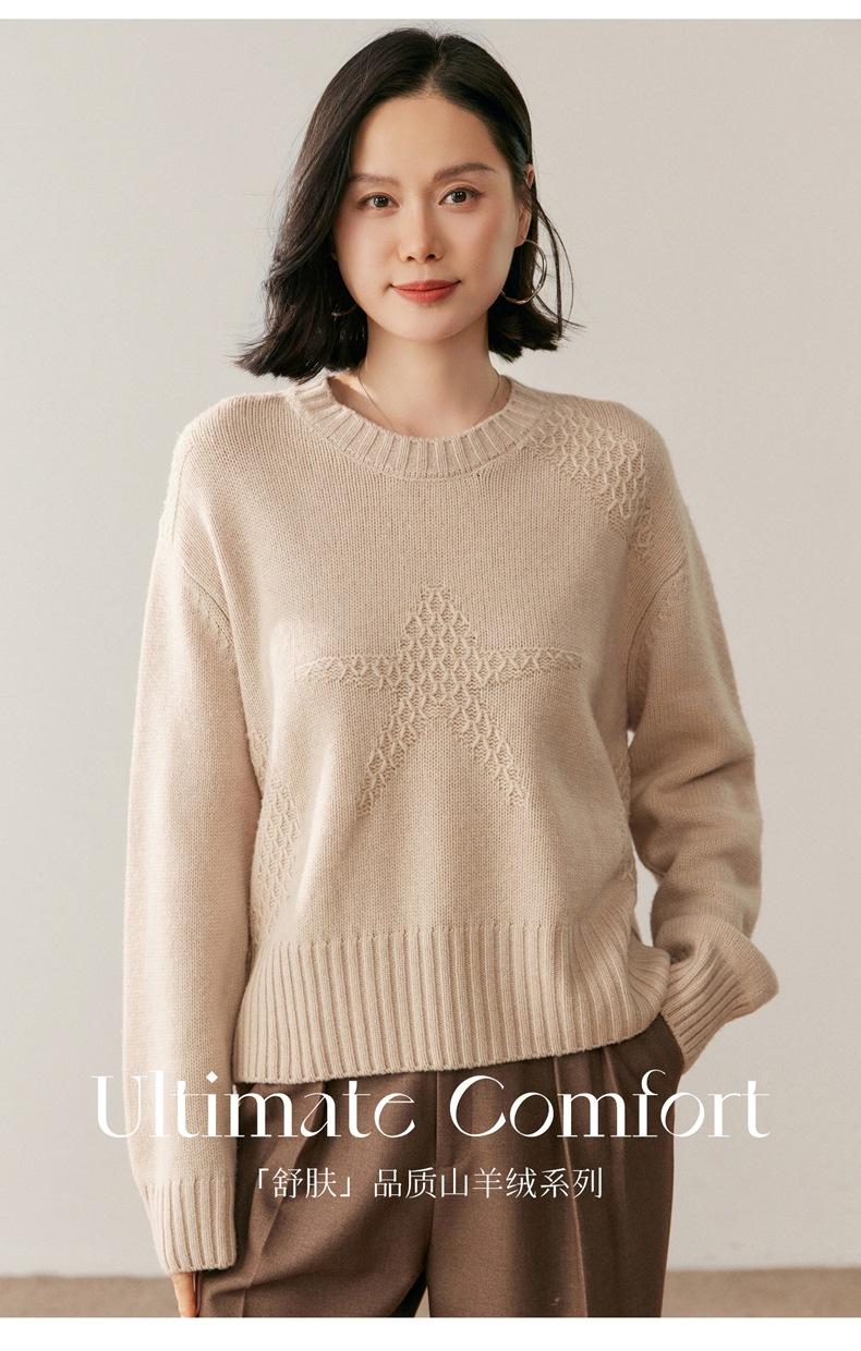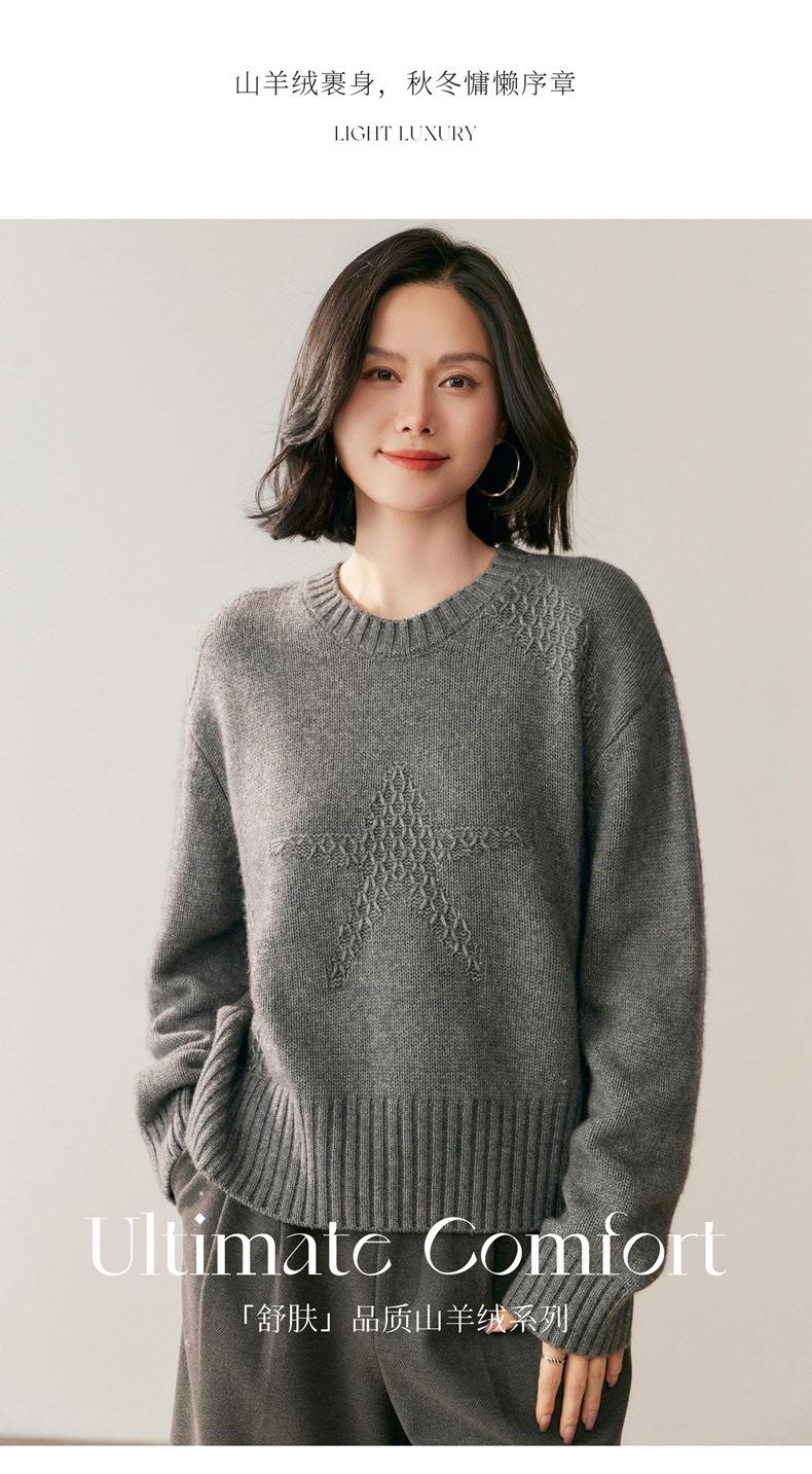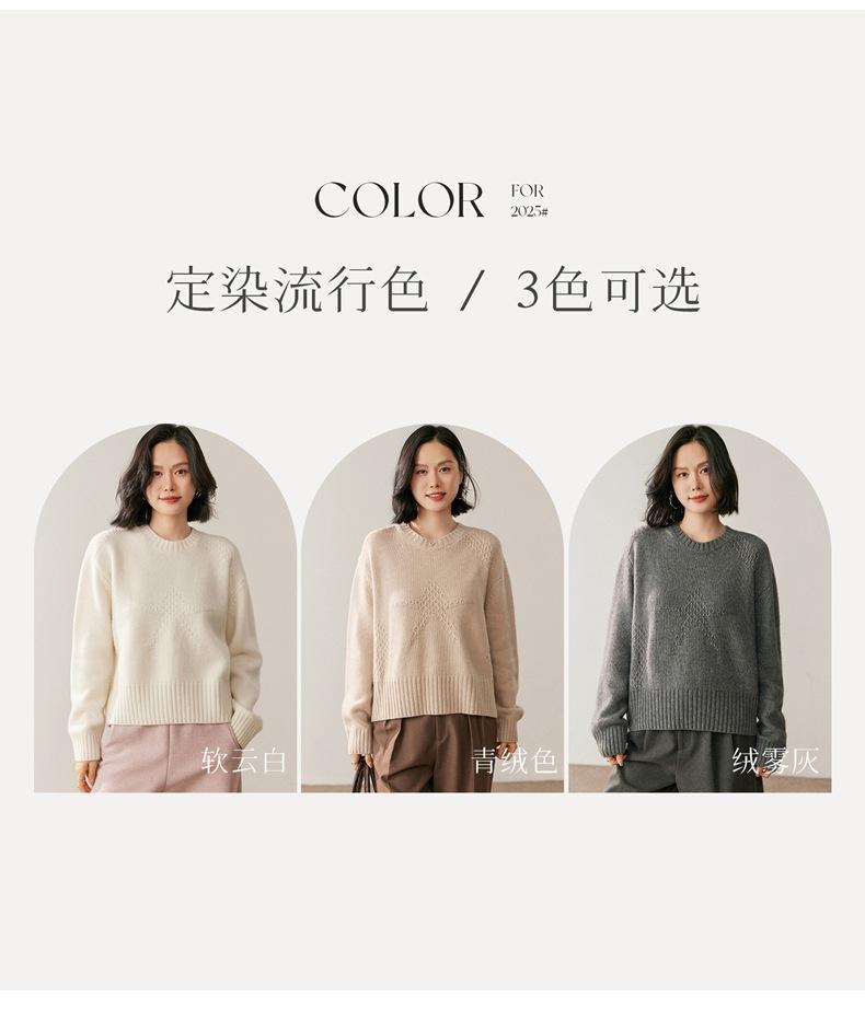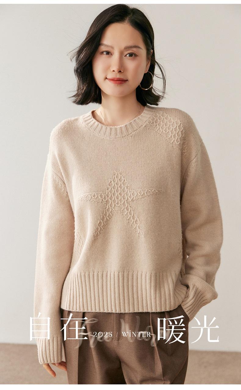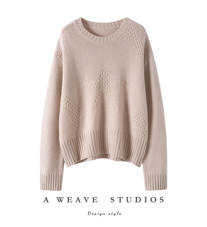 Suéter de Cachemira Mujer 25 Otoño/Invierno Nuevo Cuello Redondo Jacquard de Estrellas Camisa Base Estilo Perezoso Suelto Adelgazante Suéter Jersey
