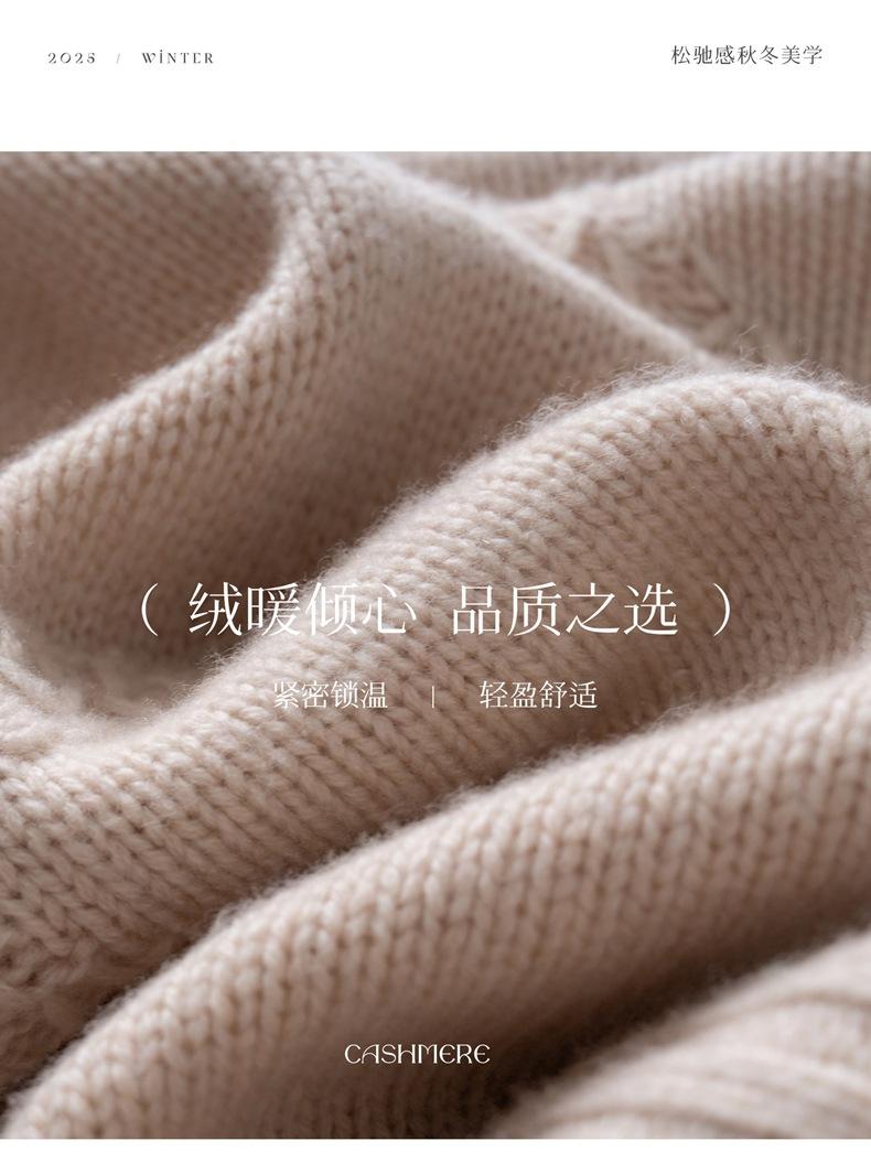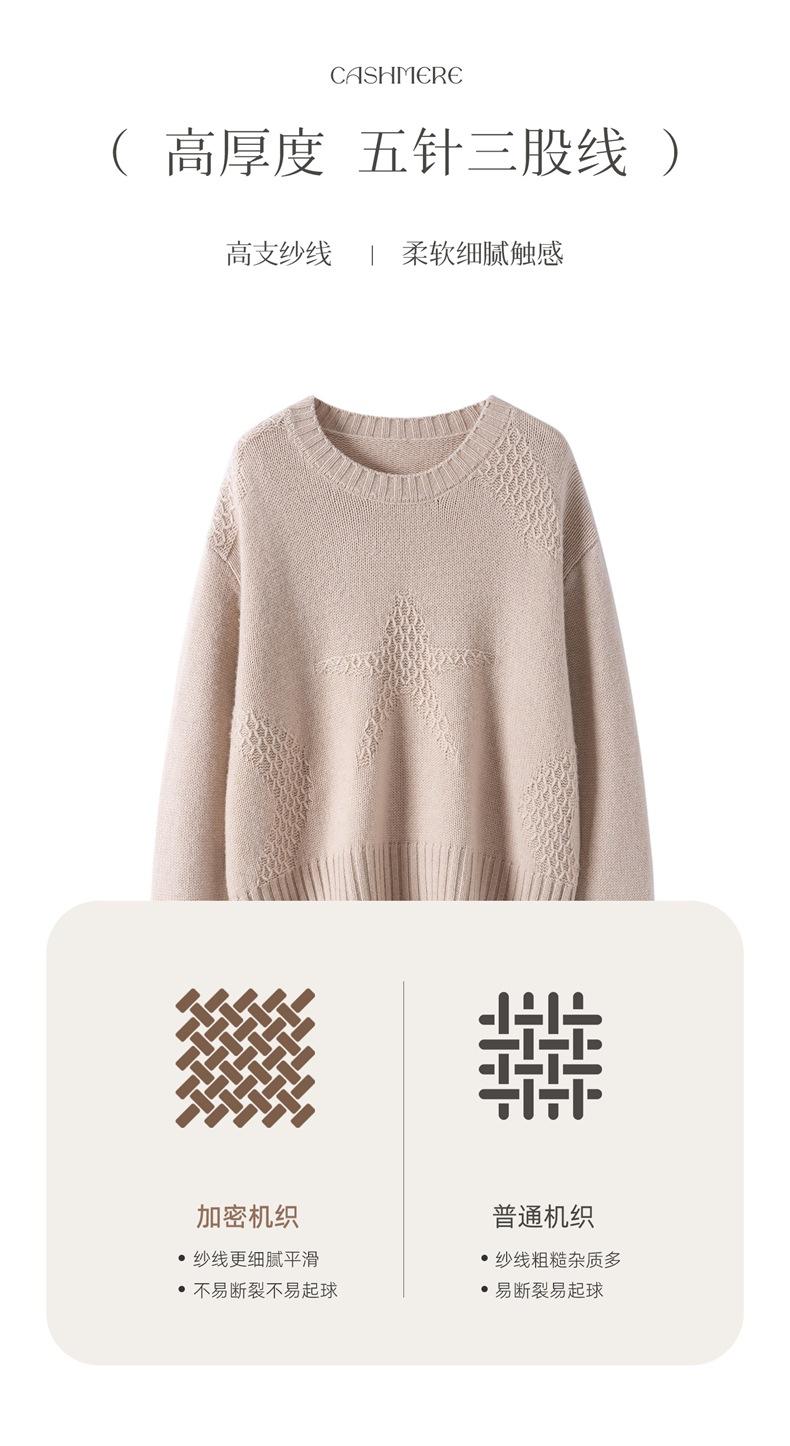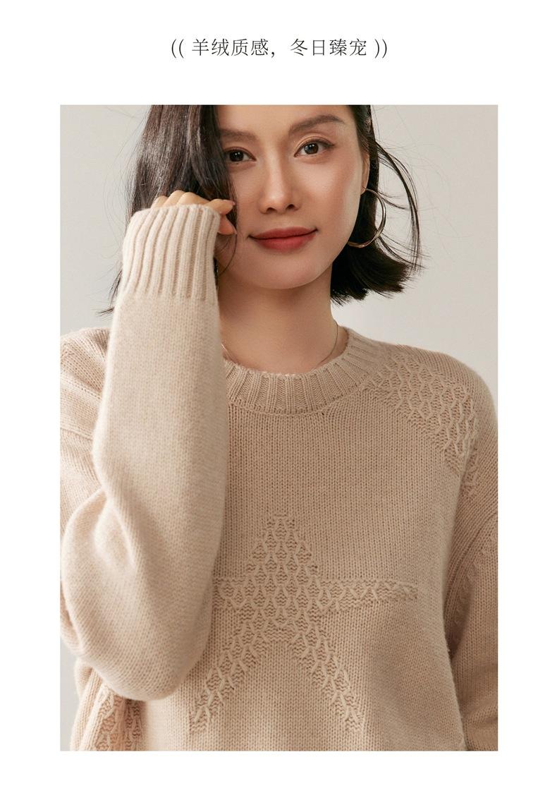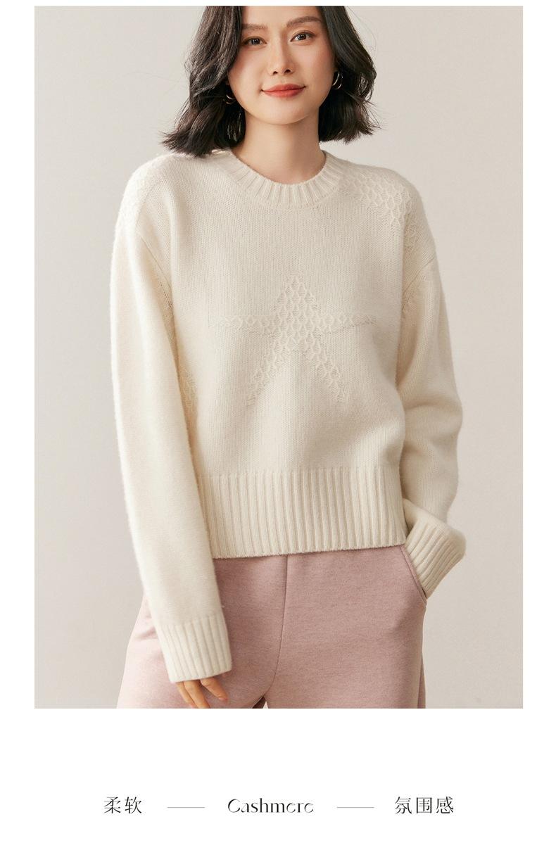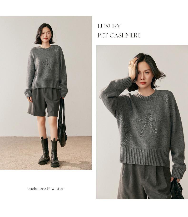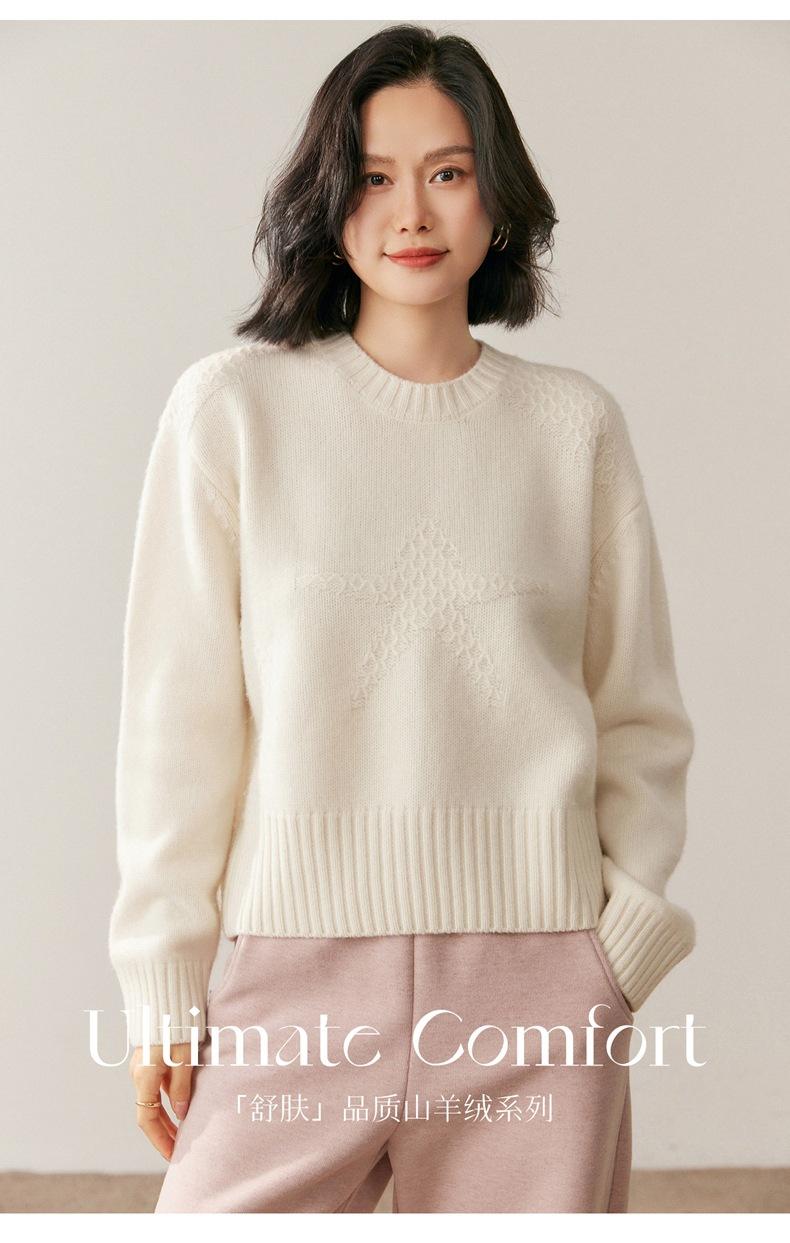 Suéter de Cachemira Mujer 25 Otoño/Invierno Nuevo Cuello Redondo Jacquard de Estrellas Camisa Base Estilo Perezoso Suelto Adelgazante Suéter Jersey