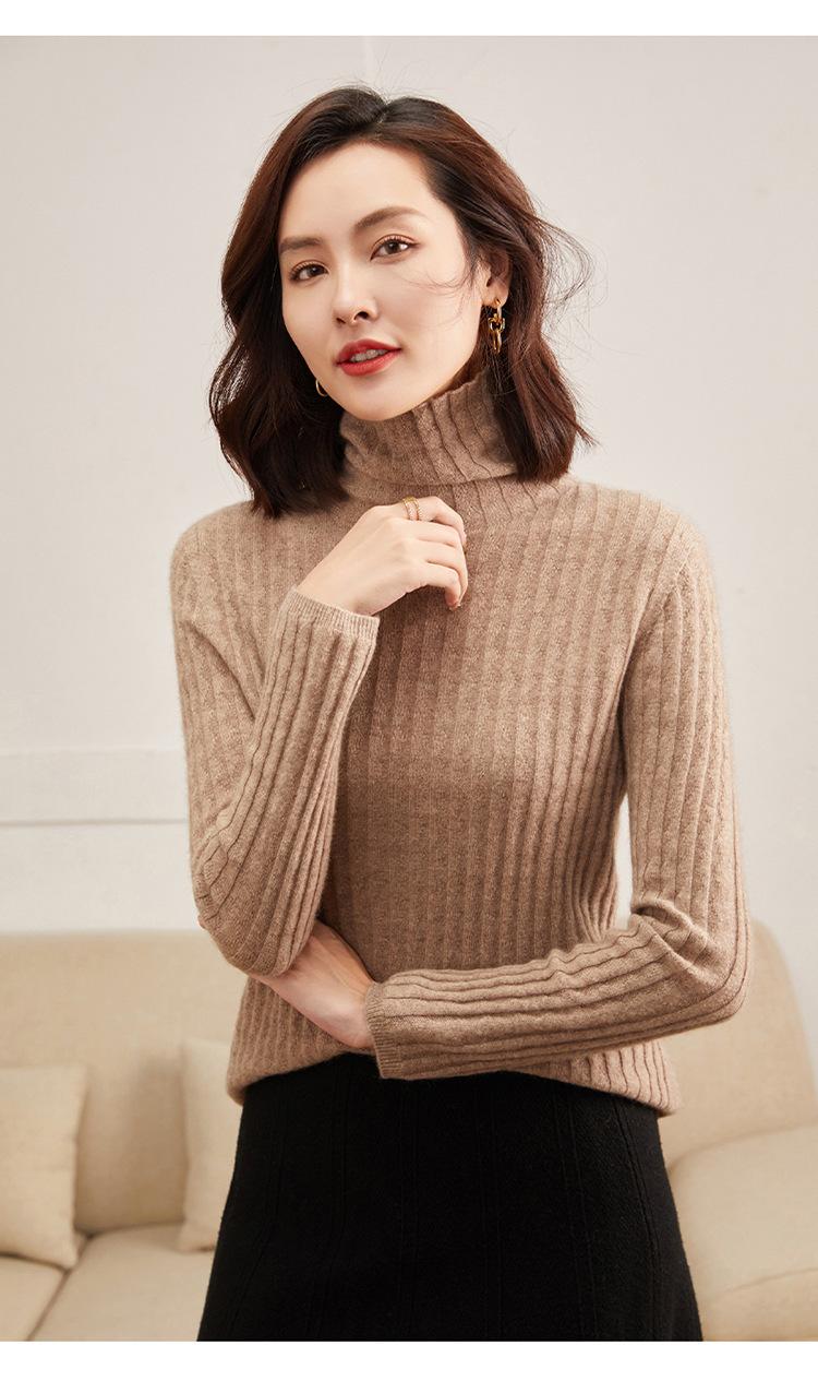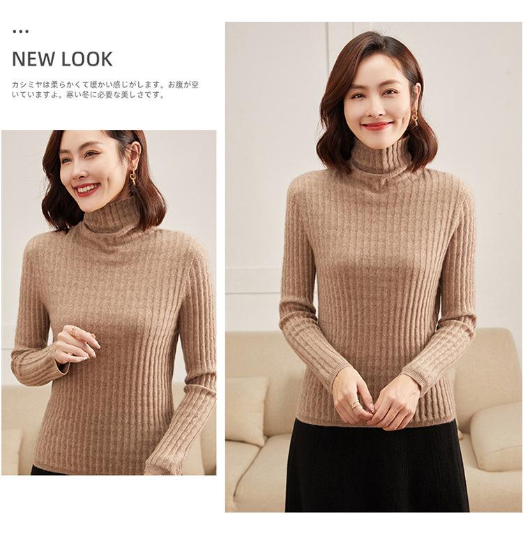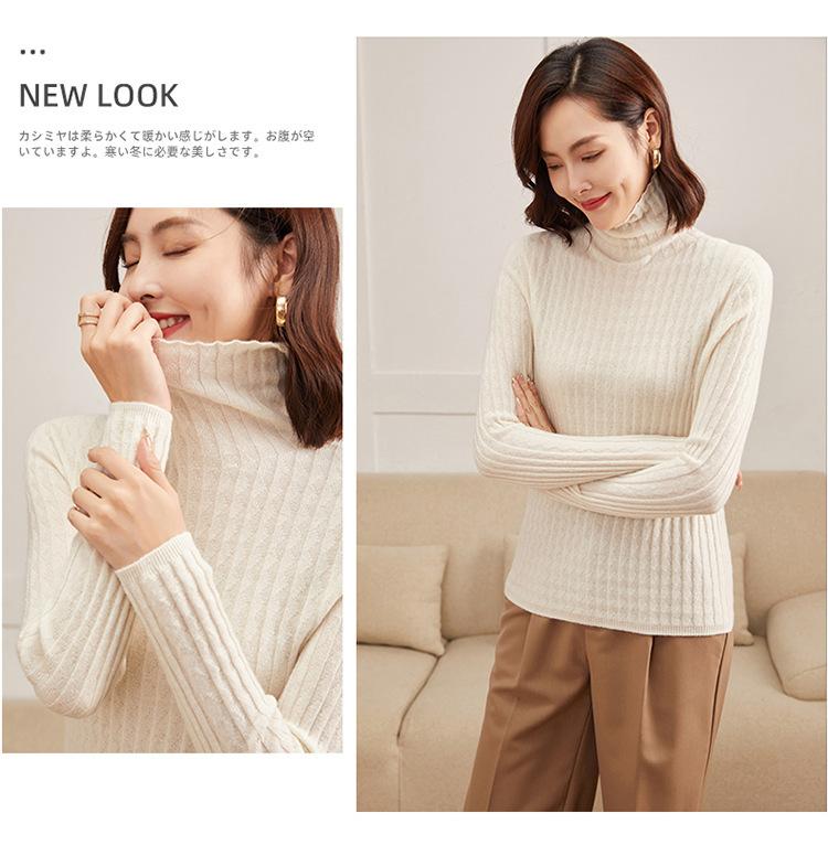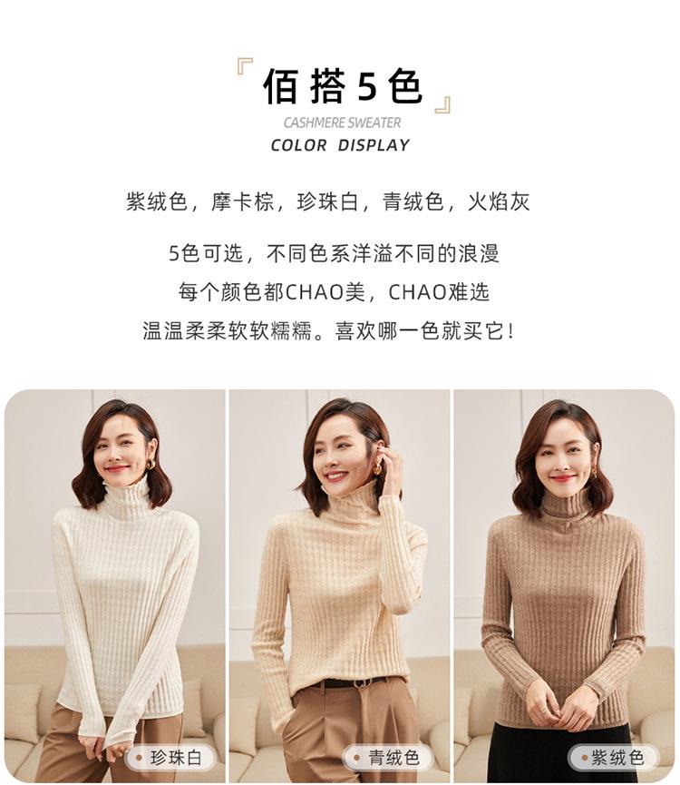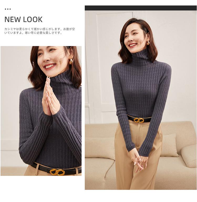 Suéter de Cachemira para Mujer Nuevo Otoño/Invierno 2024 Suéter de Cuello Alto para Mujer Color Sólido de Alta Gama Cálido Agradable a la Piel Muestra Figura y Temperamento