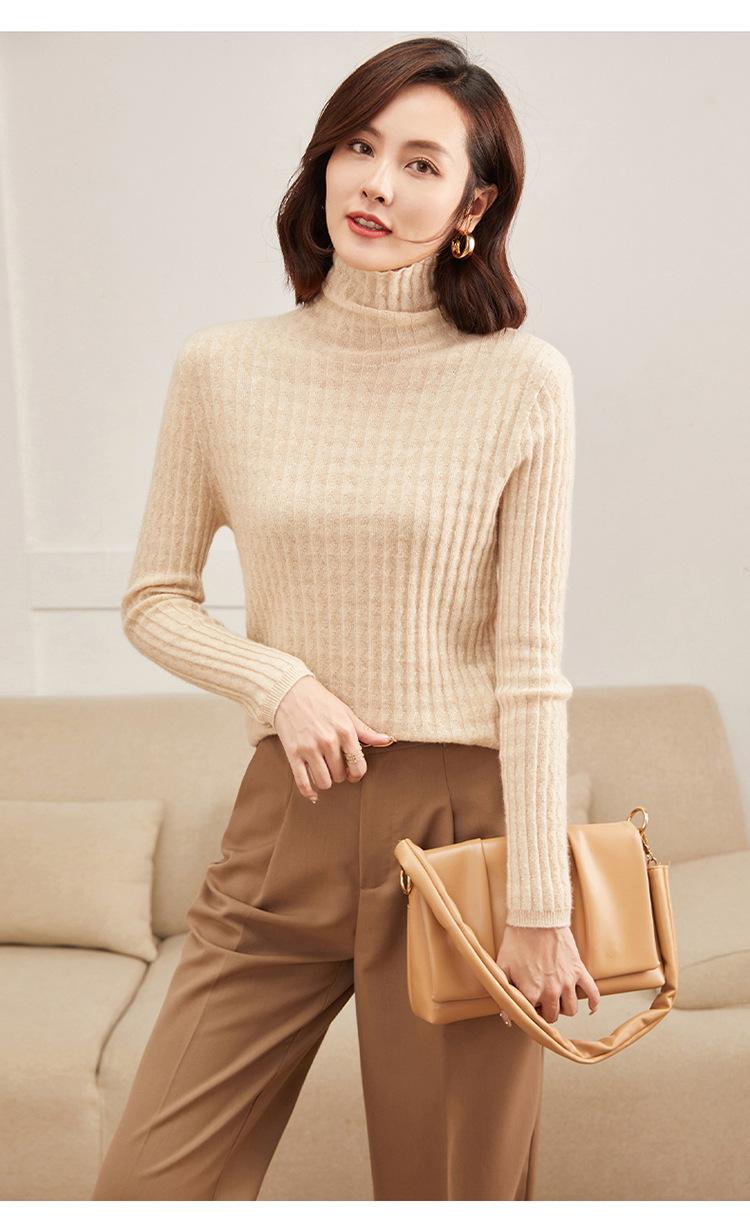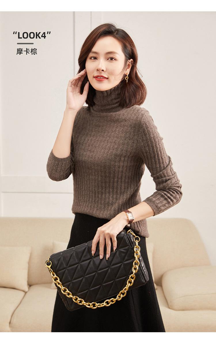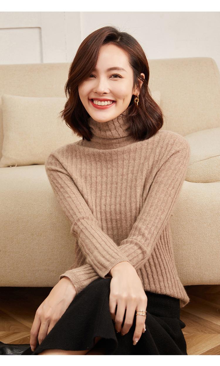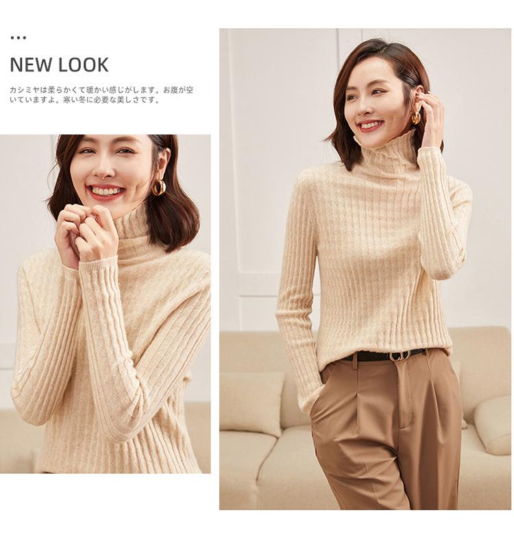 Suéter de Cachemira para Mujer Nuevo Otoño/Invierno 2024 Suéter de Cuello Alto para Mujer Color Sólido de Alta Gama Cálido Agradable a la Piel Muestra Figura y Temperamento