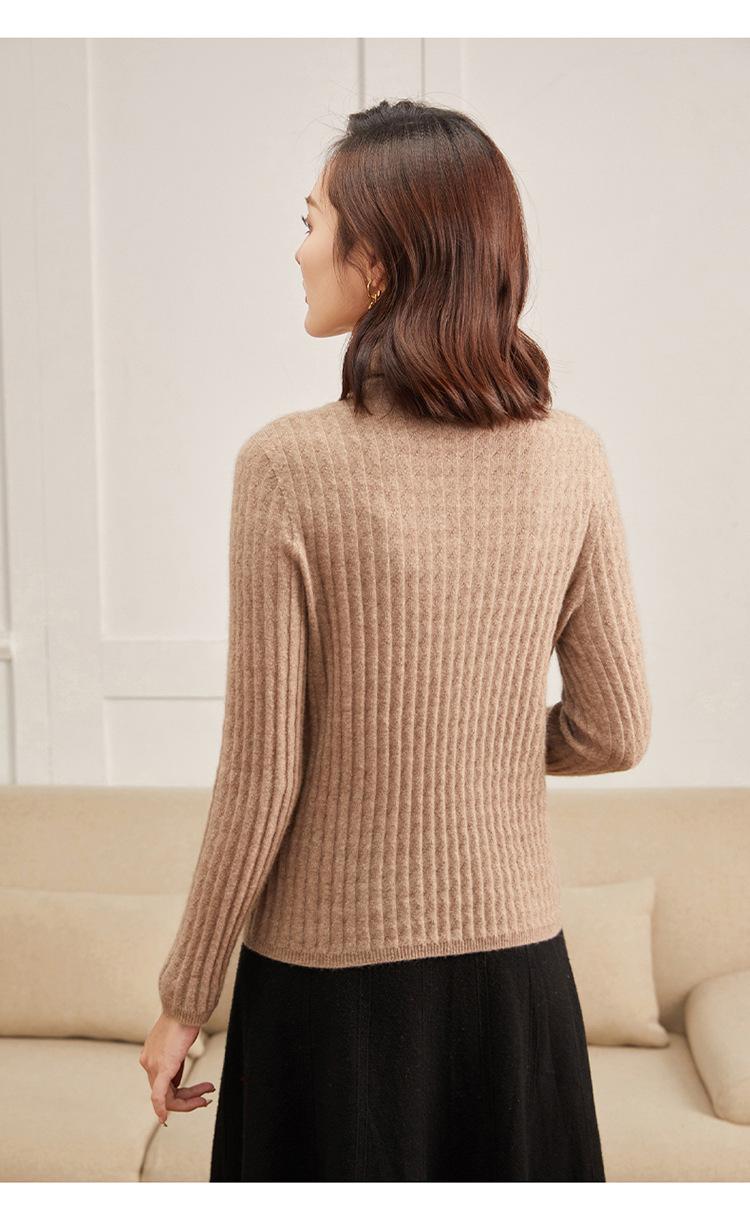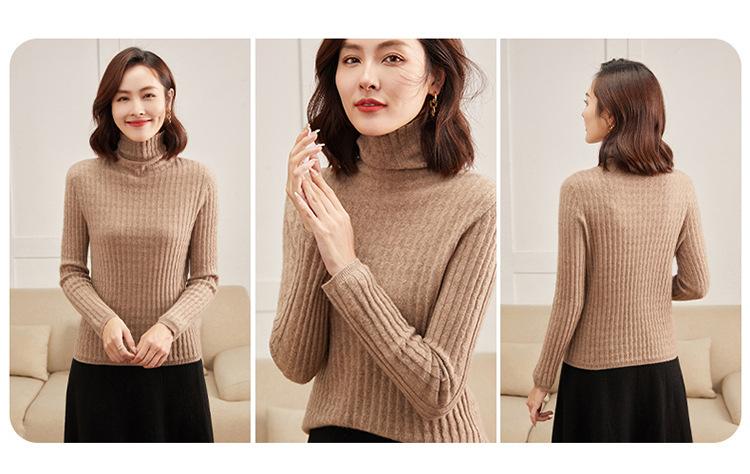 Suéter de Cachemira para Mujer de Cuello Alto de Una Pieza Sin Costuras Otoño e Invierno Nuevo Color Sólido Jacquard Cómodo Suave Camisa Base