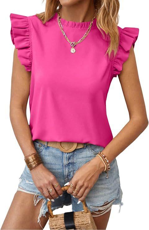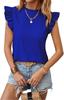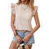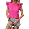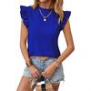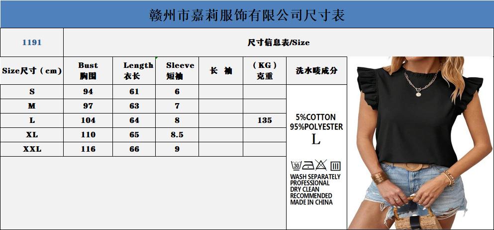 2025 Amazon Transfronterizo Europeo y Americano Primavera y Verano Elegante Manga Hoja de Loto Cuello Redondo Jersey Color Sólido Top